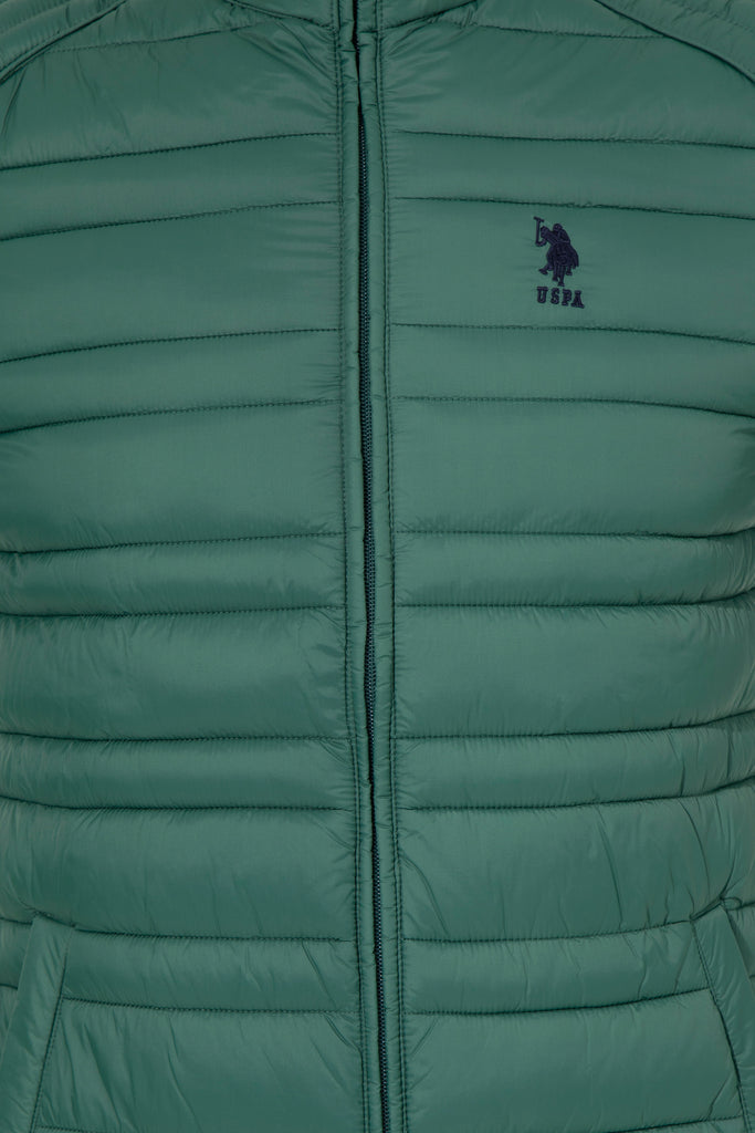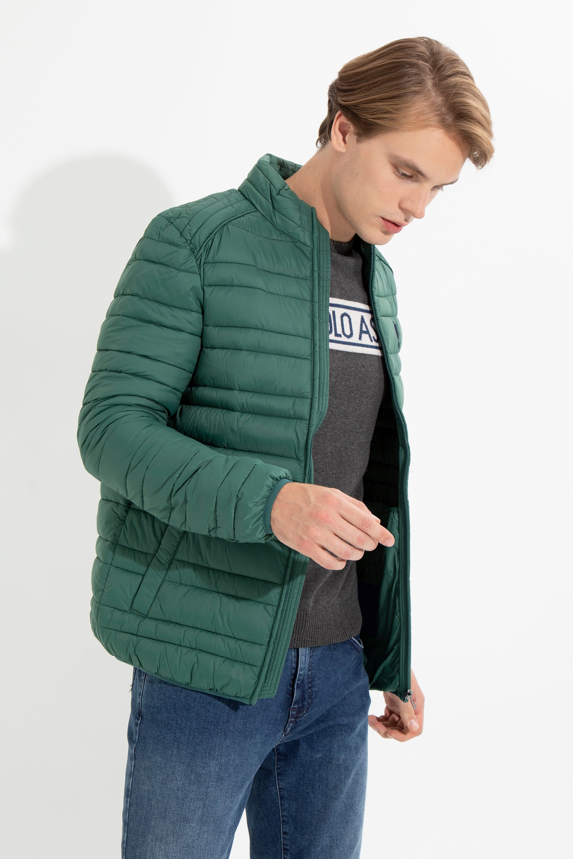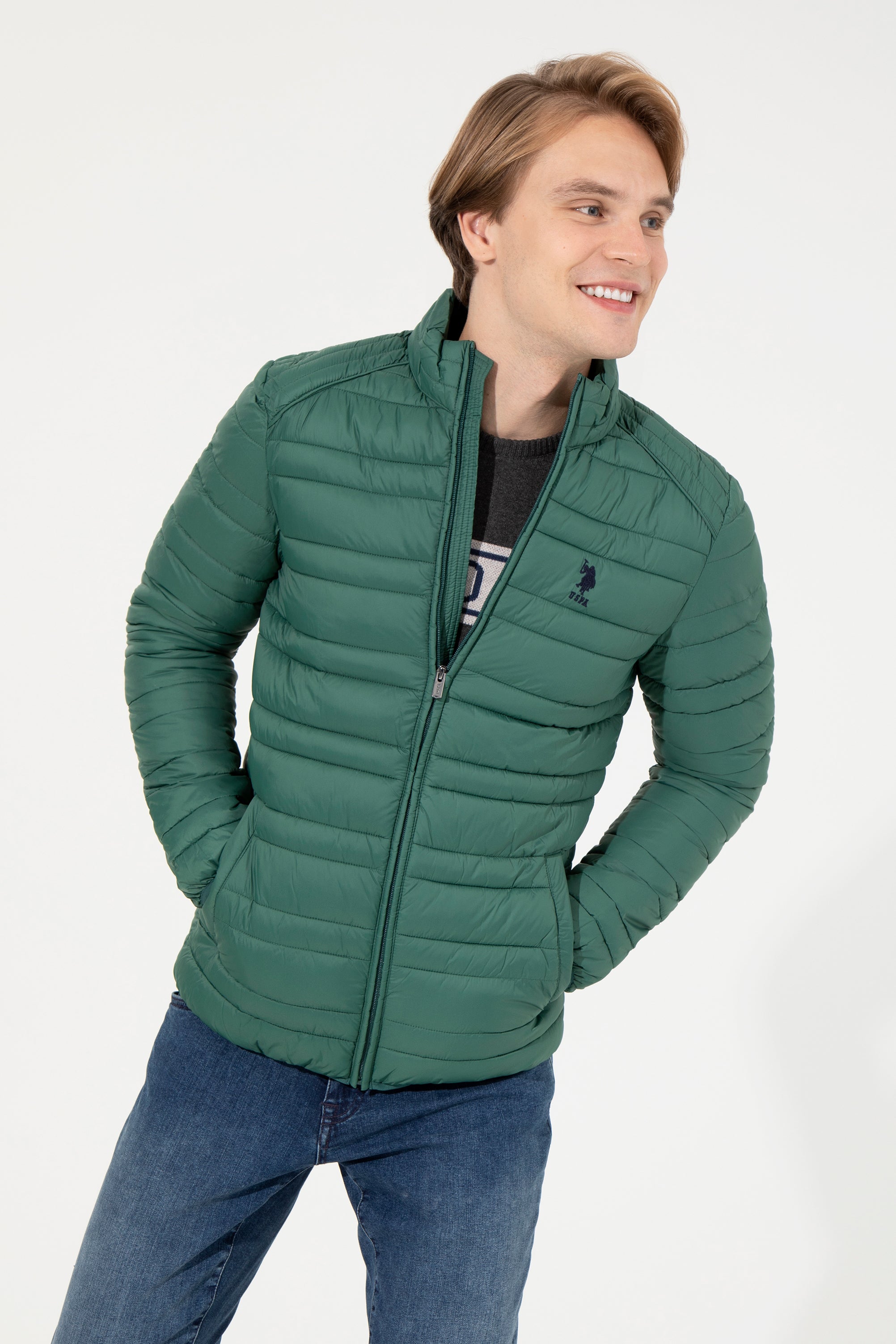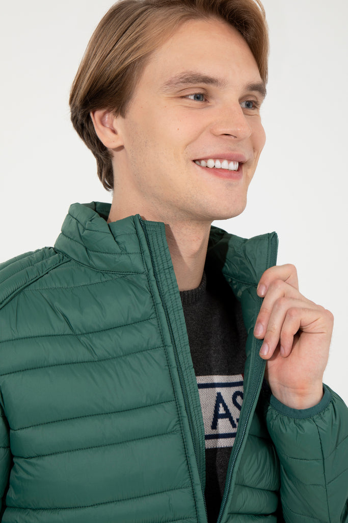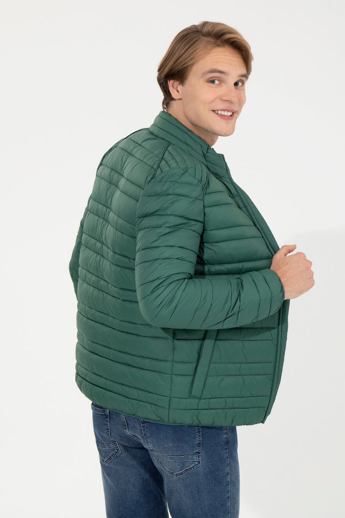 Moderna zimska jakna u elegantnoj tamnozelenoj boji nudi savršenu kombinaciju topline i stila za hladne dane. Karakteriše je lagana, ali topla punjena struktura koja osigurava udobnost i slobodu kretanja. Zatvaranje na rajsferšlus s visokim ovratnikom dodatno štiti od vjetra, dok su praktične bočne džepove idealni za čuvanje sitnica. Ova jakna se lako može kombinovati sa raznim odjevnim predmetima, kao što su majice, džemperi ili traperice, čineći je savršenim izborom za svakodnevne izlaske ili aktivnosti na otvorenom.