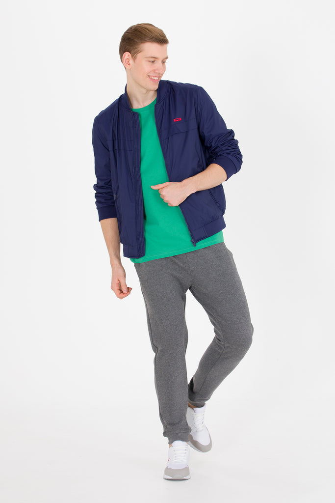 Moderna jakna u tamnoplavoj boji idealna je za svakodnevne kombinacije i omogućava lako usklađivanje s raznim odjevnim komadima. Karakteriše je lagani materijal koji pruža udobnost i slobodu kretanja, dok manžetne na rukavima i donjem dijelu dodatno osiguravaju dobar fit. Na prednjem dijelu jakne nalaze se praktične džepove koji su savršeni za pohranu sitnica. Ova jakna je izvrstan izbor za ležerne izlaske ili opuštene šetnje, a može se nositi uz majice, dukserice ili čak košulje za dodatni stil.