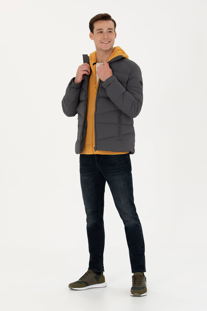 Moderna zimska jakna u tamno sivoj boji pruža savršenu kombinaciju topline i komfora tokom hladnijih dana. Karakteriše je topli materijal koji pruža odlično izolovanje, dok je dizajn lagan i praktičan za nošenje. Jakna ima kapuljaču koja dodatno štiti od vjetra i kiše, a prednji dio je opremljen diskretnim patentnim zatvaračem i nekoliko funkcionalnih džepova. Ova jakna je savršen izbor za svakodnevne aktivnosti, bilo da se radi o šetnji gradom ili uživanju u prirodi, i lako se može kombinovati sa raznim stilovima odjeće poput majica, dukserica ili čvrstih hlača.