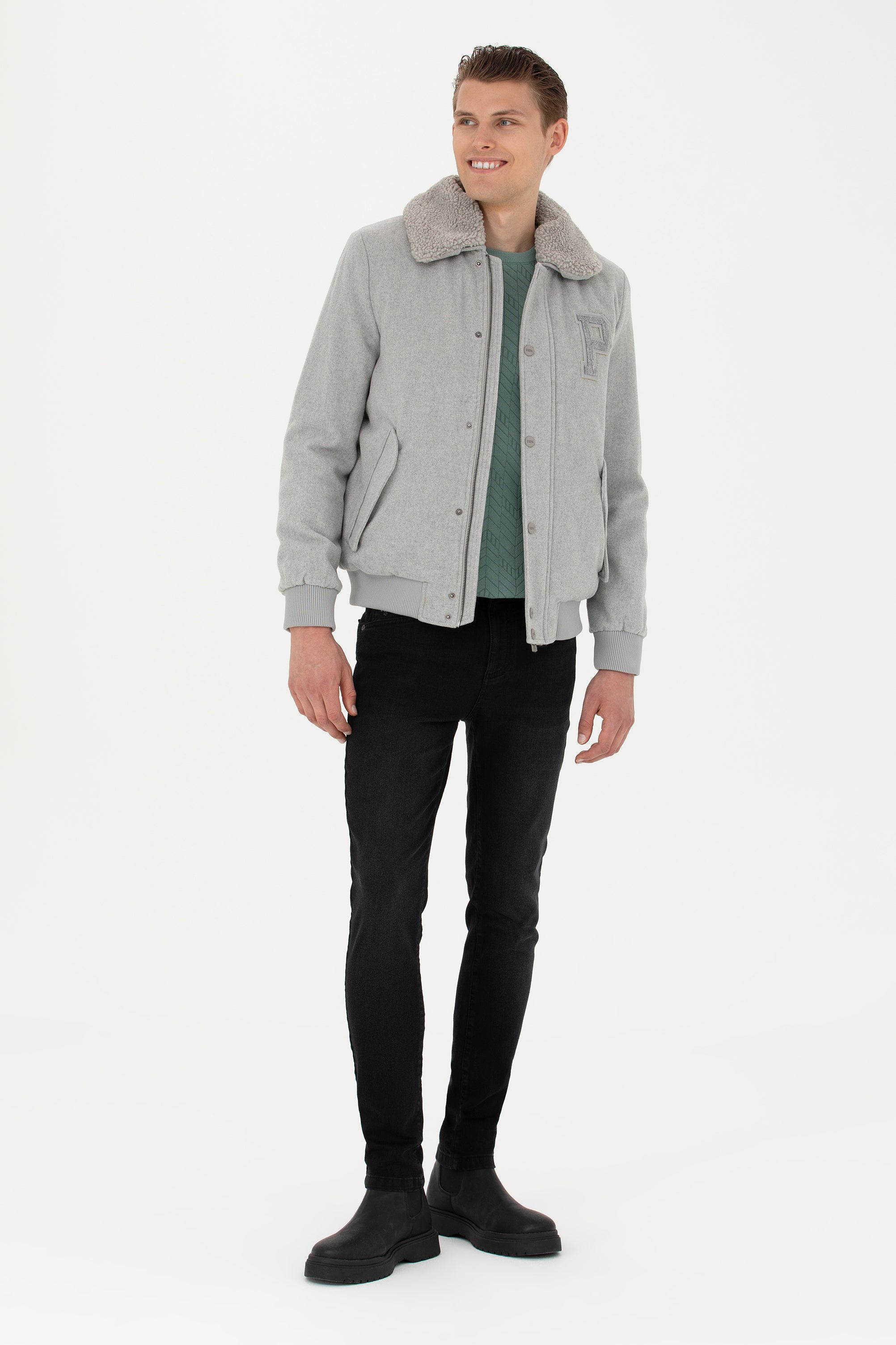 Elegantna jakna u svijetlo sivoj boji pruža savršenu kombinaciju topline i stila tokom hladnih dana. Karakteriše je mekani krzneni ovratnik koji donosi dodatni osjećaj udobnosti i sofisticiranosti. Na prednjoj strani jakne nalaze se praktične kapsice koje dodaju funkcionalnost, dok diskretni logotip na prsima ističe modni identitet. Ova jakna je idealan izbor za razne prilike, bilo da se radi o svakodnevnim izlascima ili večernjim događanjima, a lako se može kombinovati sa majicama, trapericama ili even tučama, čineći je svestranom i modernom stavkom za svakog muškarca.