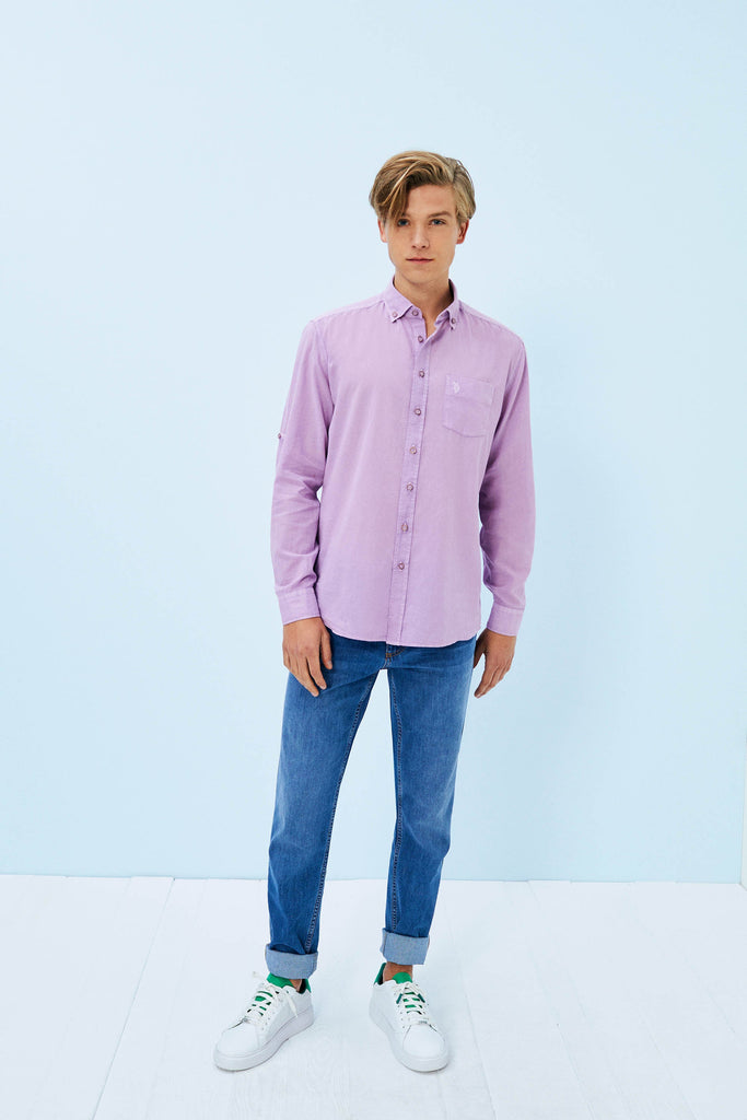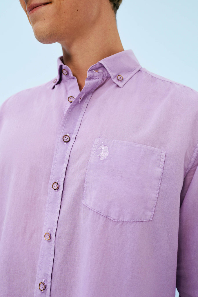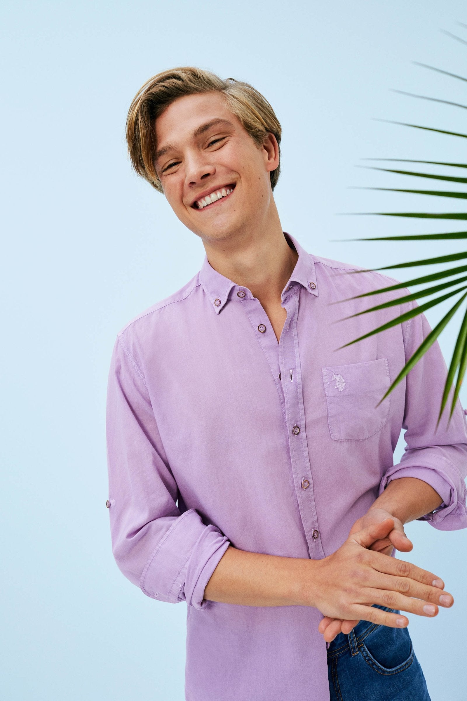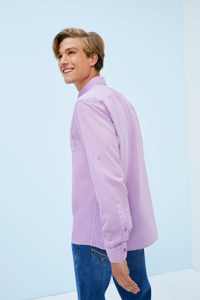 Elegantna košulja u nježnoj ljubičastoj boji donosi dašak svježine i stila u svaku kombinaciju. Karakteriše je lagani materijal koji osigurava udobnost tokom cijelog dana, dok klasični kroj pruža savršeno pristajanje. Na prednjem dijelu košulje nalazi se diskretna džepna aplikacija koja dodaje suptilnu dozu sofisticiranosti. Ova košulja je idealna za različite prilike, bilo da se radi o poslovnim sastancima ili ležernim izlascima s prijateljima, a lako se može kombinovati sa trapericama, hlačama ili šortsevima.