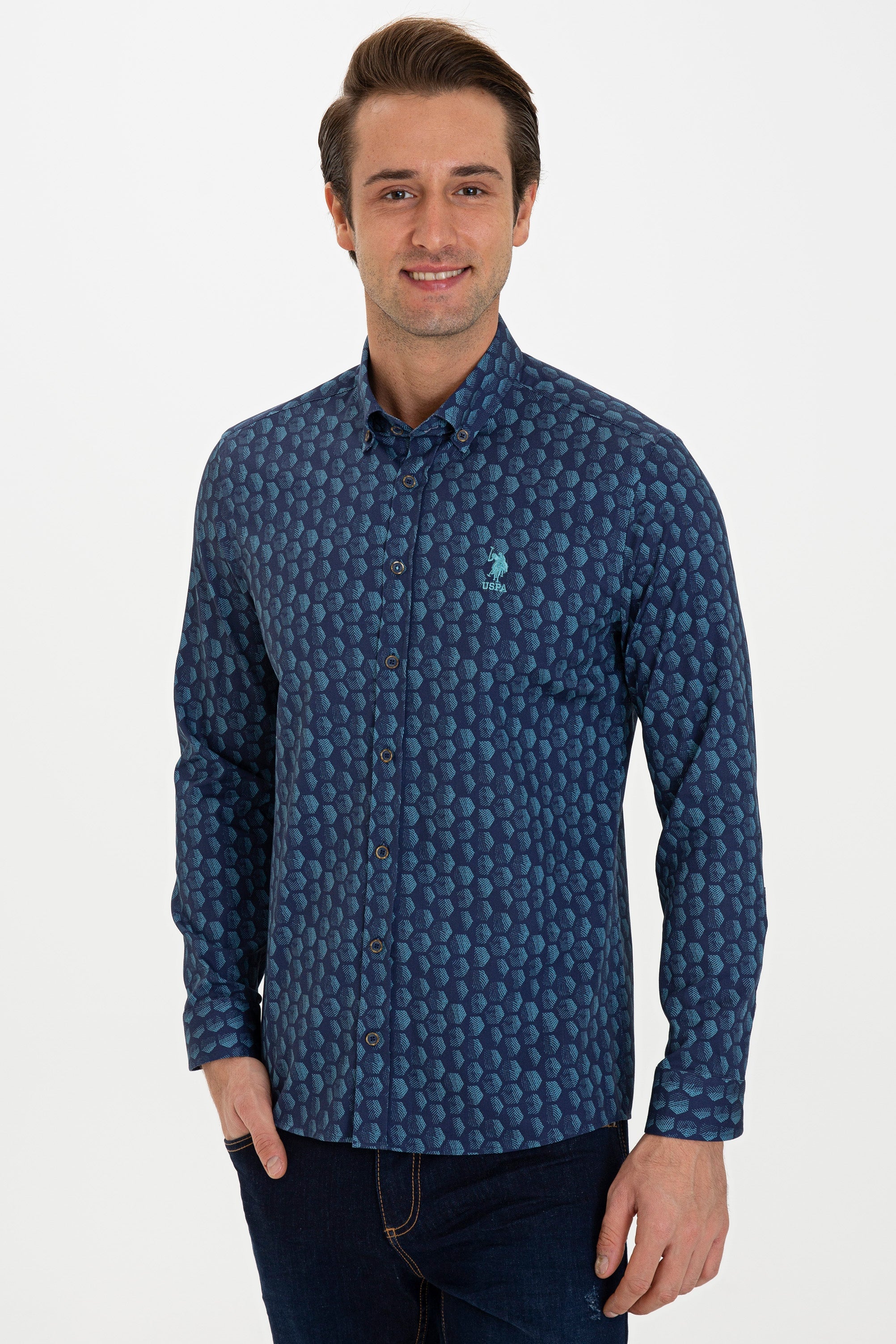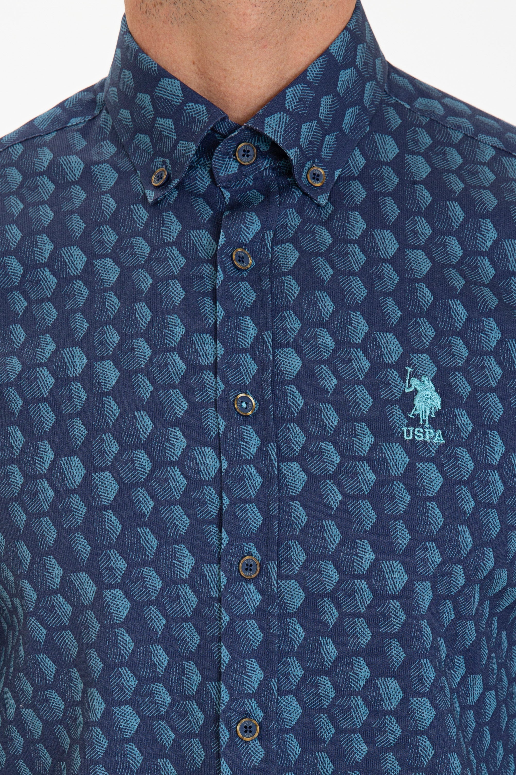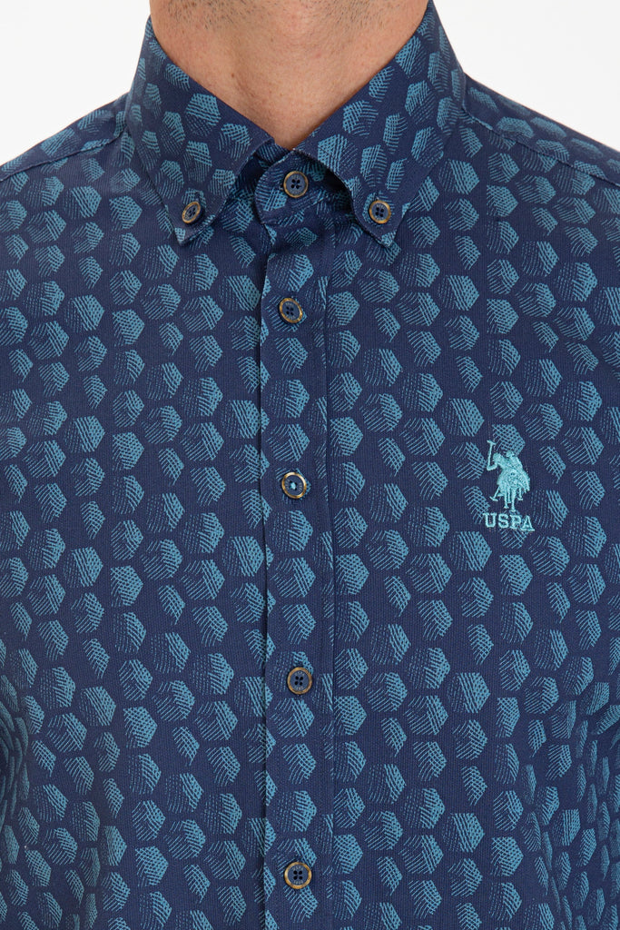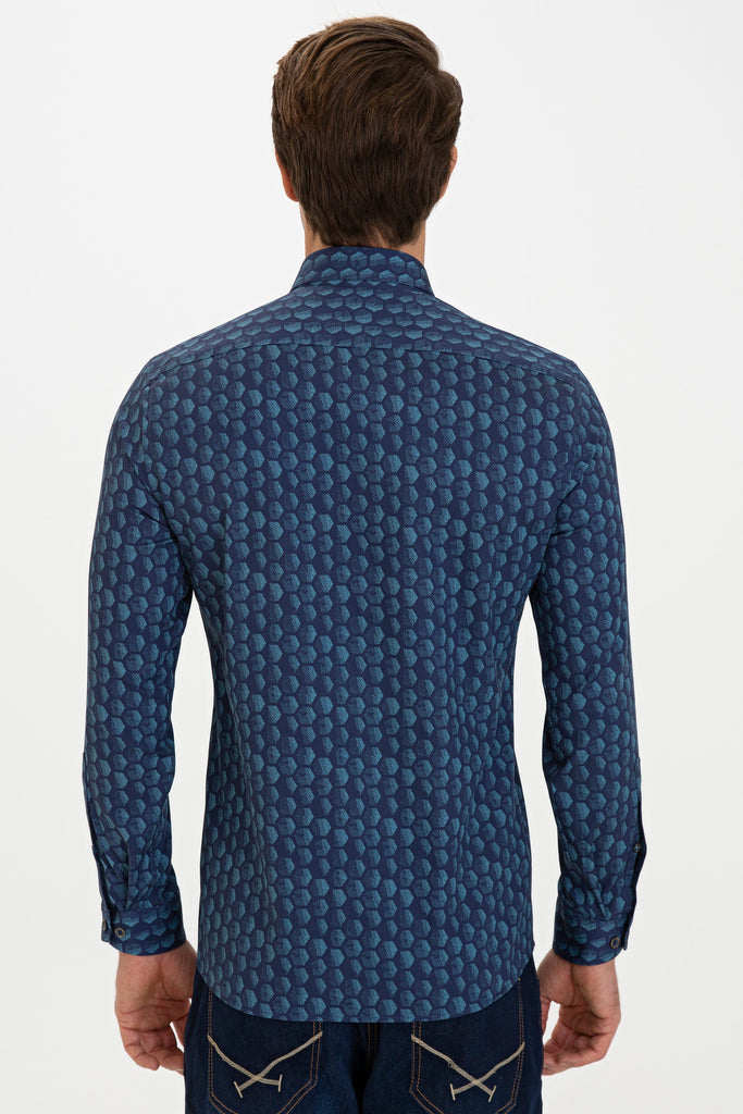 Ova moderna košulja u tamnoplavoj boji sa unikatnim uzorkom donosi savršen spoj stila i udobnosti. Karakterišu je lagani materijal koji omogućava izvanrednu prozračnost i lakoću nošenja. Klasičan kroj sa dugim rukavima i dugmadima, pruža sofisticiran izgled koji je pogodan za razne prilike. Na prednjem dijelu košulje nalazi se suptilan logo koji dodaje poseban pečat. Ova košulja se lako kombinuje sa trapericama ili chinos hlačama, čineći je idealnim izborom za poslovne sastanke ili ležerne izlaske.