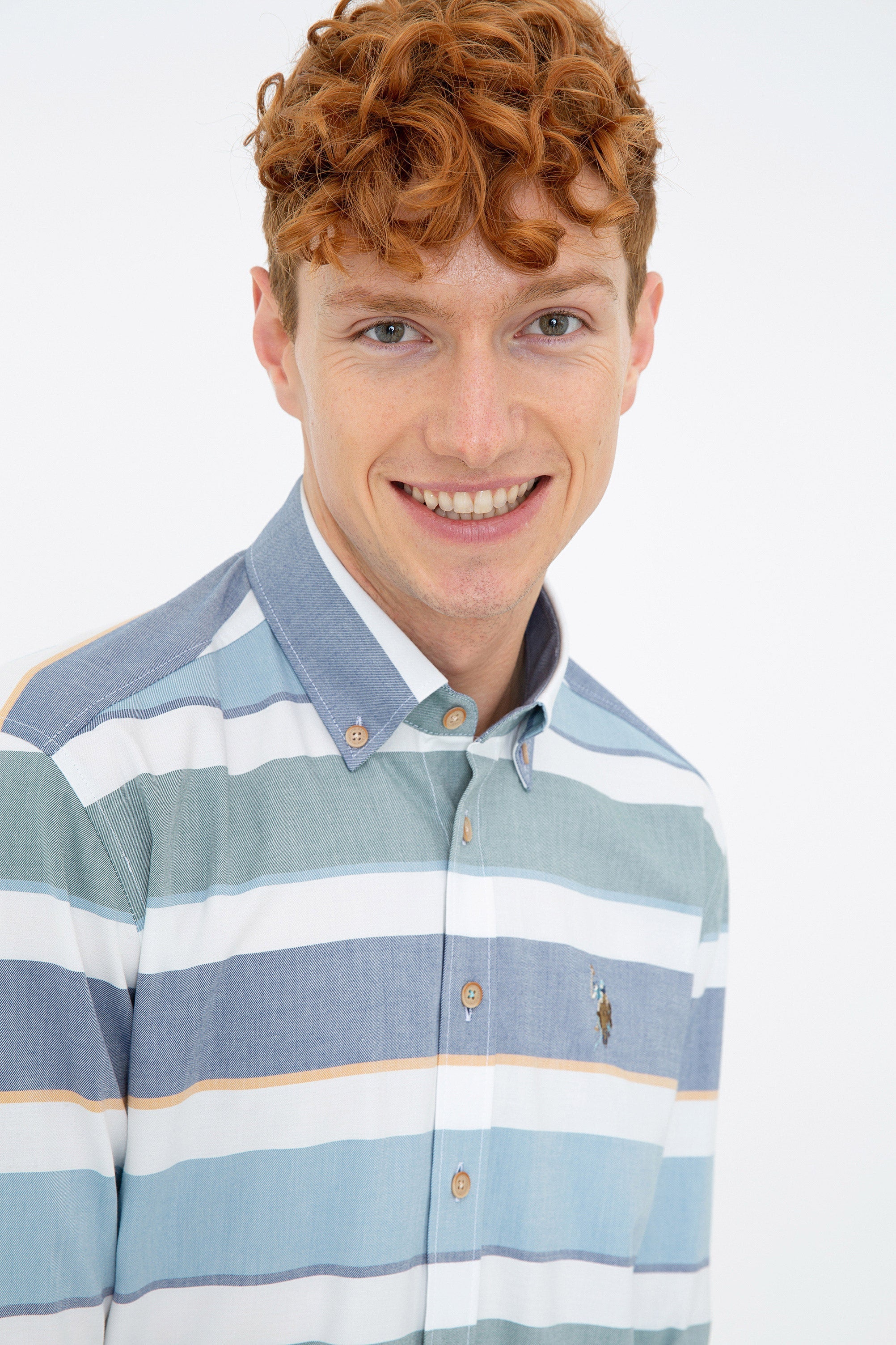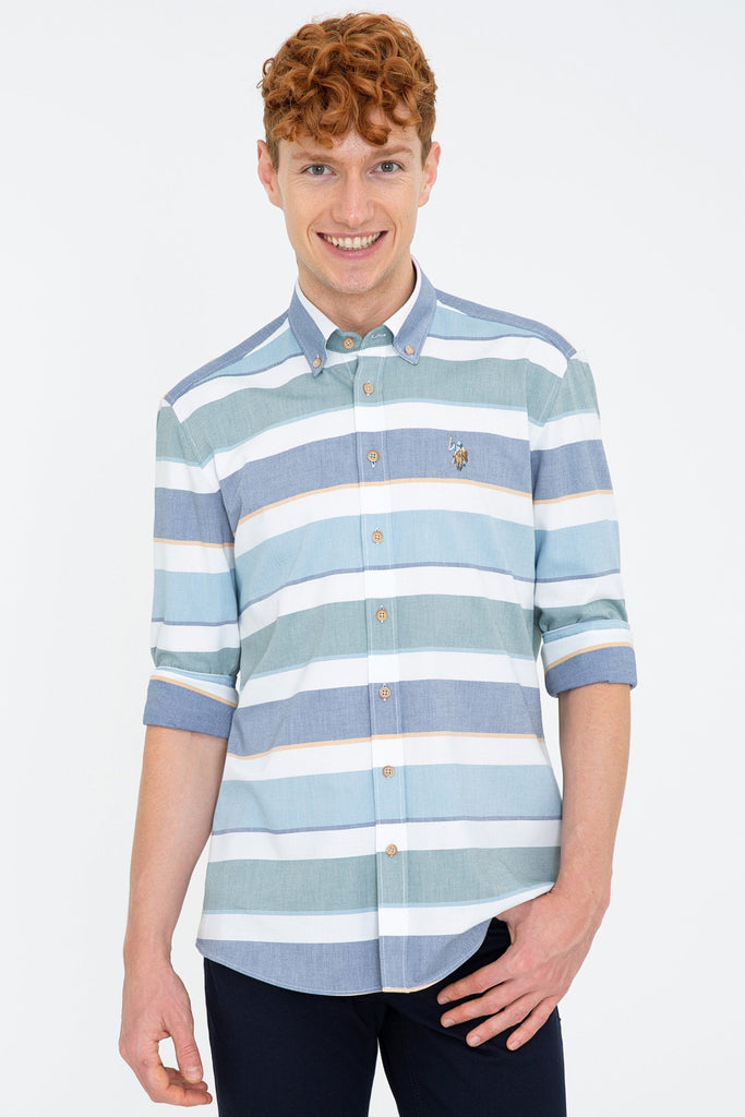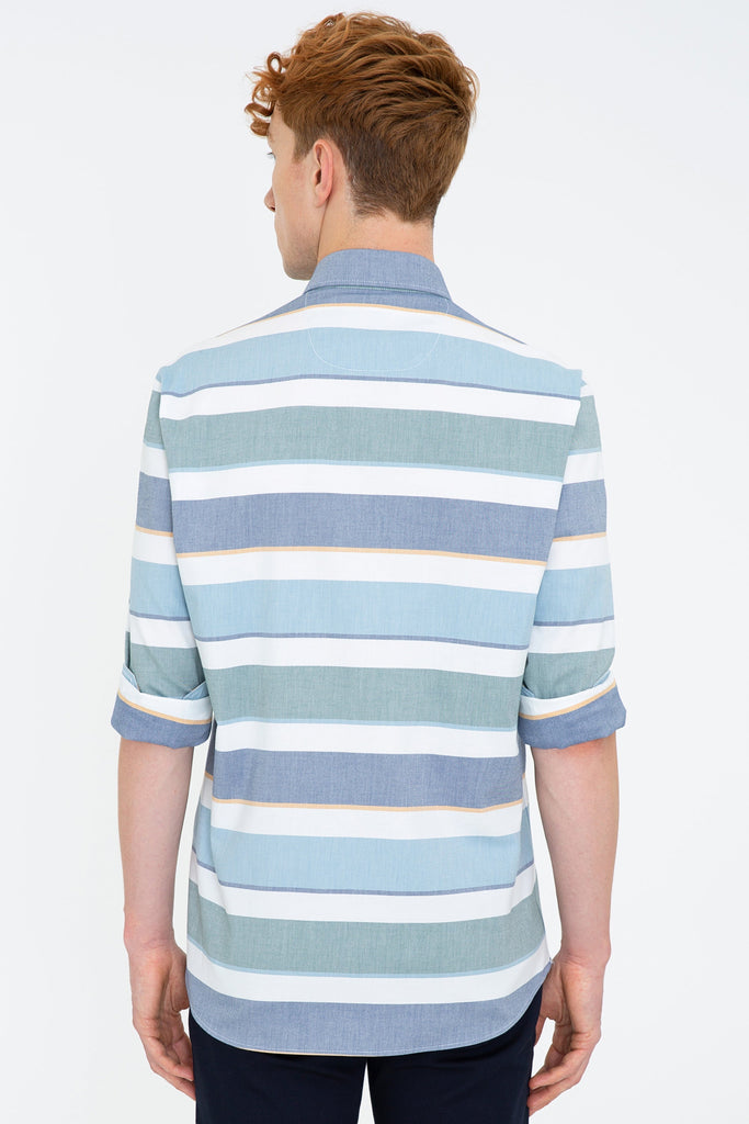 Ova košulja u svijetlim prugama donosi dašak svježine i stila u svaku odjevnu kombinaciju. Izrađena je od laganog materijala koji osigurava udobnost tokom cijelog dana. Klasični kroj omogućava savršeno pristajanje, dok dugmad i okrenuti ovratnik dodaju sofisticiranost. Na prednjem dijelu košulje nalazi se diskretan logotip, što pruža dodatni vizualni interes. Ova košulja je idealan izbor za ležerne izlaze, poslovne prilike ili svakodnevne aktivnosti, i može se lako kombinovati s trapericama, chinos hlačama ili šortsevima, čineći je svestranom i modernom.