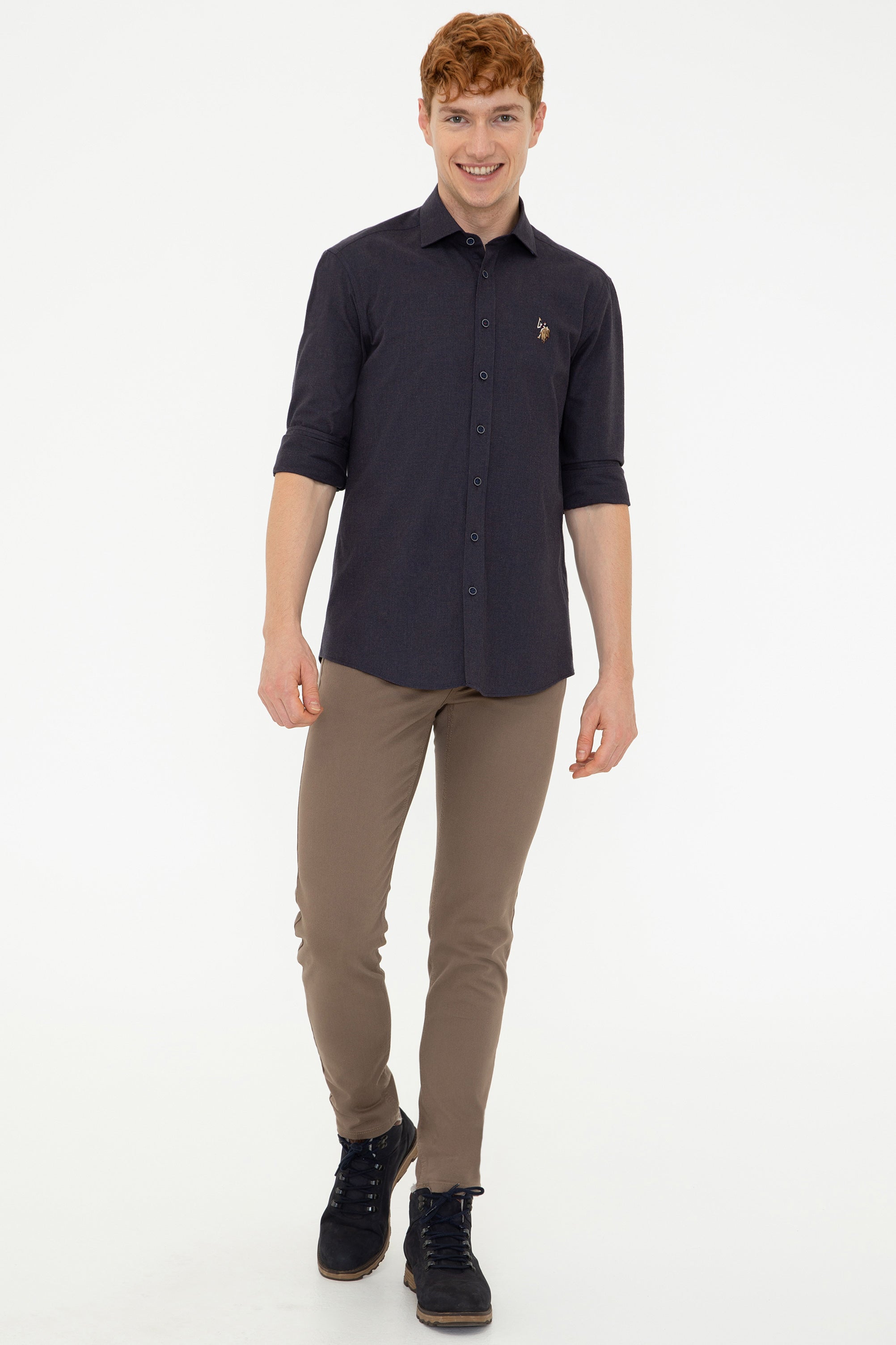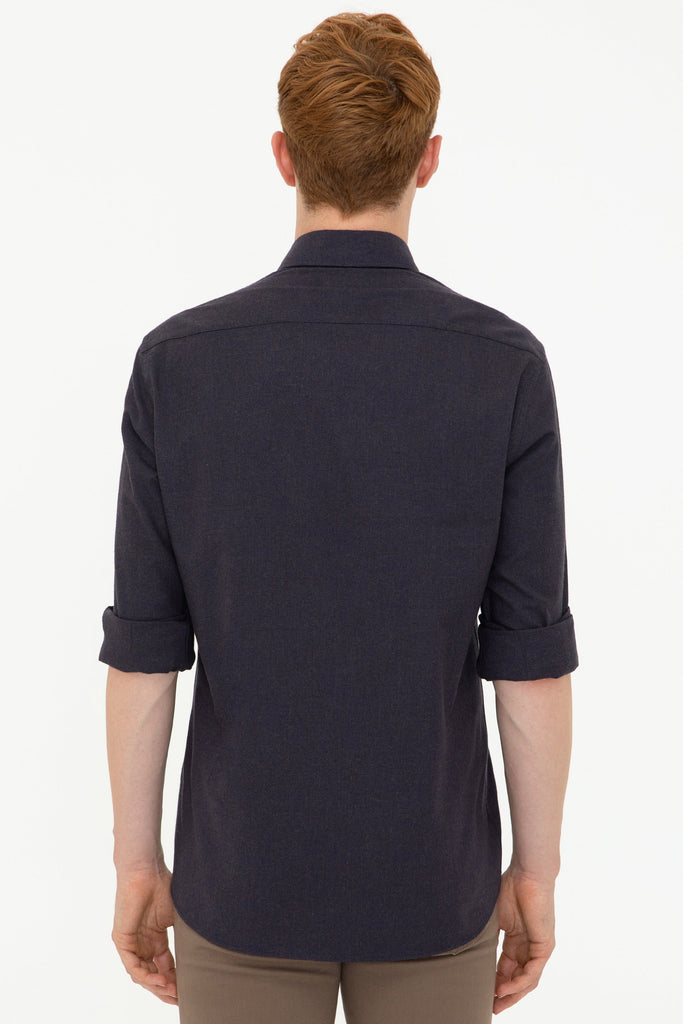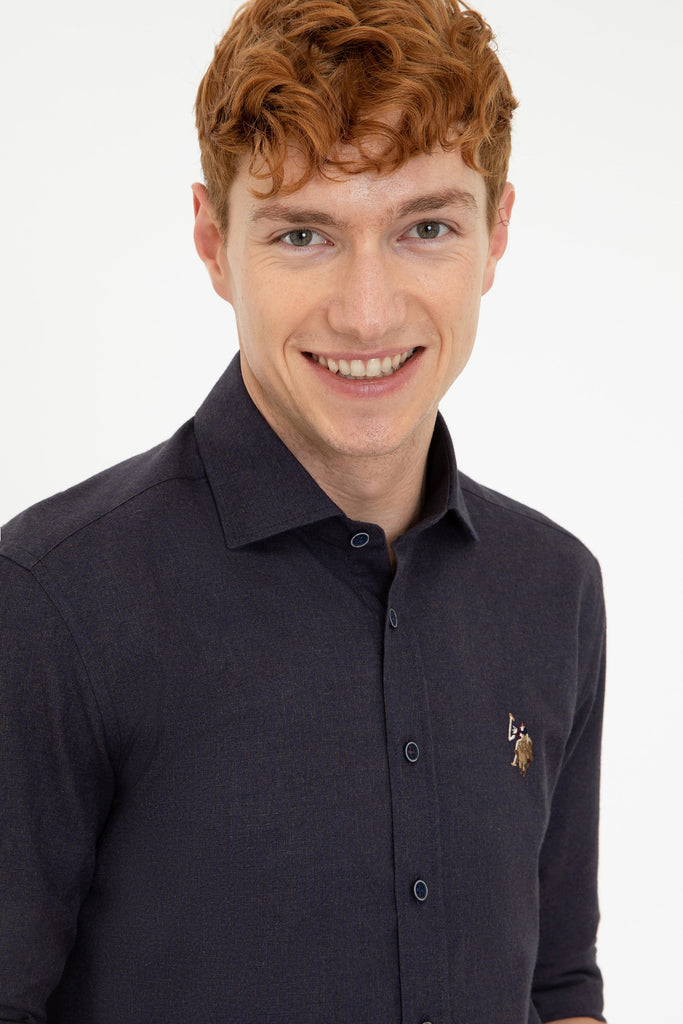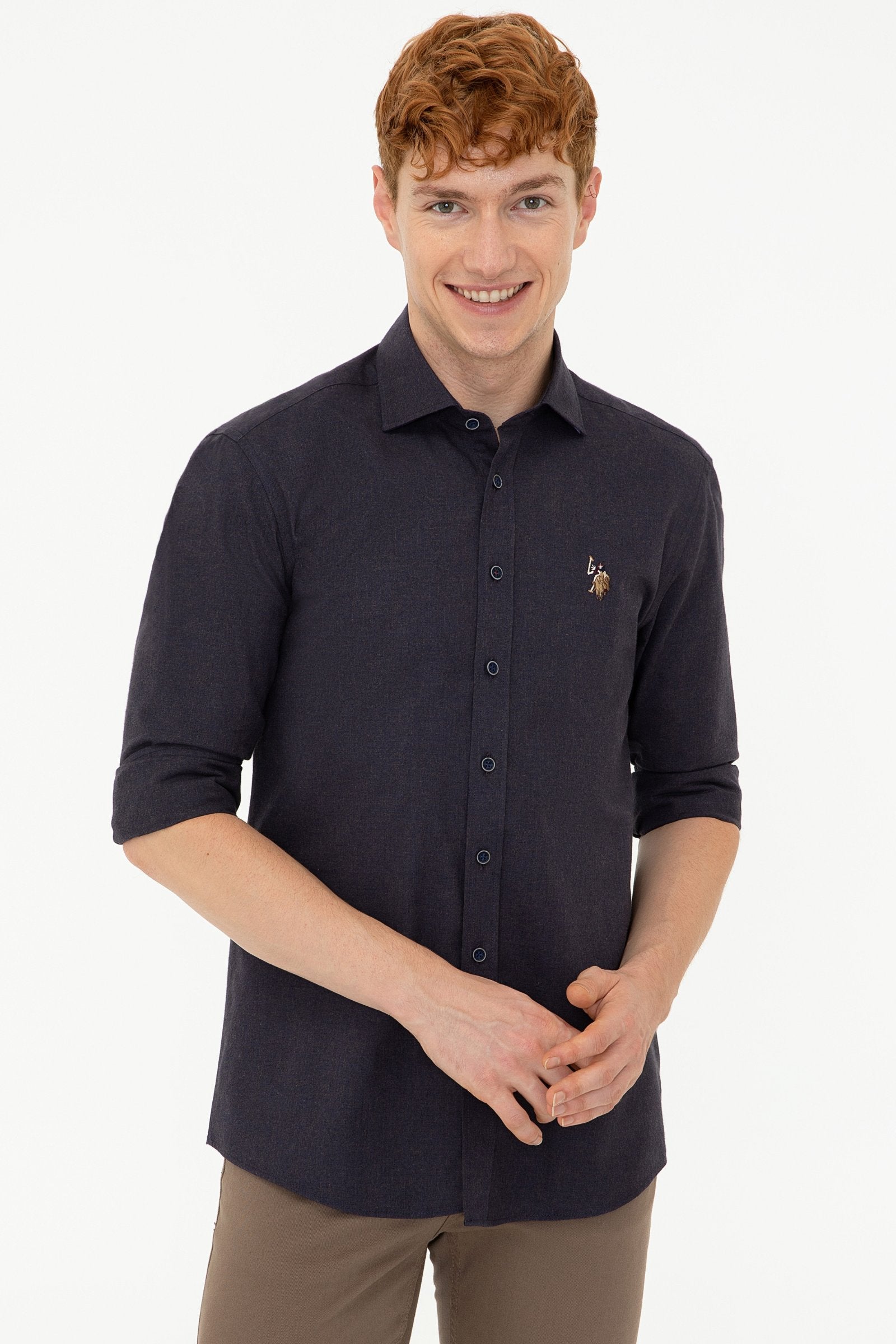 Ova košulja u tamnoplavoj boji nudi spoj elegancije i udobnosti, idealna za razne prilike. Karakteriše je kvalitetan materijal koji osigurava prijatno nošenje tokom cijelog dana. Klasični kroj sa dugmadi na prednjoj strani pruža savršen izgled bilo da je kombinujete sa poslovnim ili ležernim odjevnim predmetima. Diskretni logo na prsima dodaje dozu sofisticiranosti, čineći je prikladnom za svakodnevne izlaske ili posebne događaje. Uz ovu košulju lako možete kreirati savršenu kombinaciju sa pantalonama, denimom ili čak šortsevima za toplije dane.