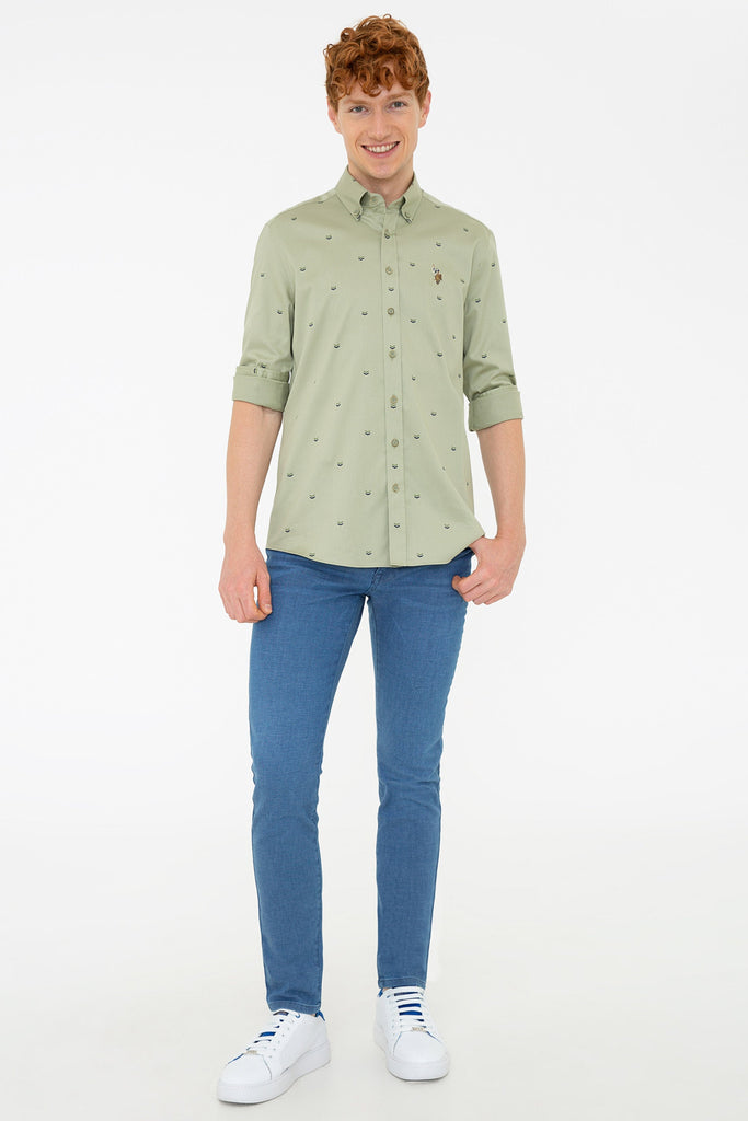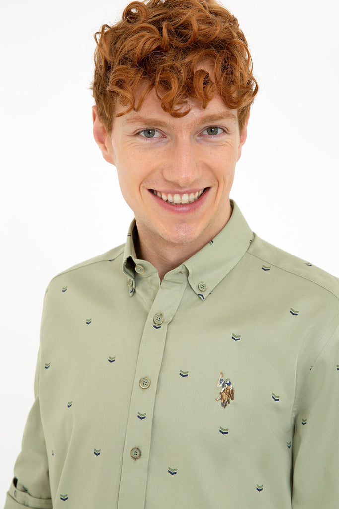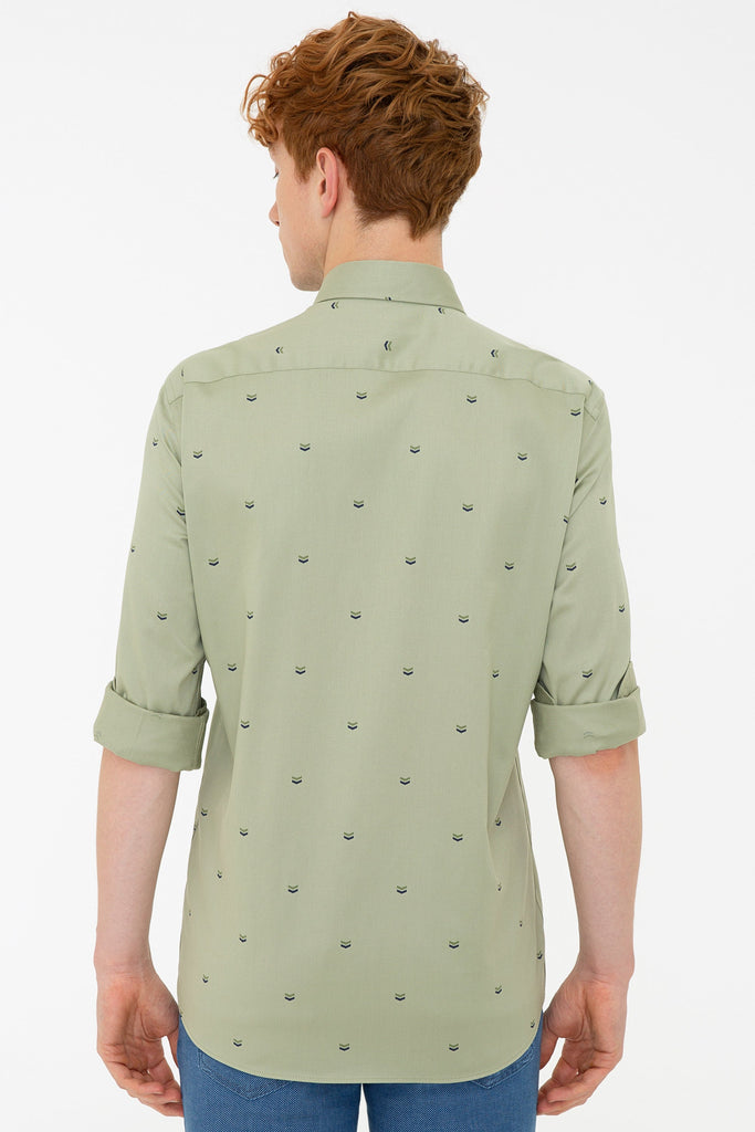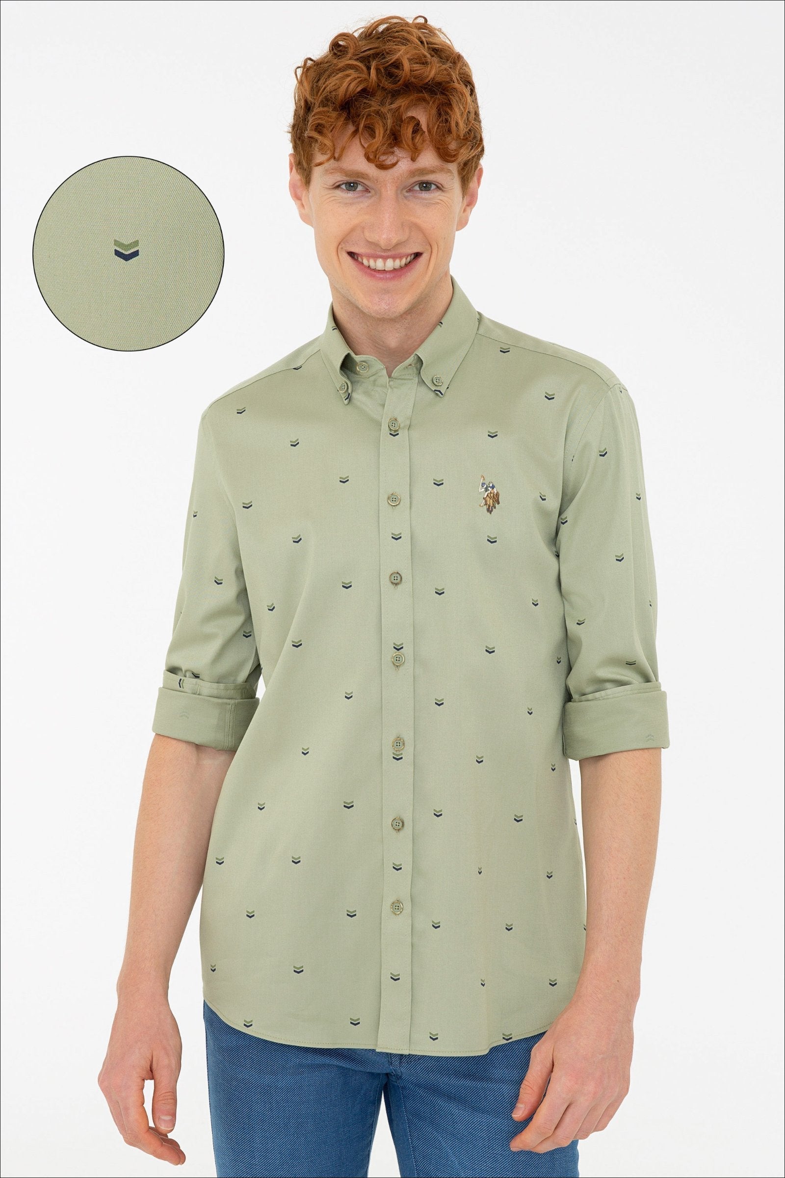 Šarmantna košulja u nježnoj pastelno zelenoj boji nudi savršen spoj udobnosti i stila za svaki dan. Karakteriše je lagani materijal koji omogućava prijatan osjećaj tokom nošenja, dok kroj osigurava odlično pristajanje. Na prednjem dijelu košulje ističe se diskretan dekorativni detalj koji donosi malo sofisticiranosti. Ova košulja je idealan izbor za razne prigode, bilo da se radi o poslovnom sastanku ili opuštenom izlasku s prijateljima, a lako se kombinira s različitim komadima odjeće poput traperica, chinos hlača ili jakni.