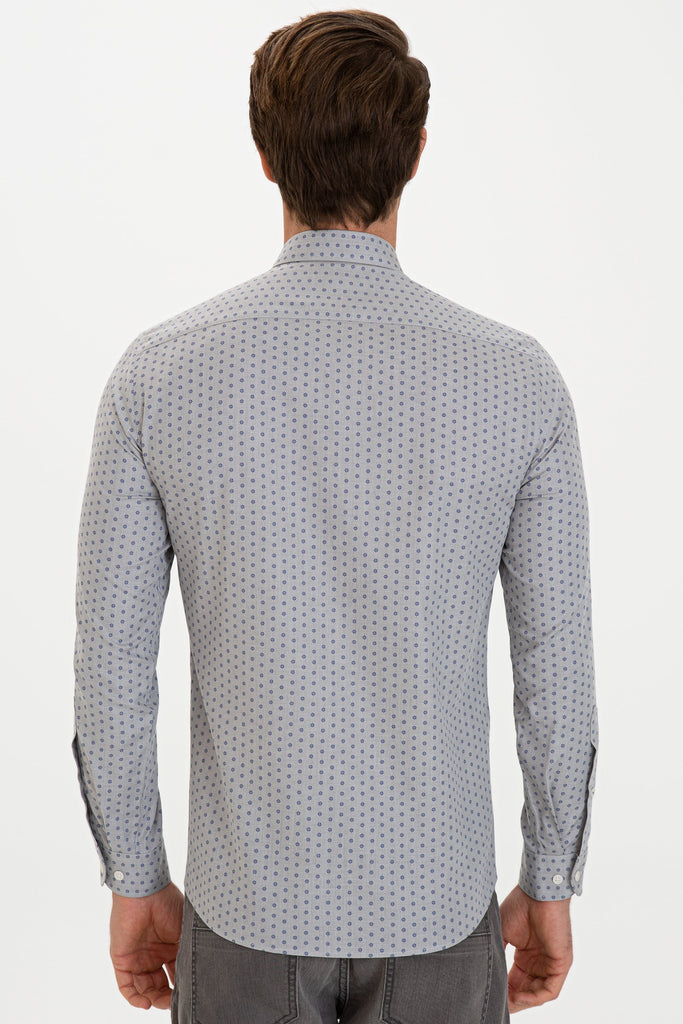 Elegantna košulja u sivoj boji donosi sofisticiran izgled i udobnost tokom cijelog dana. Karakterizira je nježna pamučna tkanina koja omogućava koži da diše, pružajući savršenu kombinaciju stila i praktičnosti. Na prednjem dijelu košulje nalaze se sitni uzorci koji dodaju dozu modernog šarma. Ova košulja je idealan izbor za poslovne sastanke ili ležerne naše, a može se lako kombinovati s različitim odjevnim predmetima poput hlača, chinos hlača ili traperica.