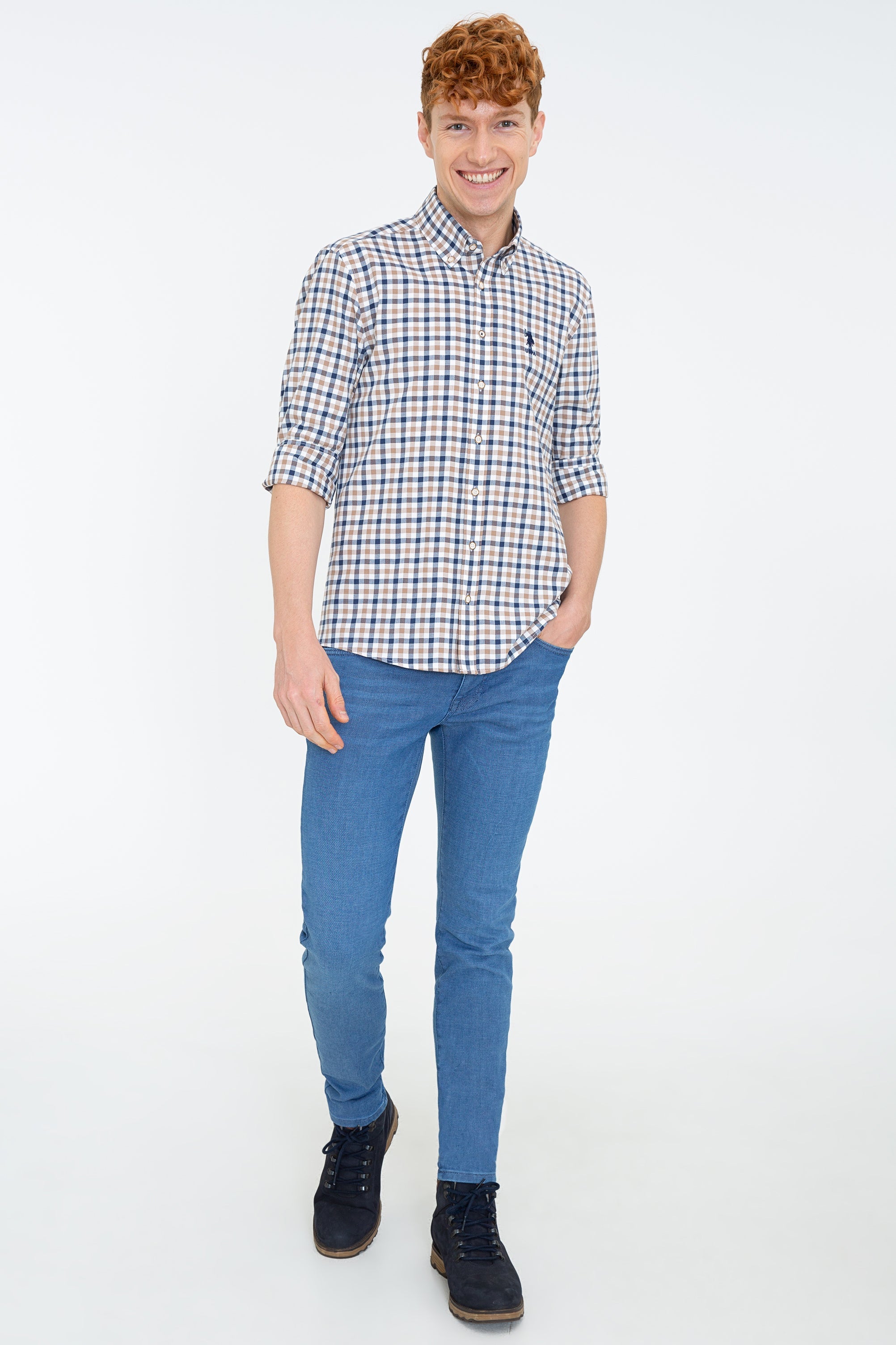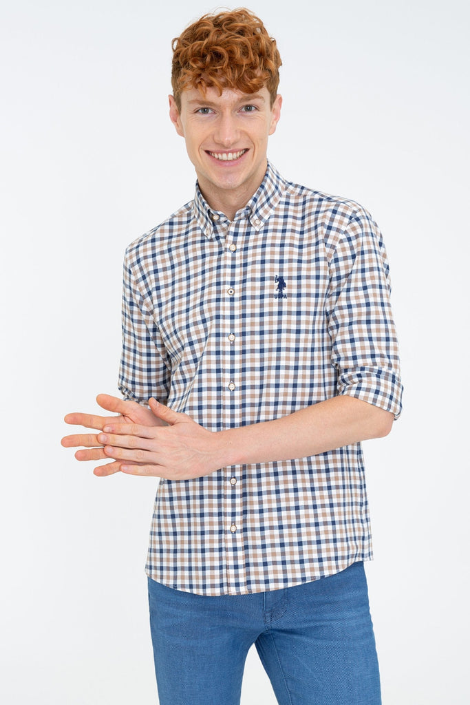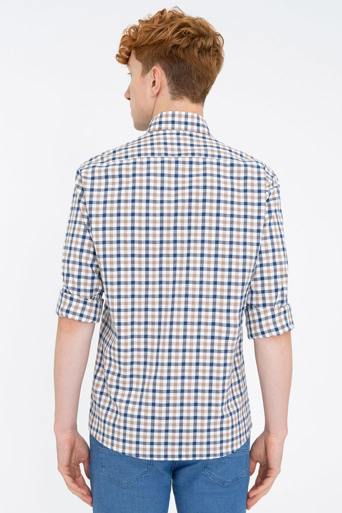 Ova košulja u klasičnom kariranom uzorku u kombinaciji plave, smeđe i bijele boje nudi savršen spoj stila i udobnosti. Karakteriše je lagana i prozračna tkanina koja je pogodna za cjelodnevno nošenje, dok kroj osigurava moderno pristajanje. Na prednjem dijelu se nalazi diskretan logotip koji dodaje dašak sofisticiranosti. Ova košulja se može lako kombinovati sa farmerkama ili hlačama za formalnije prilike, čineći je svestranom opcijom za razne stilove. Idealna je za svakodnevne izlaske ili poslovne sastanke.