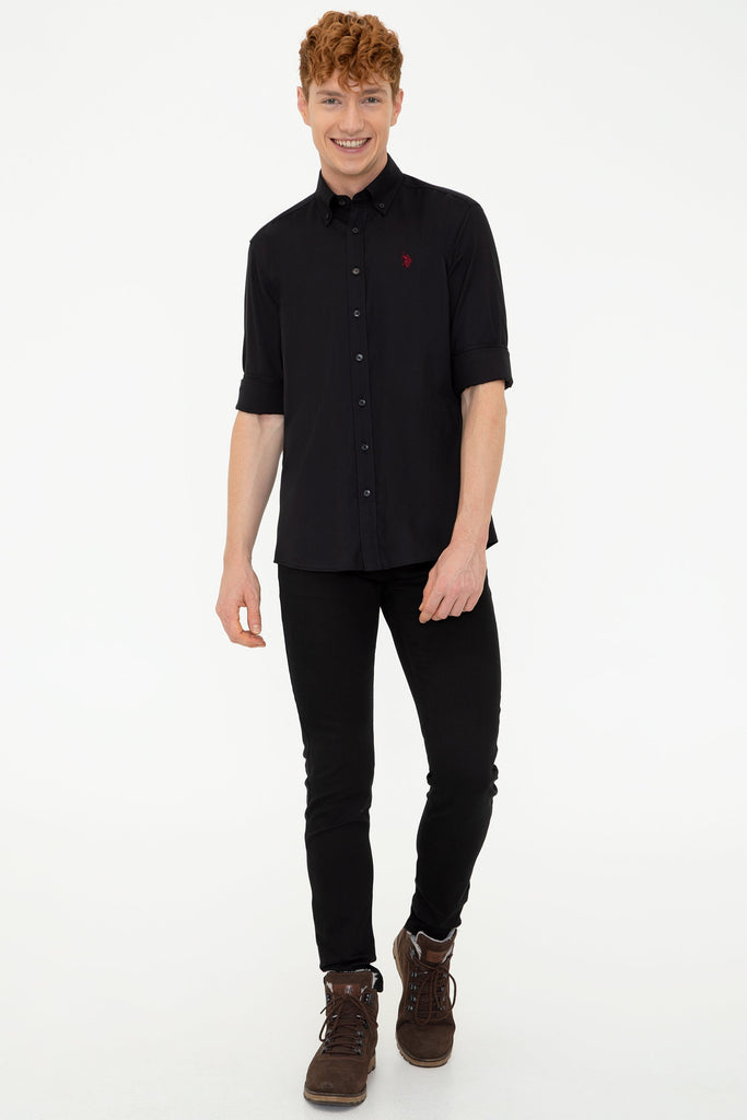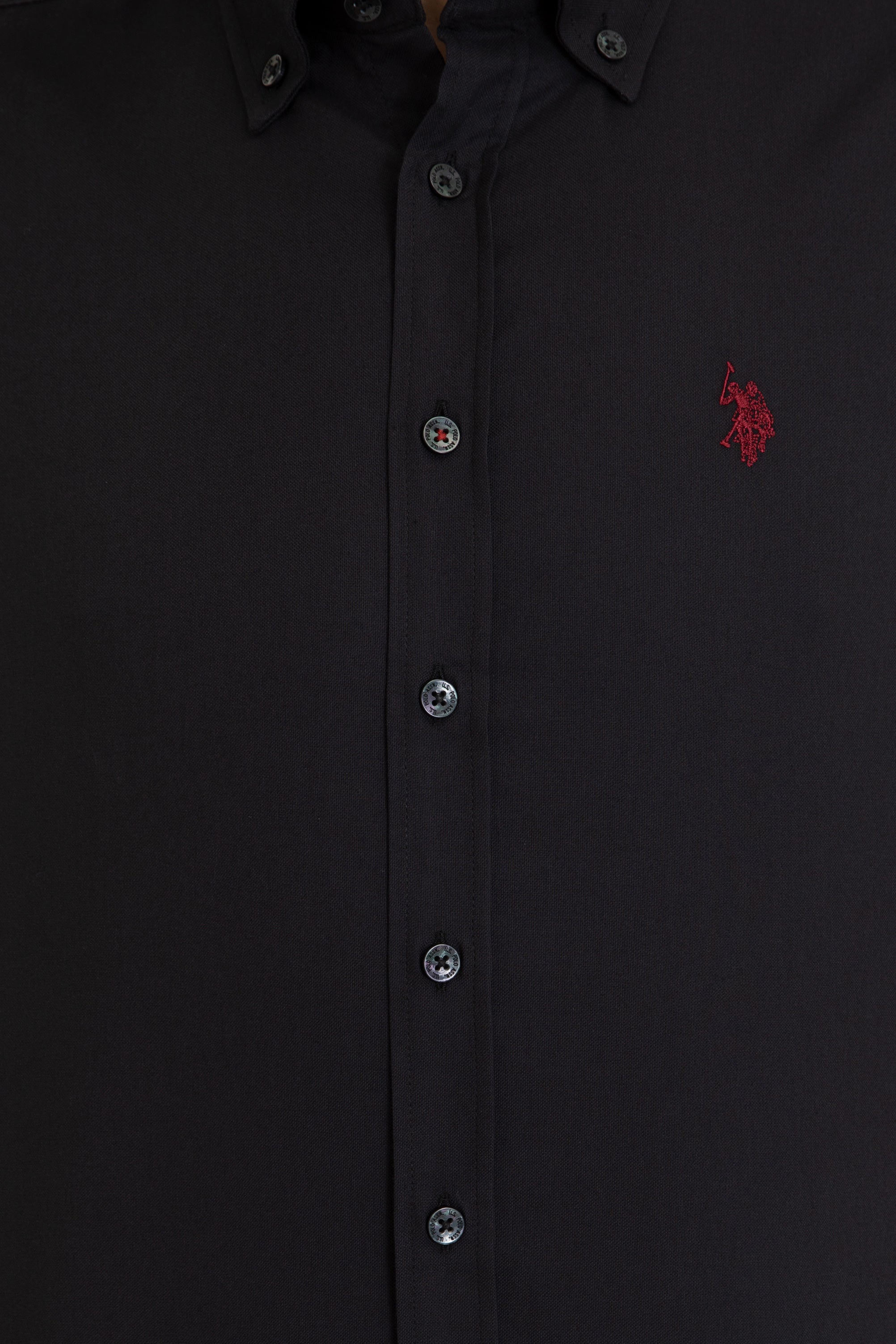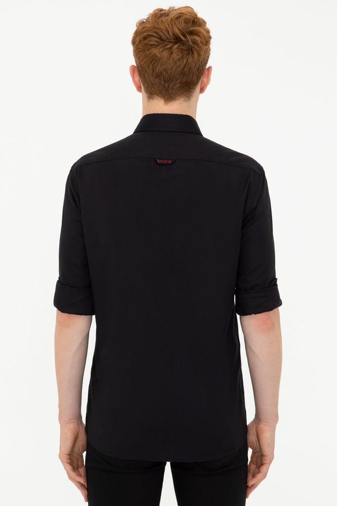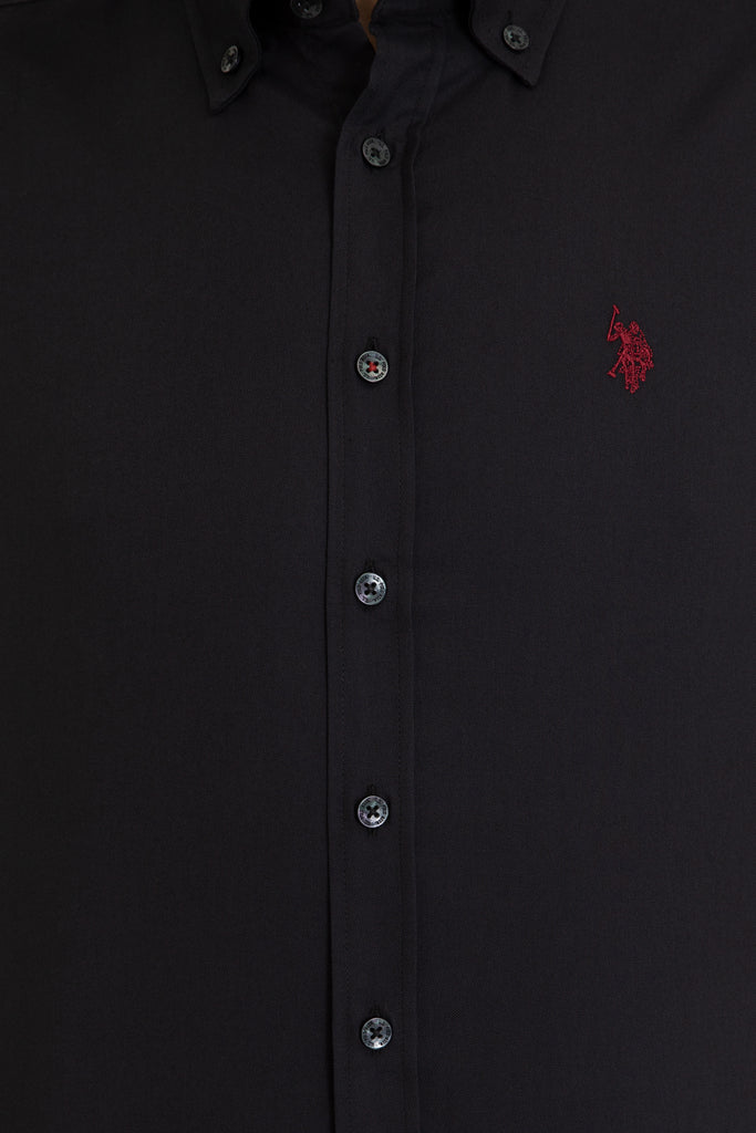 Elegantna košulja u klasičnoj crnoj boji donosi sofisticiranost i stil u svaku priliku. Karakteriše je visokokvalitetni materijal koji pruža udobnost tokom cijelog dana i osigurava odlično pristajanje. Na prsima se nalazi suptilni logo koji dodaje note prepoznatljivosti bez da odmiče pažnju. Ova košulja je savršen izbor za poslovne kombinacije, ali i za ležerne izlaske, a može se lako kombinovati sa pantalonama, farmerkama ili čak šortsevima za savršeno uklapanje.