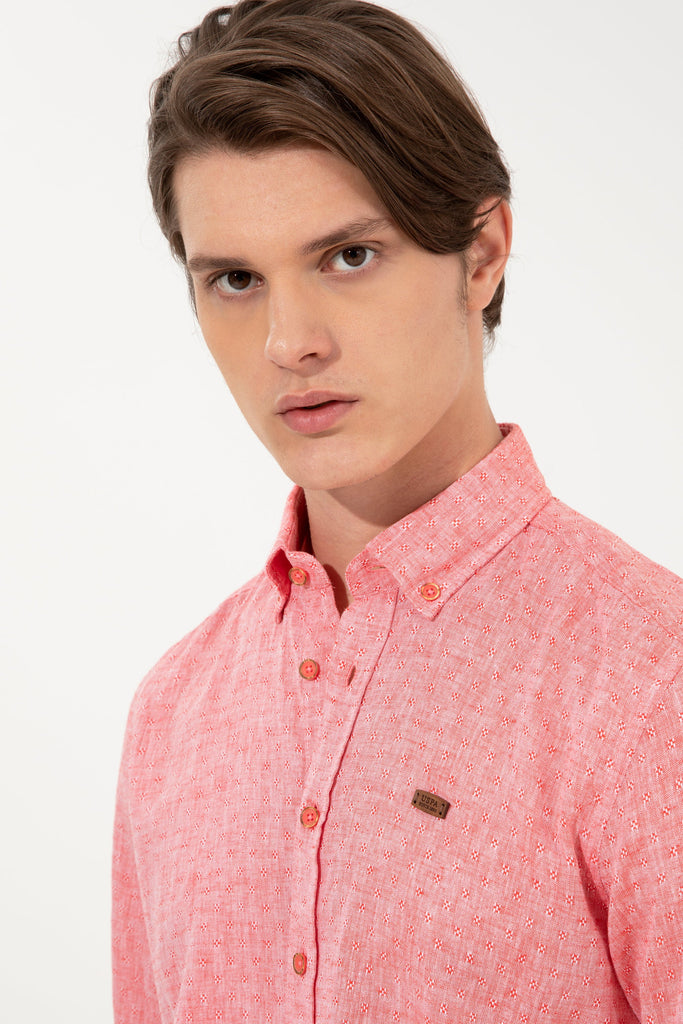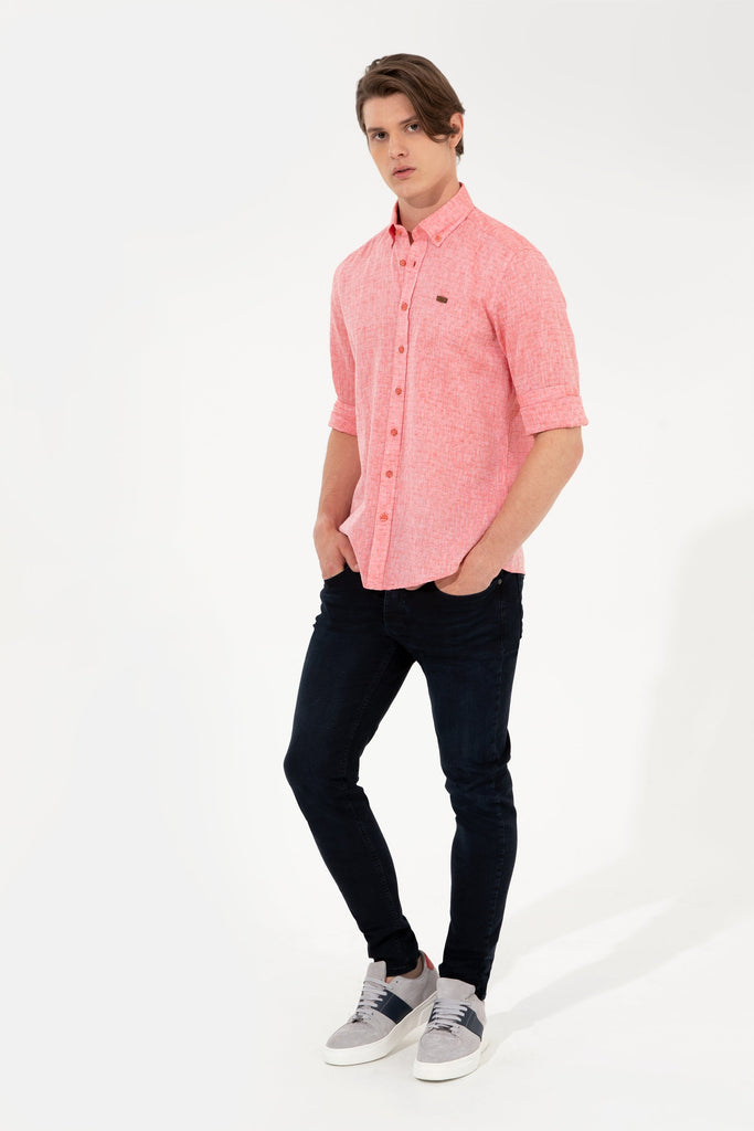 Ova elegantna košulja u vibrantnoj ružičastoj boji donosi svježinu i stil svakom izgledu. Karakteriše je lagana i prozračna tkanina koja osigurava udobnost tokom cijelog dana. Dugmići na prednjem dijelu dodaju praktičnost, dok je klasični ovratnik pruža sofisticiran izgled. Ova košulja je idealna za razne prilike, bilo da se radi o poslovnom okruženju ili opuštenom izlasku, a lako se kombinira s pantalonama, trapericama ili šortsem za savršen ljetni stil.