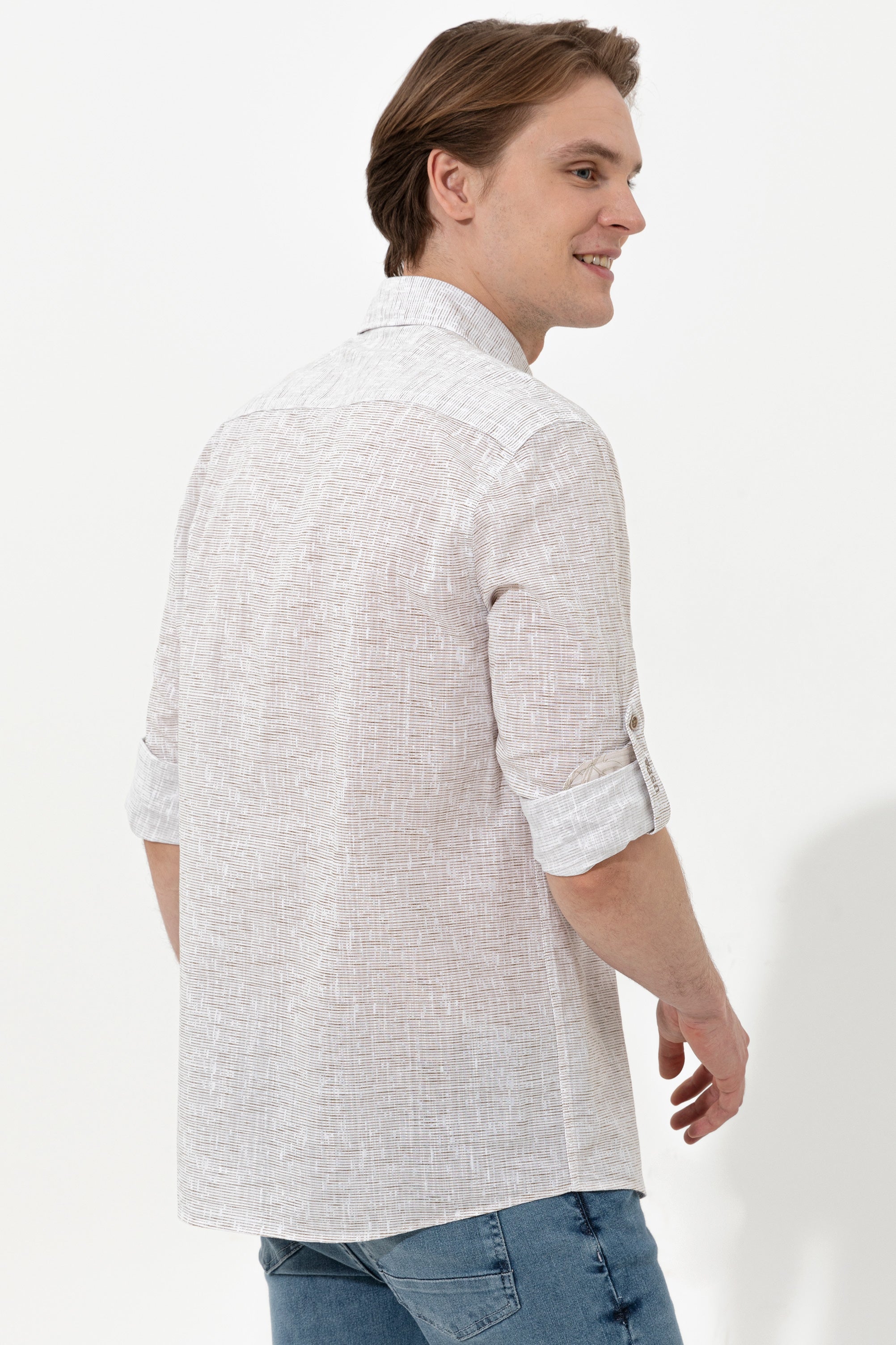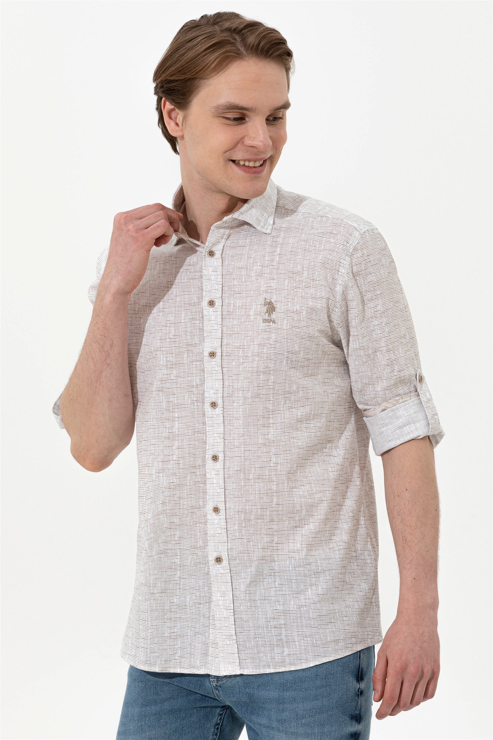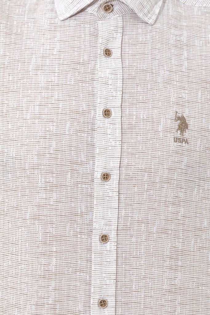 Šarmantna košulja u blagoj bež boji pruža udobnost i stil za različite prilike. Karakteriše je lagani materijal koji osigurava prijatno nošenje tokom cijelog dana. Na prednjem dijelu košulje nalazi se uočljiv logo koji dodaje dašak sofisticiranosti. Ova košulja je savršen izbor za ležerne izlaske, poslovne sastanke ili opuštene vikende, a može se kombinovati sa farmerkama, chinos hlačama ili šortsevima.