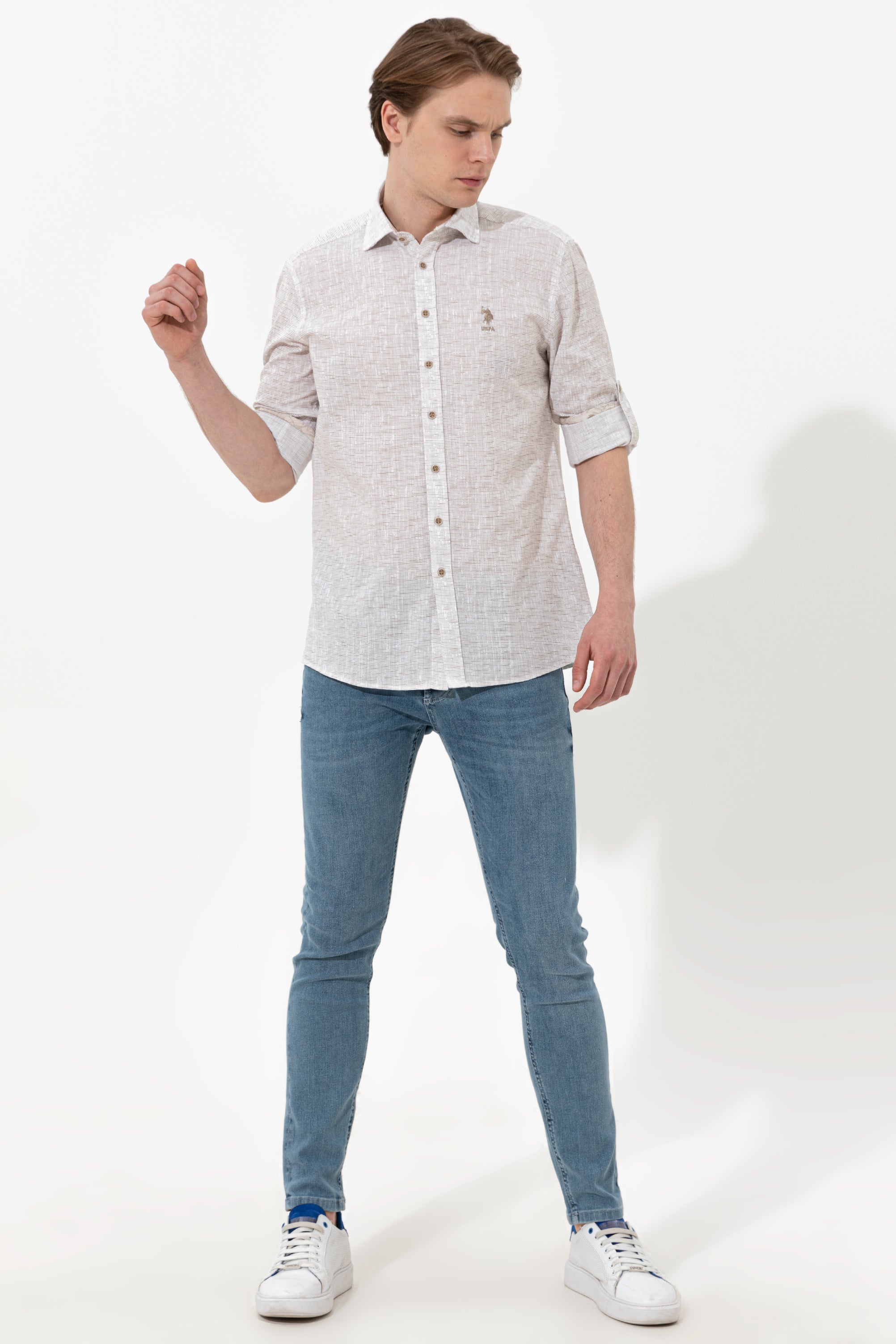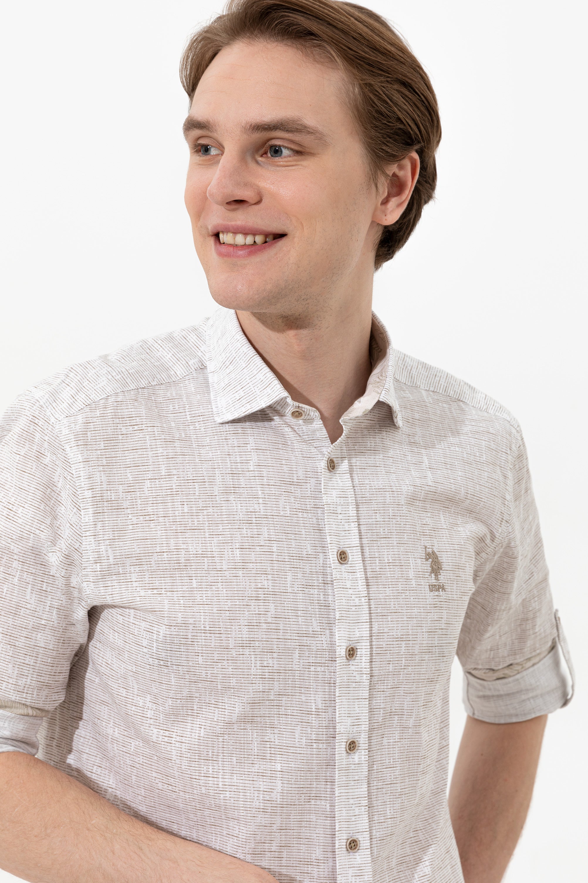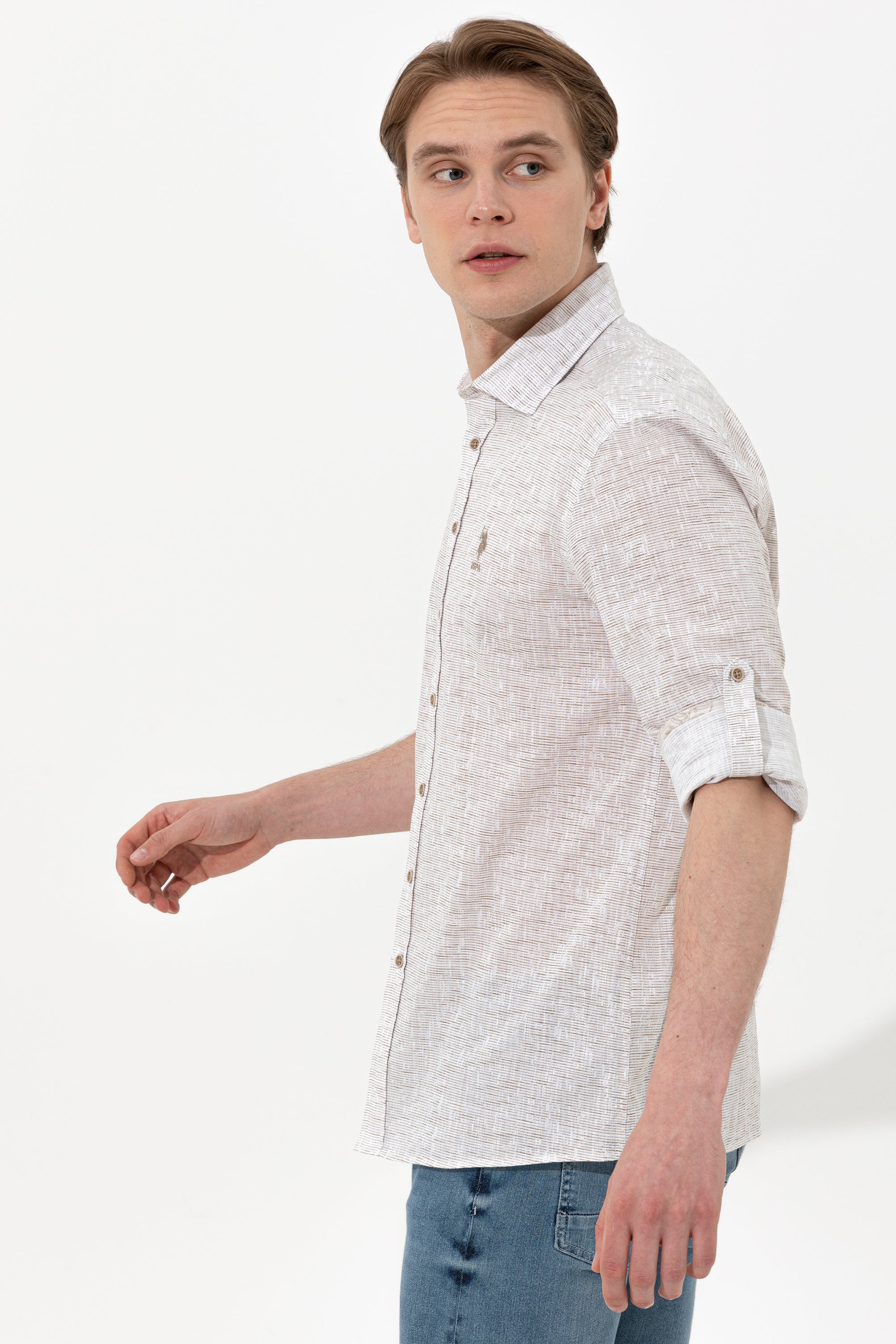 Šarmantna košulja u blagoj bež boji pruža udobnost i stil za različite prilike. Karakteriše je lagani materijal koji osigurava prijatno nošenje tokom cijelog dana. Na prednjem dijelu košulje nalazi se uočljiv logo koji dodaje dašak sofisticiranosti. Ova košulja je savršen izbor za ležerne izlaske, poslovne sastanke ili opuštene vikende, a može se kombinovati sa farmerkama, chinos hlačama ili šortsevima.