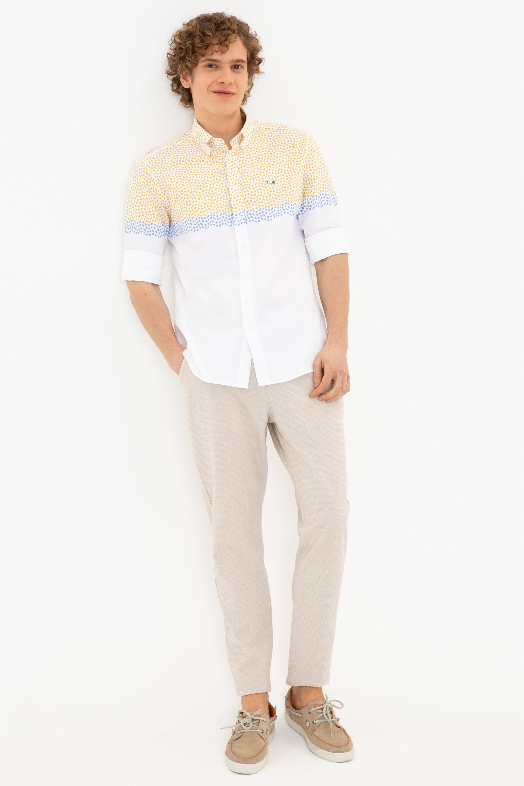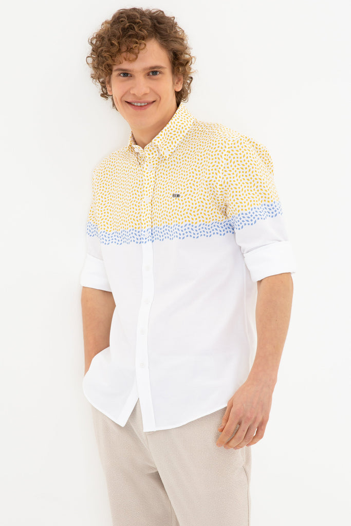 Ova vesela košulja u kombinaciji živahnih boja donosi svježinu i energiju svakodnevnim kombinacijama. Karakteriše je lagani pamuk koji osigurava udobnost i prozračnost tokom toplih dana. Na gornjem dijelu košulje ističe se zanimljiv uzorak koji dodaje razigranost i moderni dodir. Košulja se lako može kombinovati sa svim vrstama pantalona, bilo da se radi o trapericama ili laganim ljetnim hlačama, čineći je savršenim izborom za svaki ležeran izlazak ili druženje.