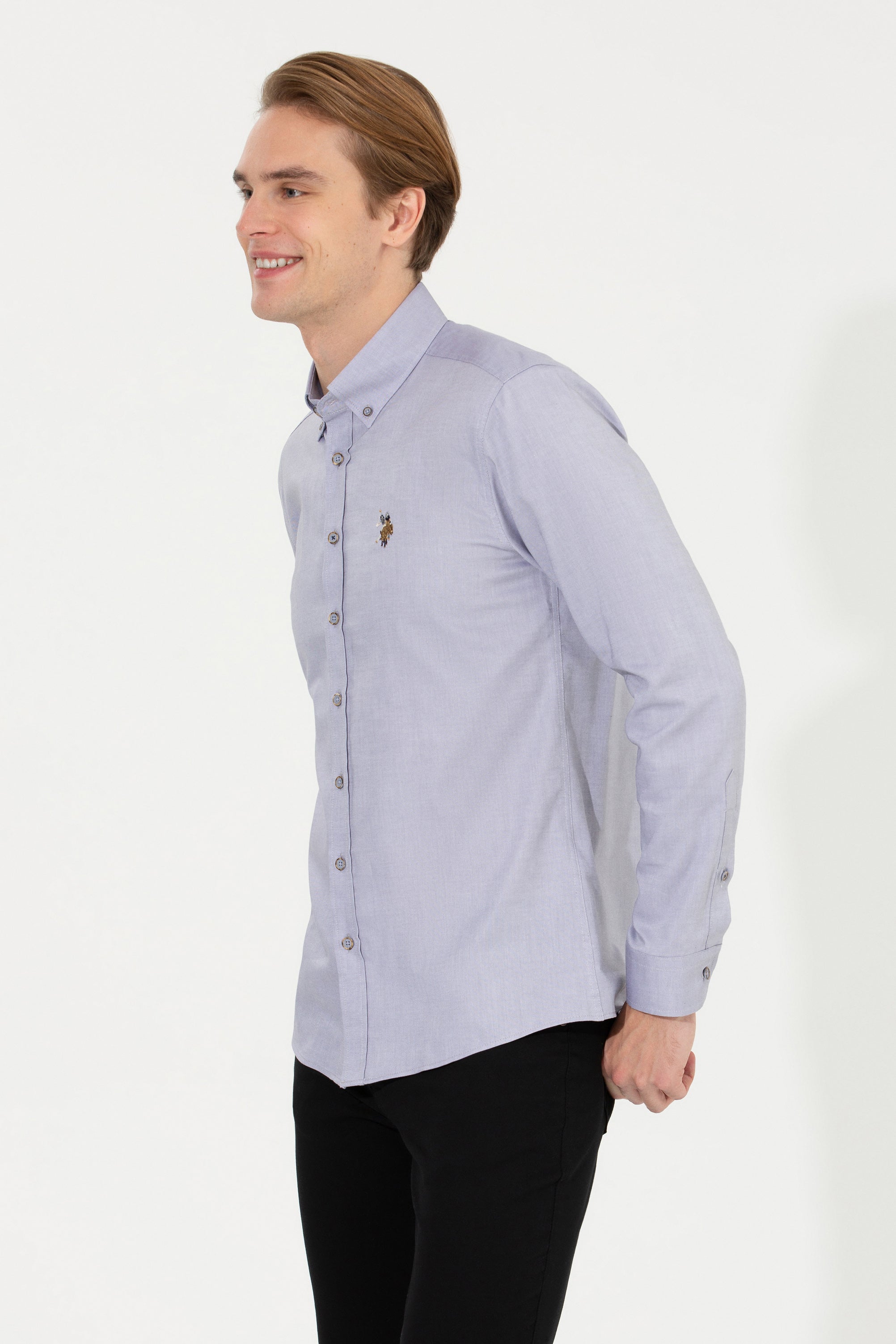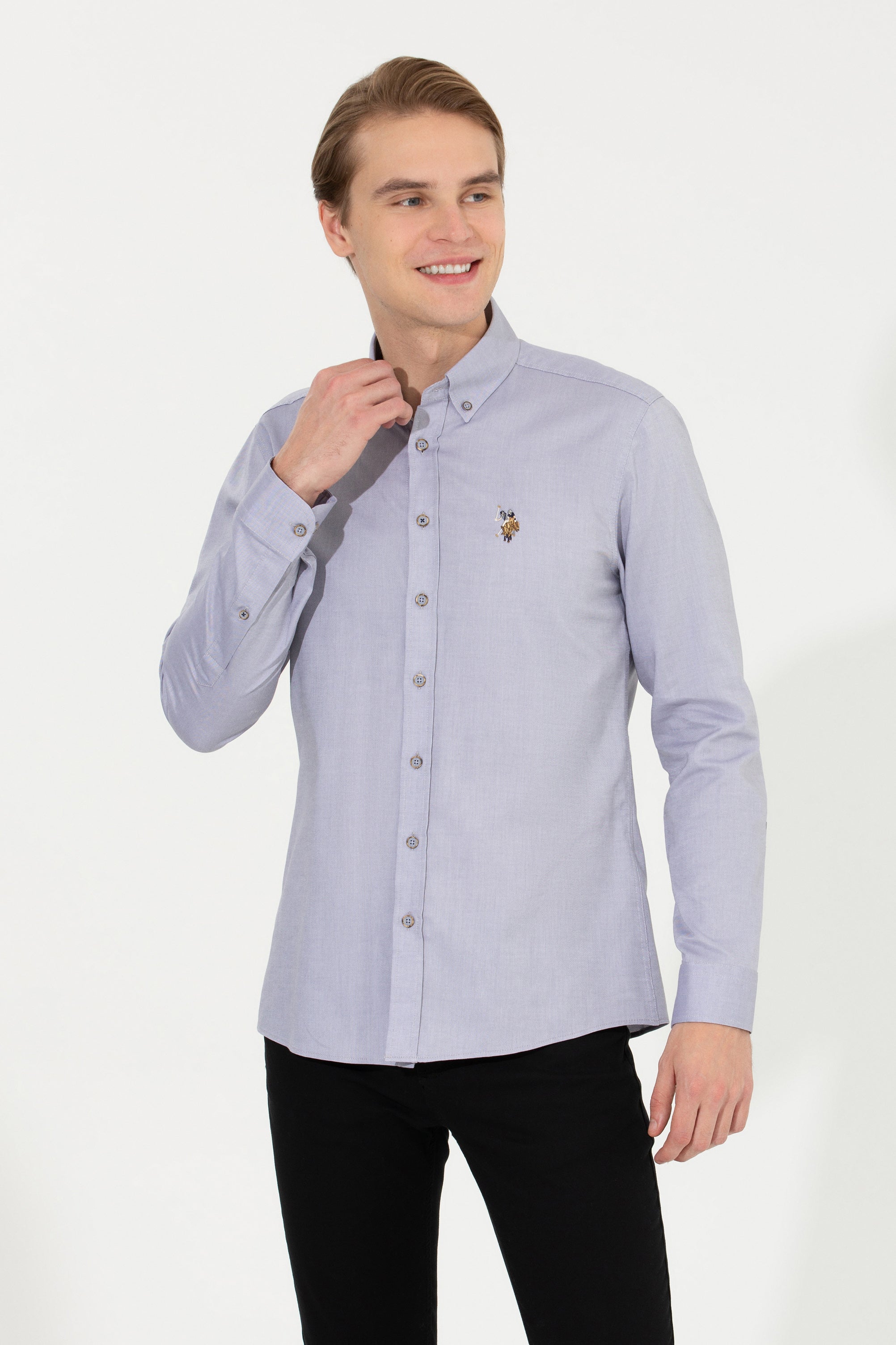 Ova elegantna košulja u svijetlo sivoj boji pruža sofisticiran izgled i udobnost tokom cijelog dana. Karakteriše je klasičan kroj sa dugim rukavima, što je čini savršenom za razne prilike. Na prednjem dijelu košulje nalazi se suptilan dekorativni detalj koji dodaje personalizirani pečat. Ova košulja je idealan izbor za poslovne sastanke ili ležerne večere, a lako se može kombinovati sa raznim hlačama i jaknama, čime će svaka kombinacija dobiti na stilskoj vrijednosti.