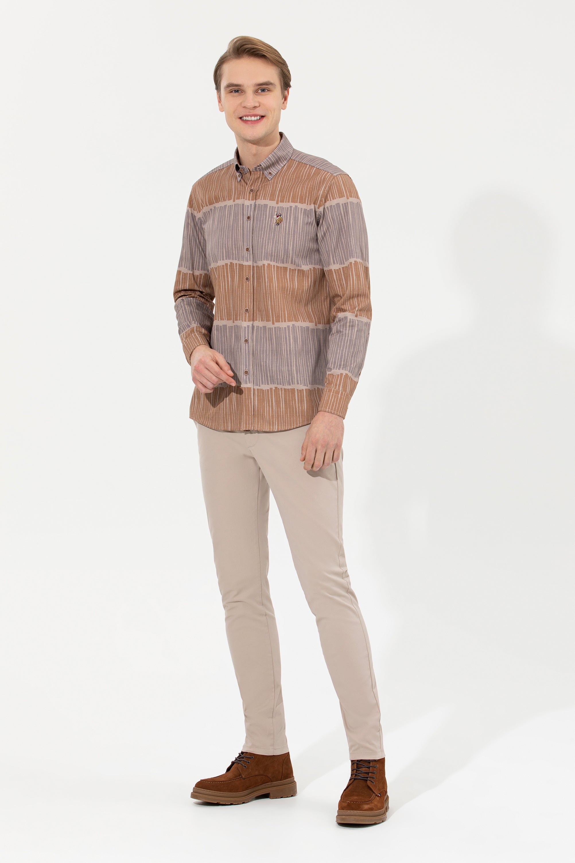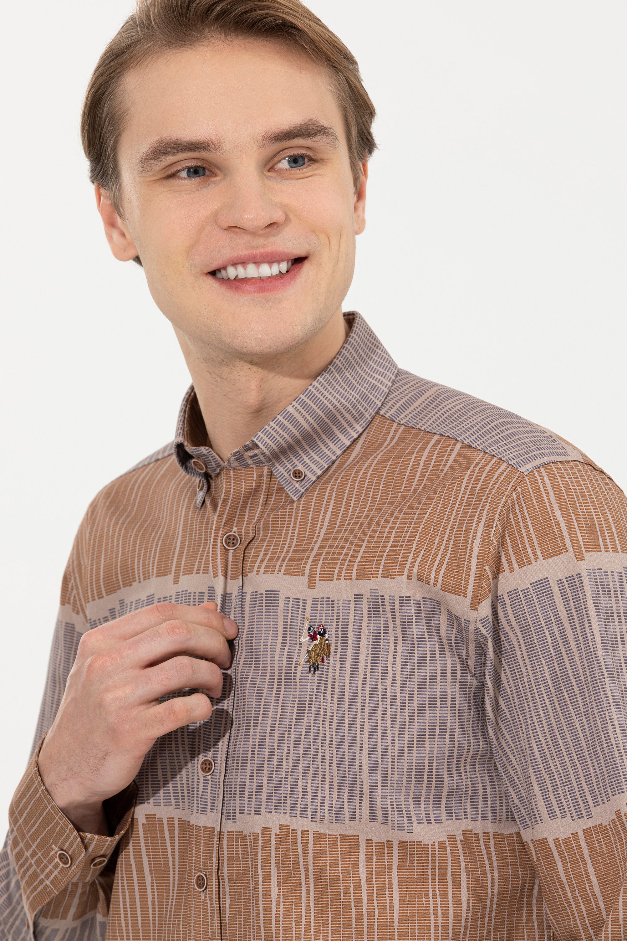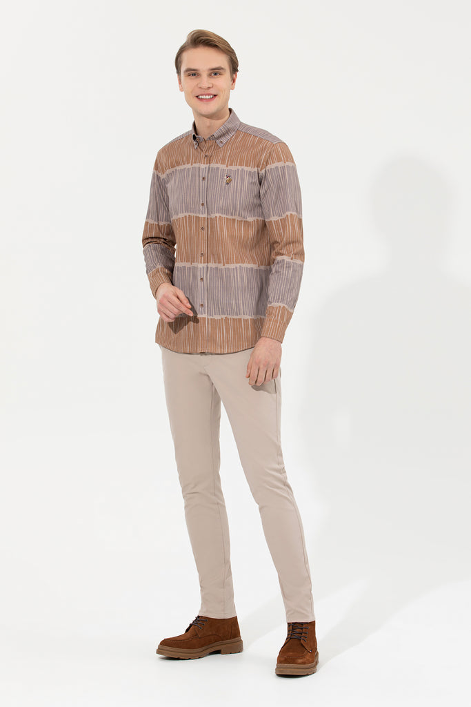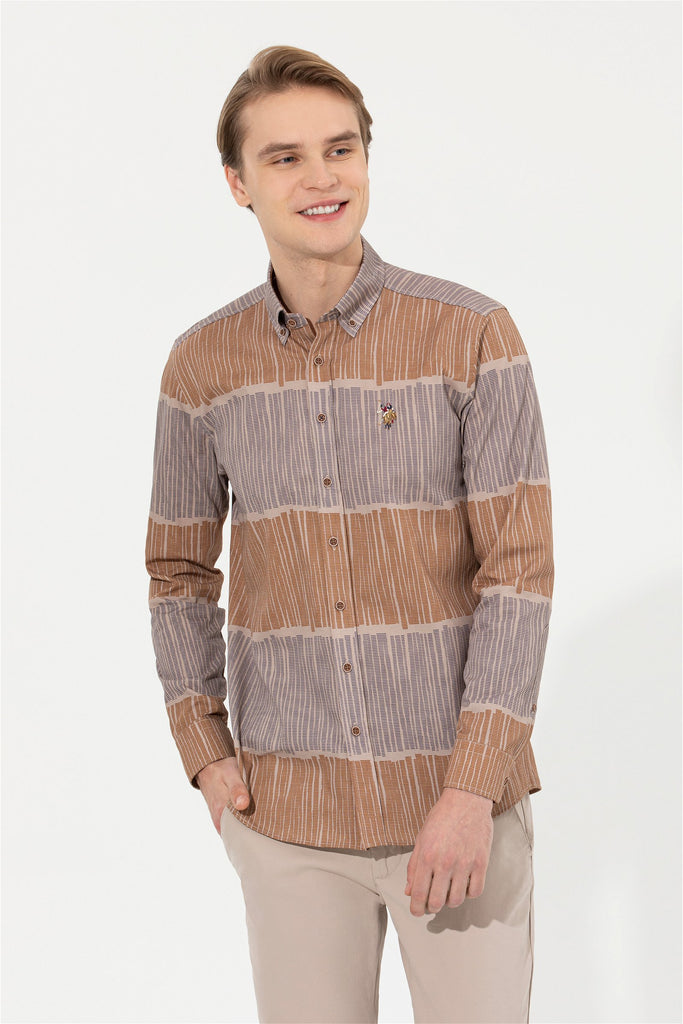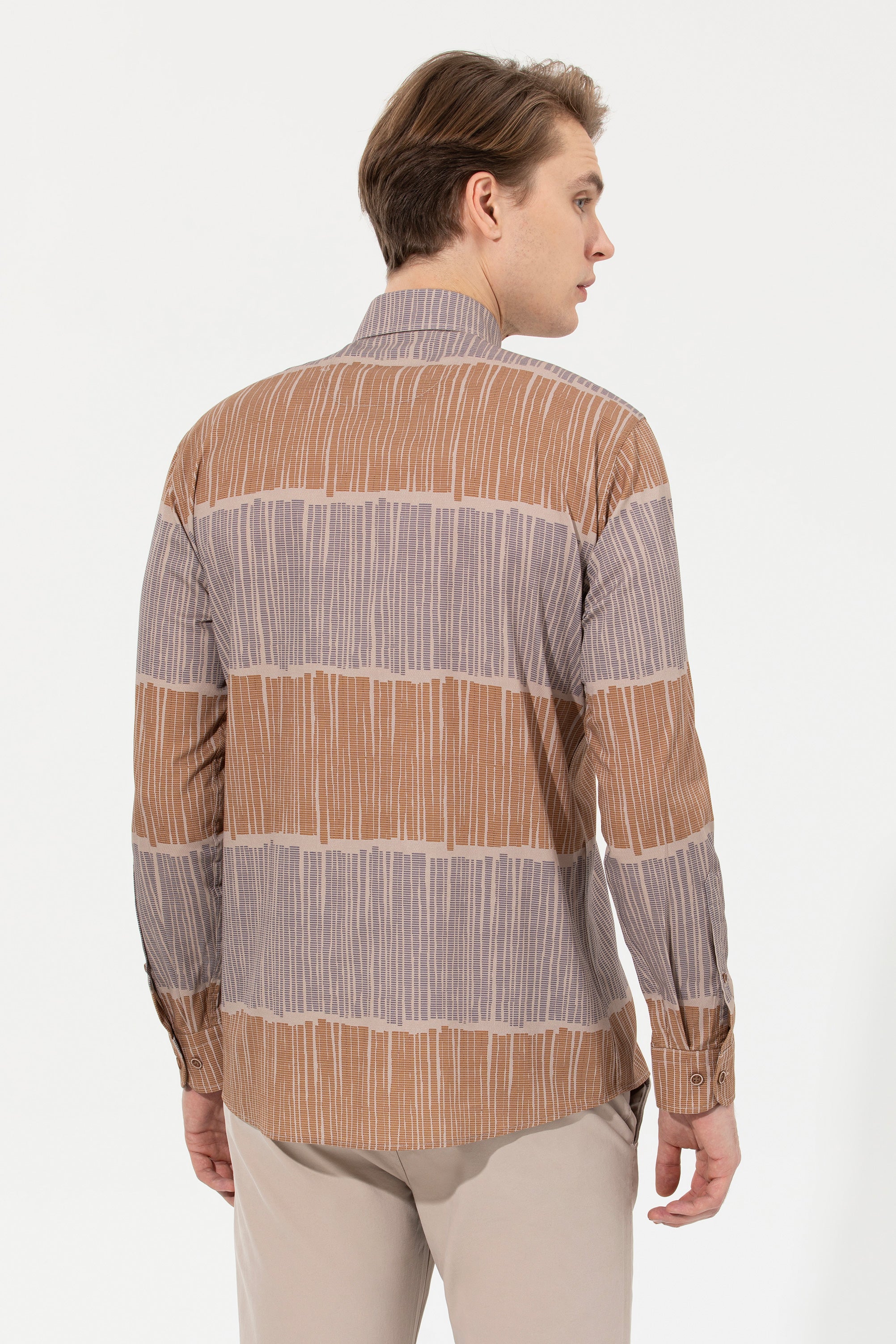 Elegantna košulja u zemljanim tonovima donosi dašak sofisticiranosti i udobnosti u svakodnevne kombinacije. Karakteriše je posebna tekstura sa savremenim linijama koje osiguravaju lako kombinovanje s različitim stilovima. Na prednjem dijelu košulje nalazi se diskretan dekorativni detalj koji dodaje dozu stila. Ova košulja je savršena za poslovne prilike ili ležerne izlaske, a može se nositi uz chinos hlače, jeans ili ispod sakoa za dodatnu eleganciju.