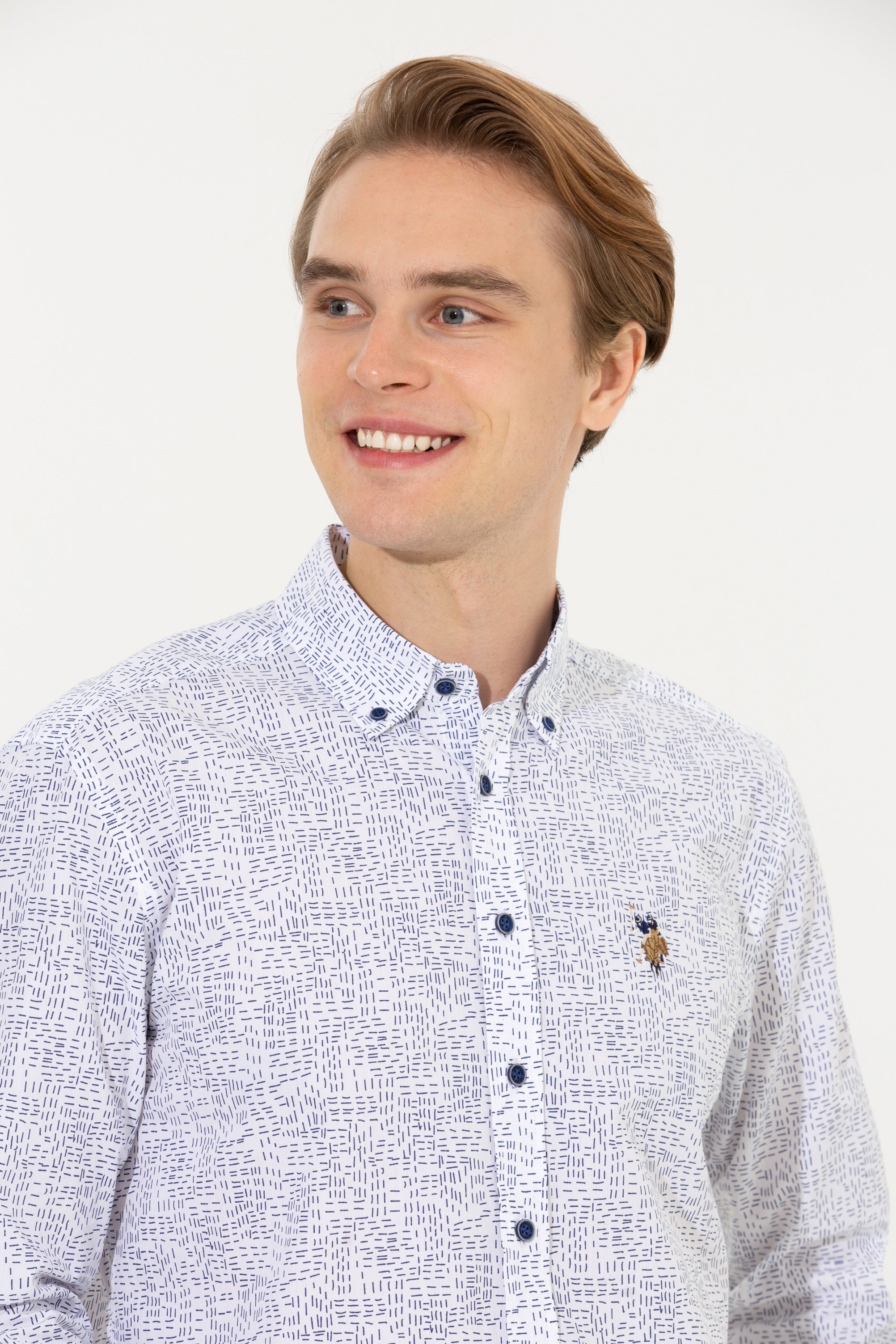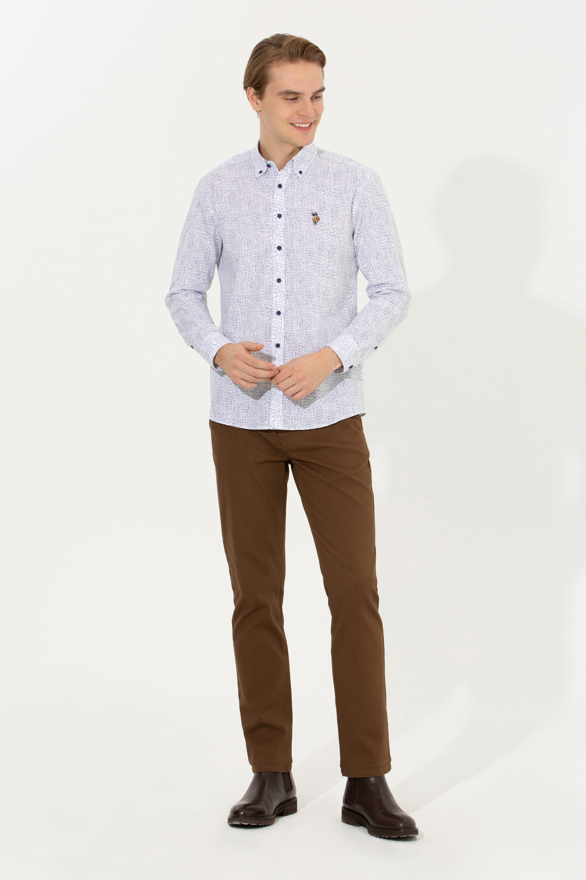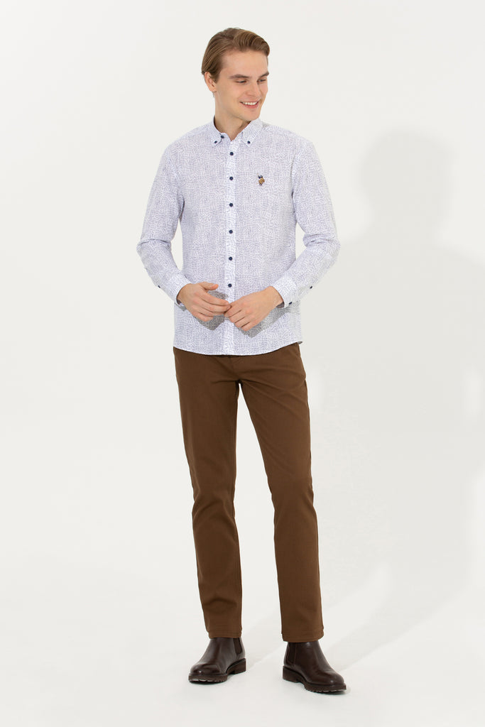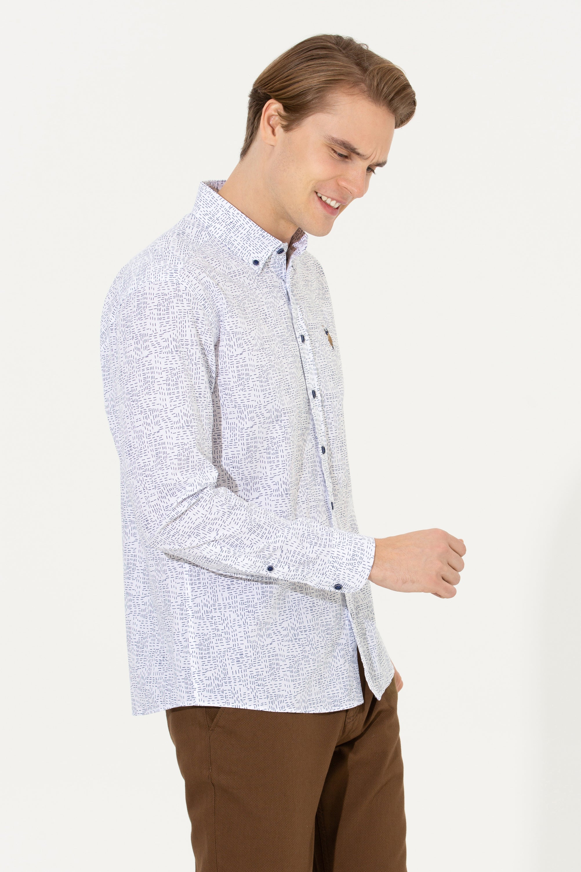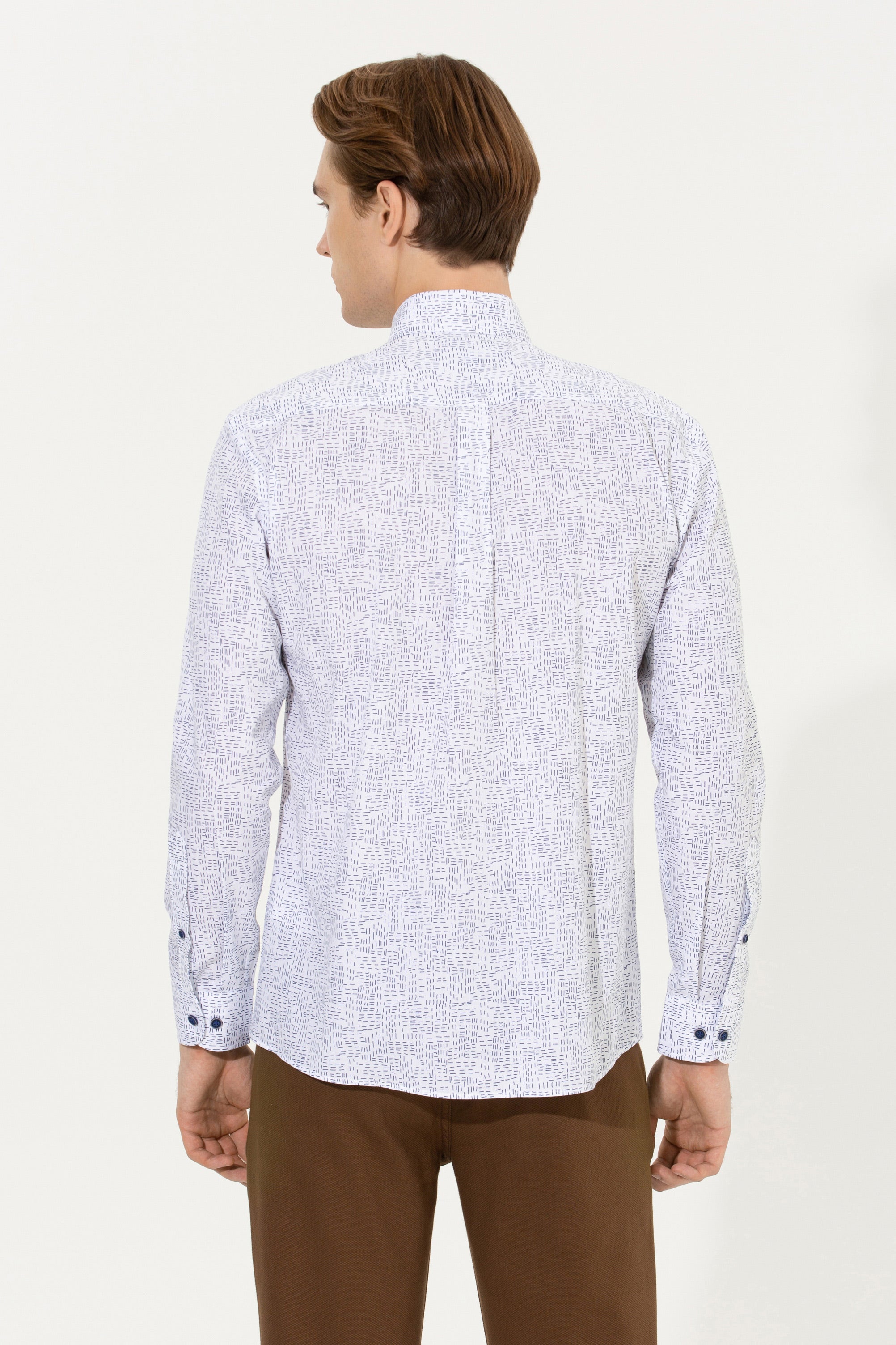 Ova košulja u svjetlijoj nijansi sa zanimljivim uzorkom pruža savršenu kombinaciju udobnosti i stila. Karakterišu je kvalitetni materijal i precizno krojenje koje osigurava dobar fit i ugodno nošenje tokom cijelog dana. Na prednjem dijelu košulje nalazi se diskretan detalj koji dodaje dašak sofisticiranosti. Ova košulja je idealan izbor za različite prilike, bilo da se radi o poslovnim sastancima ili neformalnim izlascima, i izvrsno se slaže s trapericama, chinos hlačama ili kratkim hlačama, omogućavajući raznolike i moderne kombinacije.
