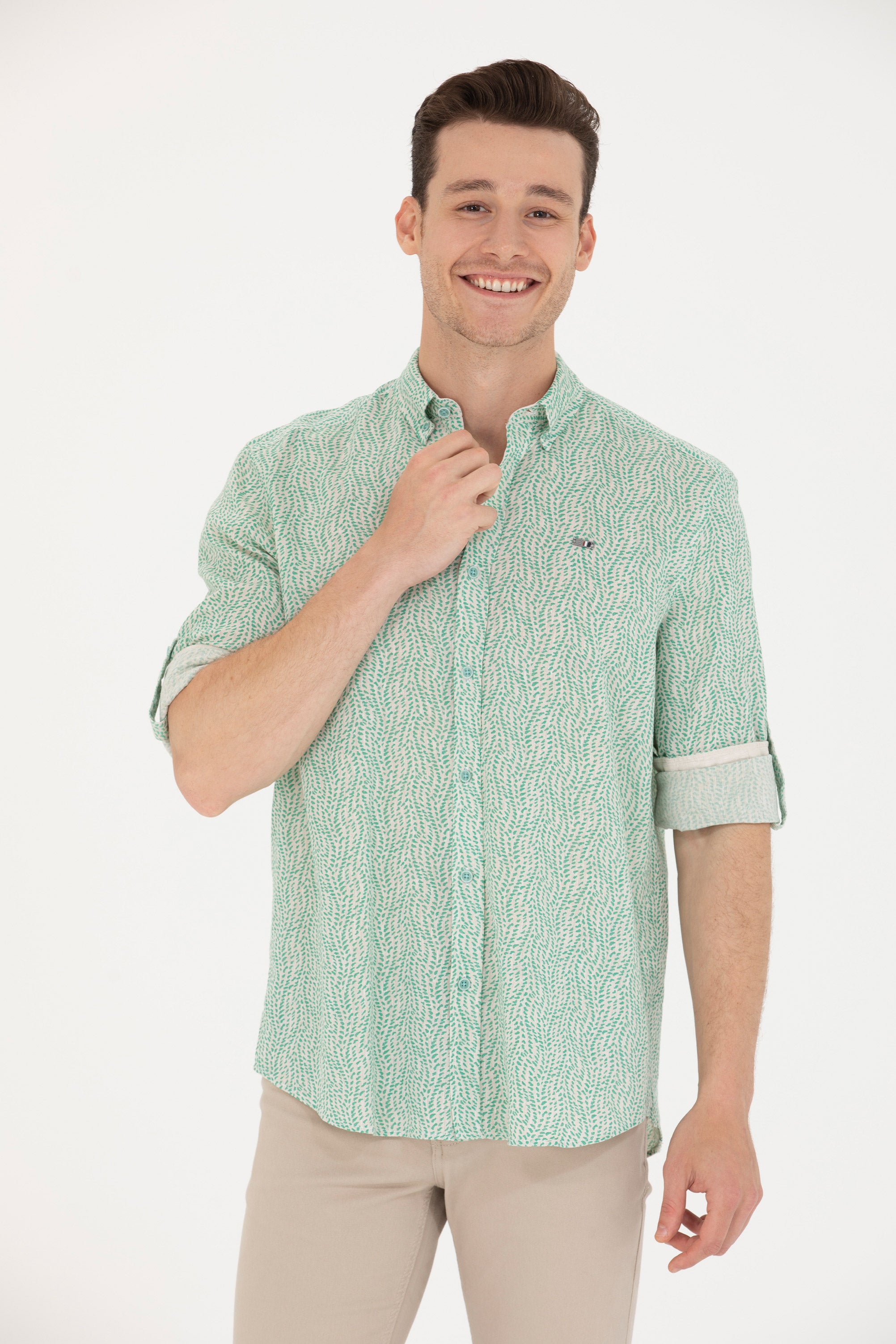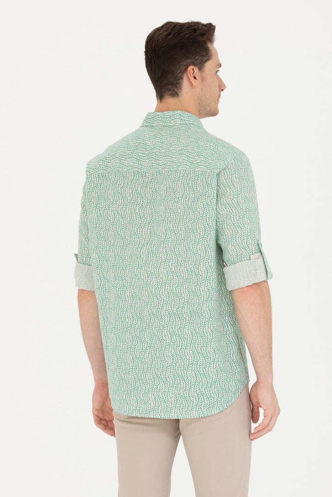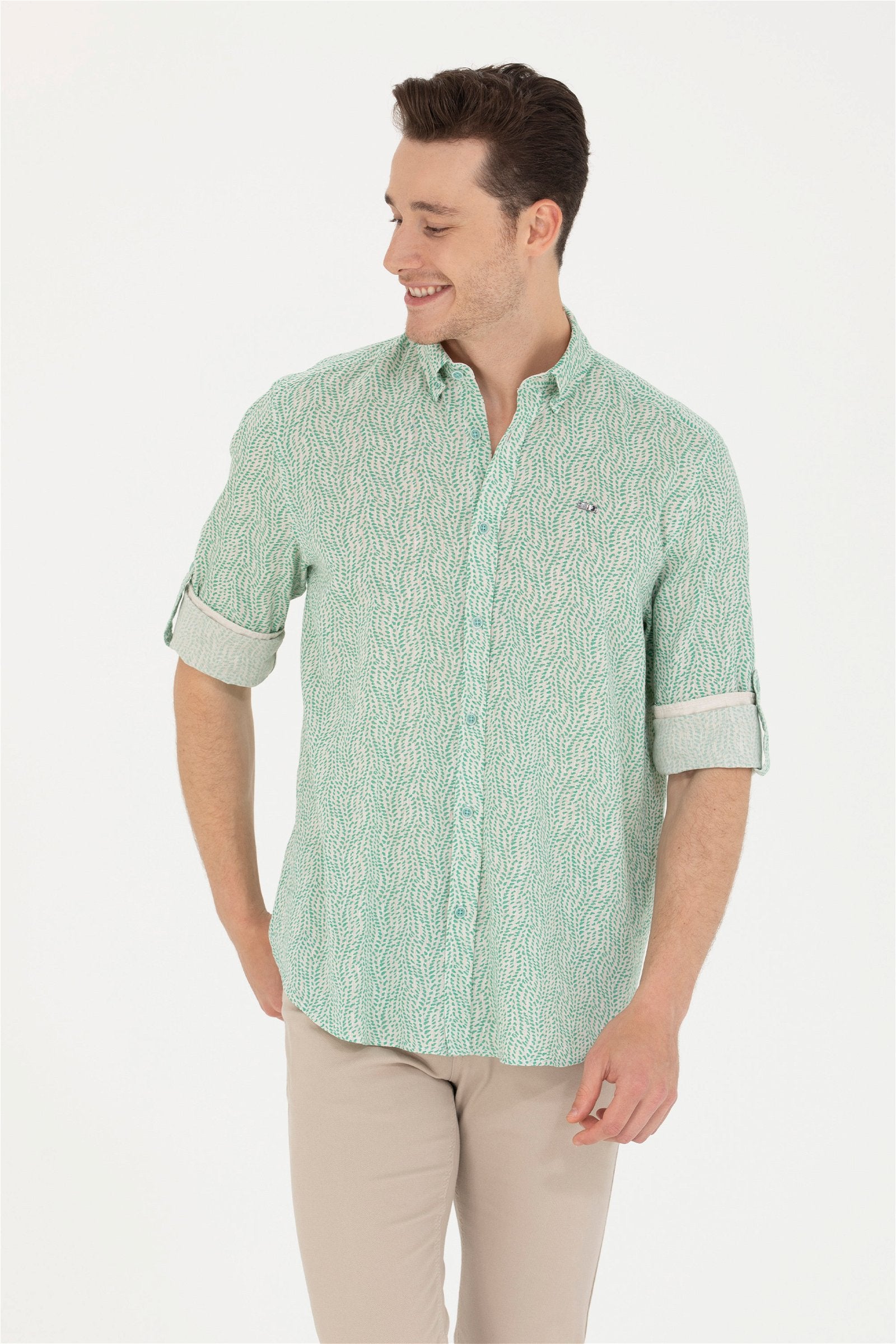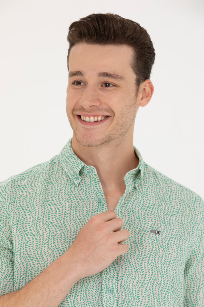 Ova košulja u svijetloj zelenoj boji sa zanimljivim uzorkom pruža savršen spoj udobnosti i stila. Karakteriše je lagani materijal koji omogućava prozračnost i udobno nošenje tokom cijelog dana. Na prednjem dijelu košulje nalazi se klasičan ovratnik i dugmad koja dodaju na nježnosti i eleganciji. Ova košulja je idealan izbor za razne prilike, bilo da se radi o ležernom izlasku ili poslovnom sastanku, a lako se kombinuje s chinos hlačama, trapericama ili kratkim hlačama za opušteniji izgled.
