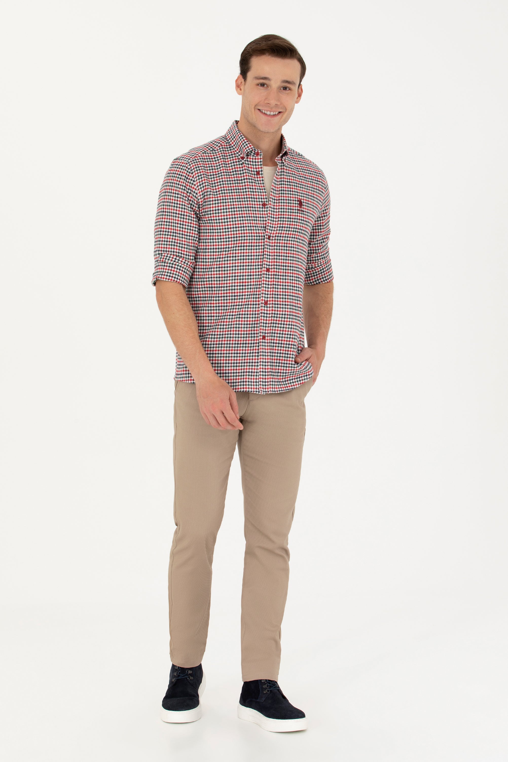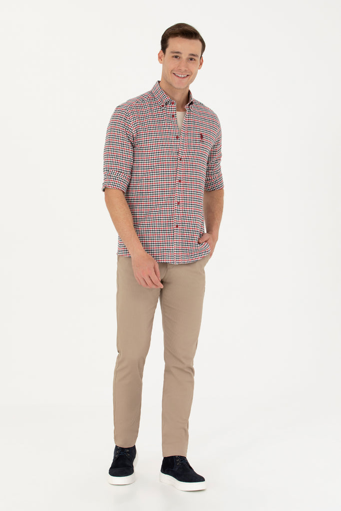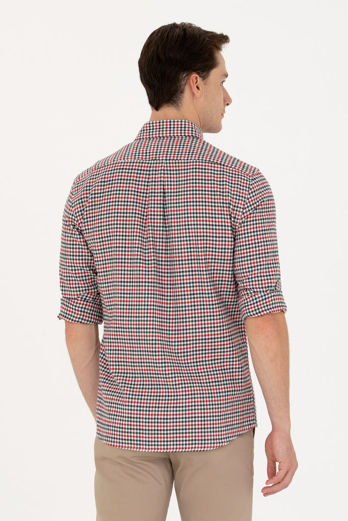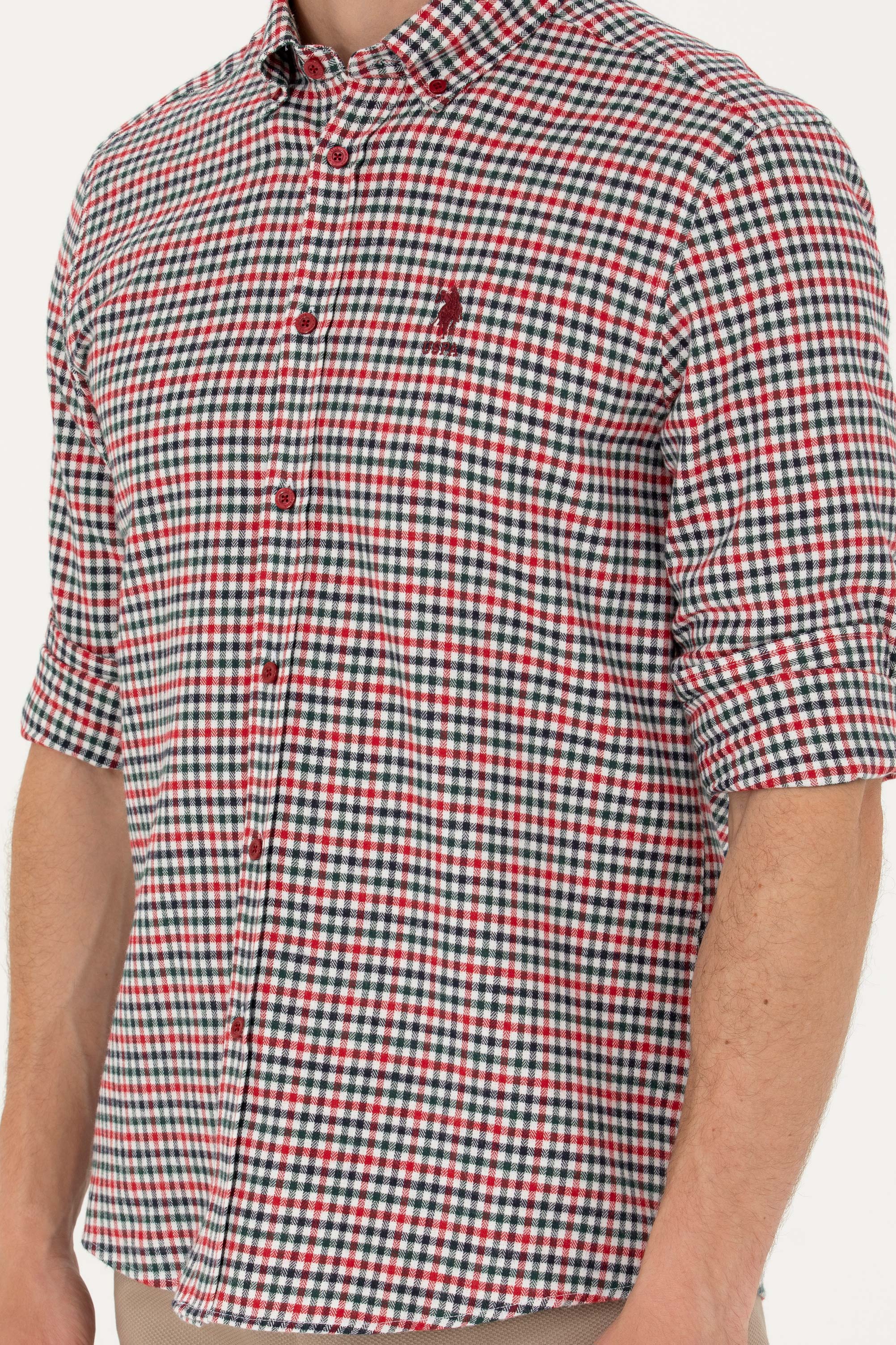 Elegantna košulja u klasičnom kariranom uzorku u crvenoj i plavoj boji pruža neodoljiv spoj stila i udobnosti. Karakteriše je lagana pamučna tkanina koja osigurava prozračnost i prijatnost tokom cijelog dana. Na prednjem dijelu košulje nalaze se dugmad koja dodatno ističu njen sofisticirani dizajn. Ova košulja je savršen izbor za razne prilike, bilo da se radi o poslovnim sastancima ili opuštenim vikend izlascima, a lako se kombinira s hlačama, trapericama ili šortsima.