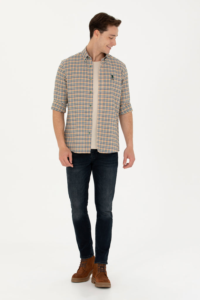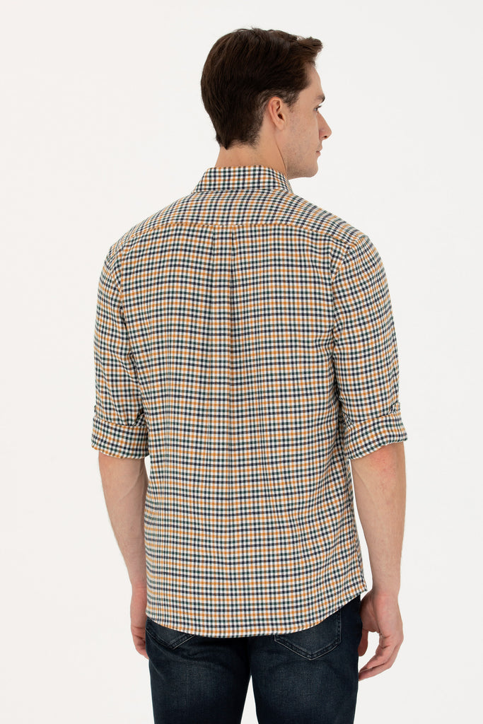 Elegantna košulja u klasičnom kariranom dizajnu kombinacije plave, narandžaste i bijele boje savršena je za svakodnevne prilike i ležerne izlaske. Karakteriše je udobna pamučna tkanina koja pruža mekoću i prozračnost tokom nošenja. Kragna s dugmadima dodaje sofisticiranu notu, dok su manžetne lako podesive, omogućavajući savršeno pristajanje. Ova košulja se lako kombinira s različitim odjevnim predmetima, bilo da je riječ o trapericama za opušteniji izgled ili hlačama za formalnije prilike, što je čini svestranim komadom vaše garderobe. Idealna je za svakodnevne aktivnosti ili izlazak s prijateljima i pruža osjećaj stila bez napora.