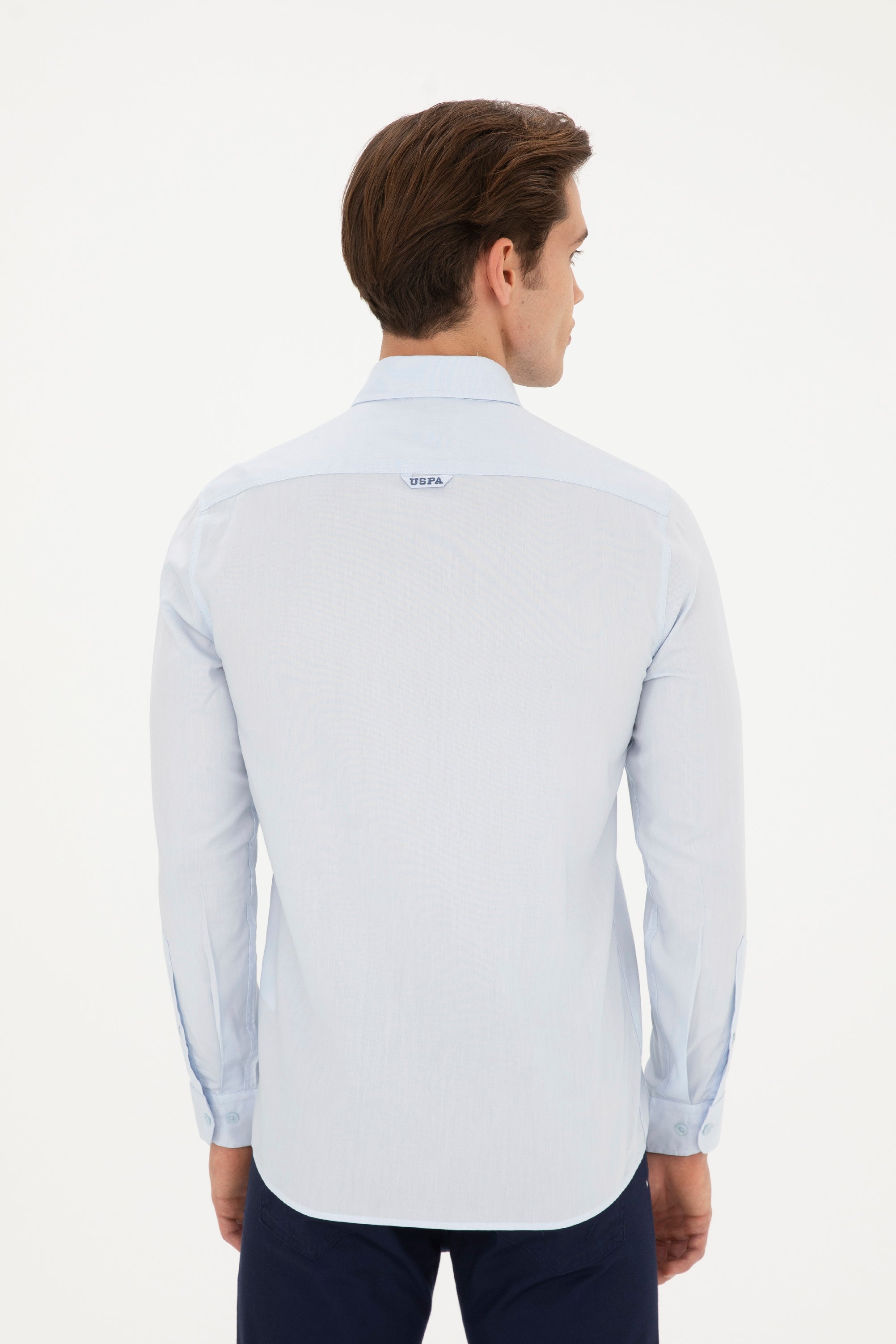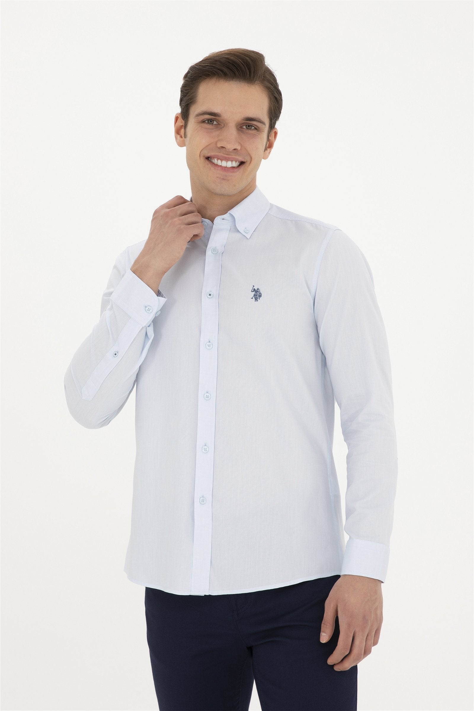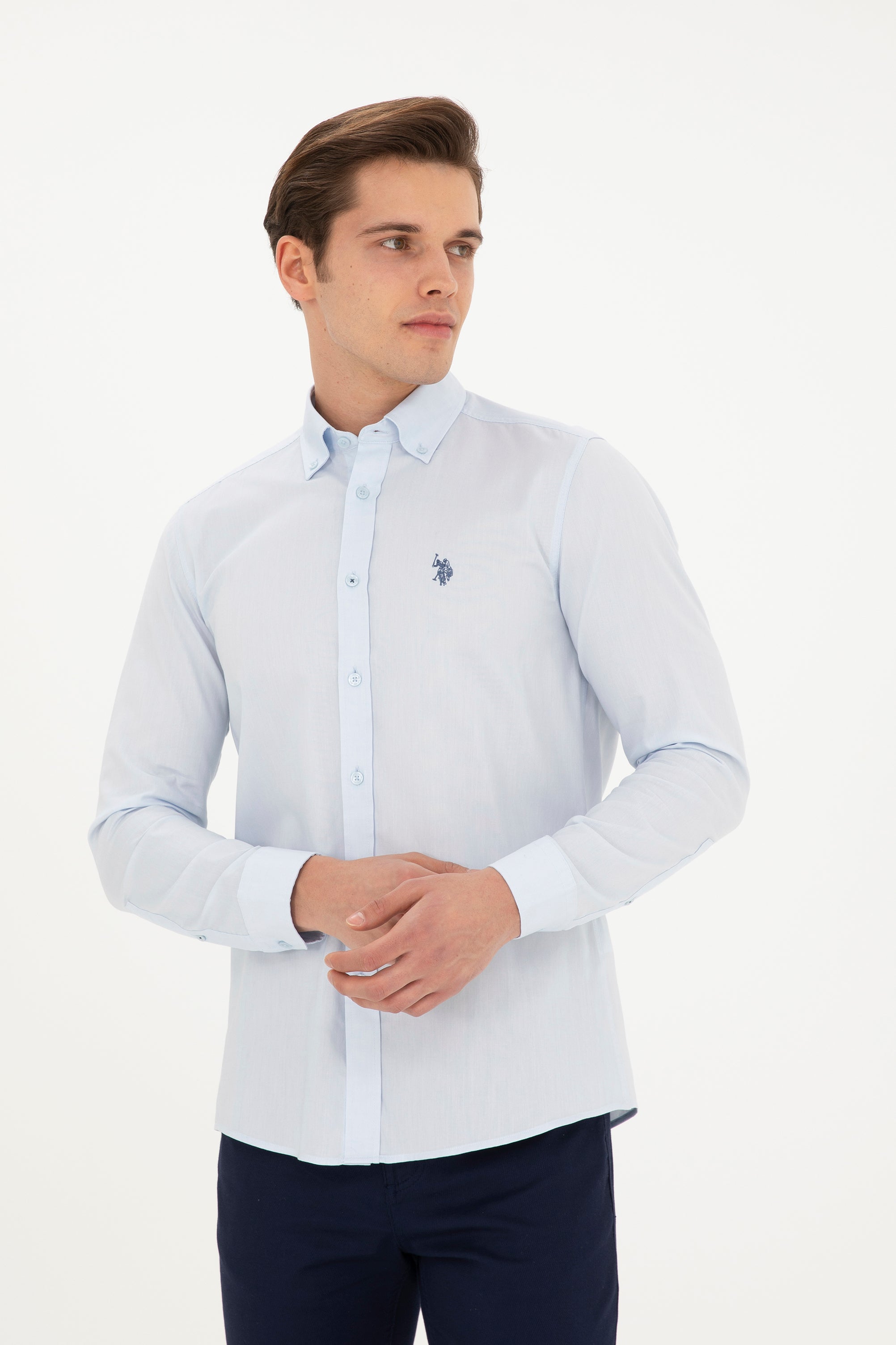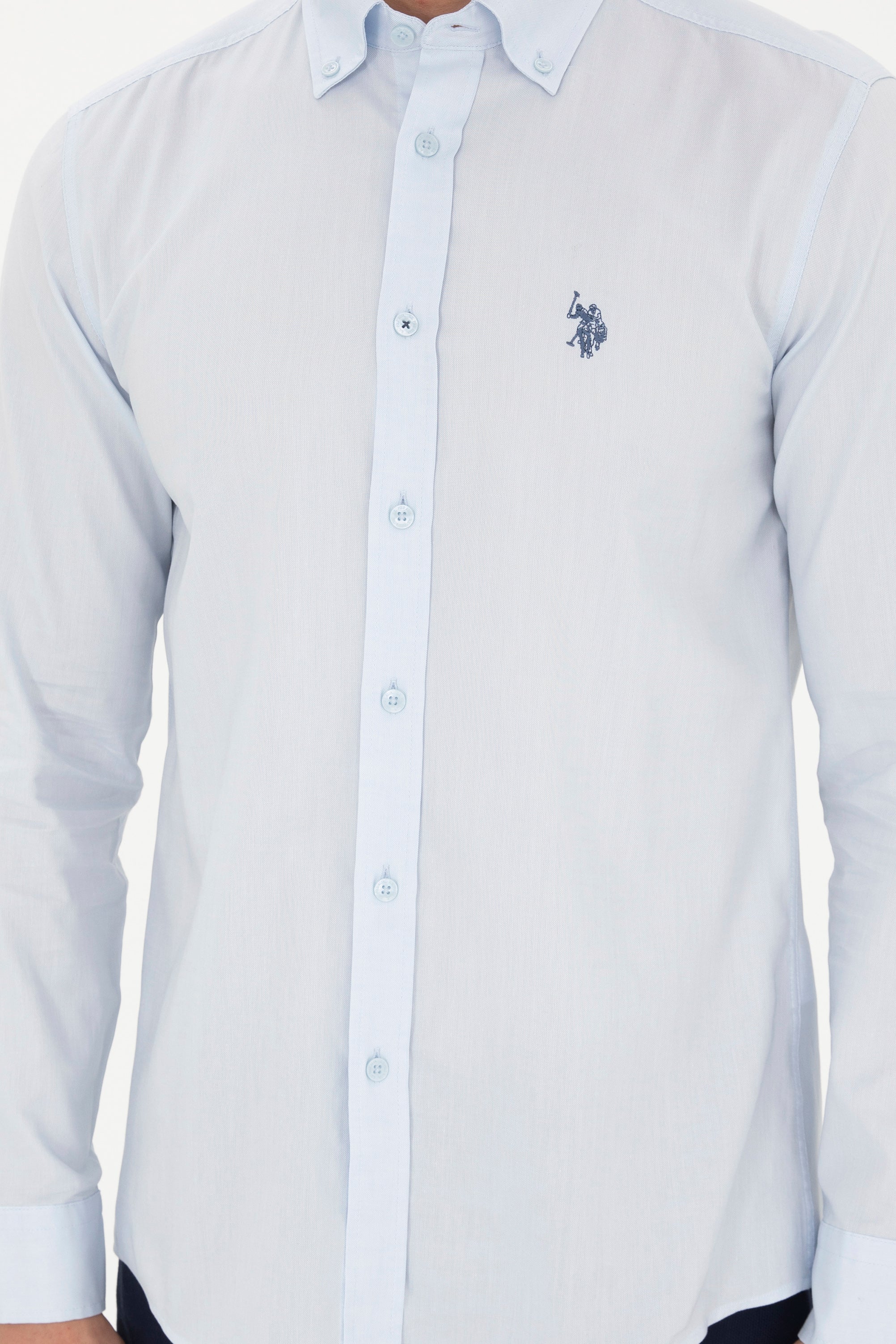 Elegantna košulja u svijetloj nijansi plave boje donosi sofisticiranost i svježinu svakodnevnim kombinacijama. Karakteriše je kvalitetan pamuk koji osigurava udobnost i prozračnost tokom cijelog dana. Ova košulja posjeduje klasičan kroj s dugim rukavima i dugmadi na prednjem dijelu, što joj daje formalan, ali i ležeran izgled. Diskretan logo na grudima dodaje poseban pečat, ističući brend bez pretjerivanja. Ova košulja je idealna za poslovne sastanke ili posebne prilike, a može se kombinovati s pantalonama ili trapericama, čineći je svestranom dozom stila u garderobi.