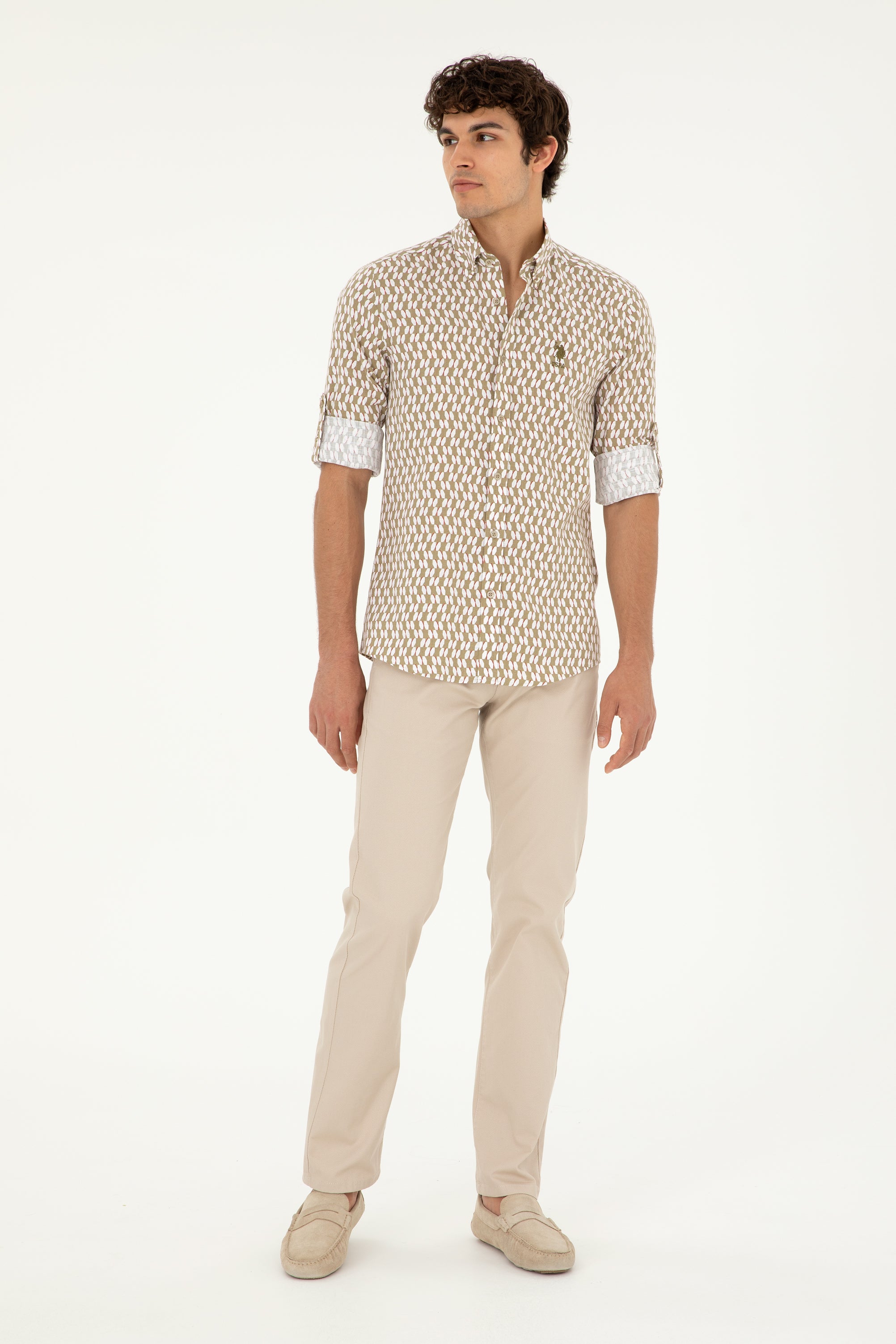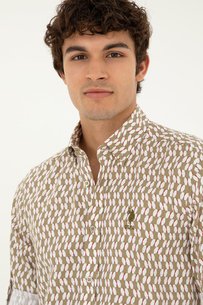 Ova košulja u modernoj kombinaciji boja donosi svježinu i stil u svaku kombinaciju. Karakteriše je lagani materijal koji omogućava udobno nošenje tokom cijelog dana, a uz to pruža i dobru prozračnost. Na prednjem dijelu se nalazi diskretan, ali efektan uzorak, koji dodaje posebno vizuelno interesovanje. Ova košulja je savršen izbor za casual ili polu-formalne prilike, a lako se može kombinovati sa farmerkama, chinos hlačama ili čak sakoima za dodatnu eleganciju.