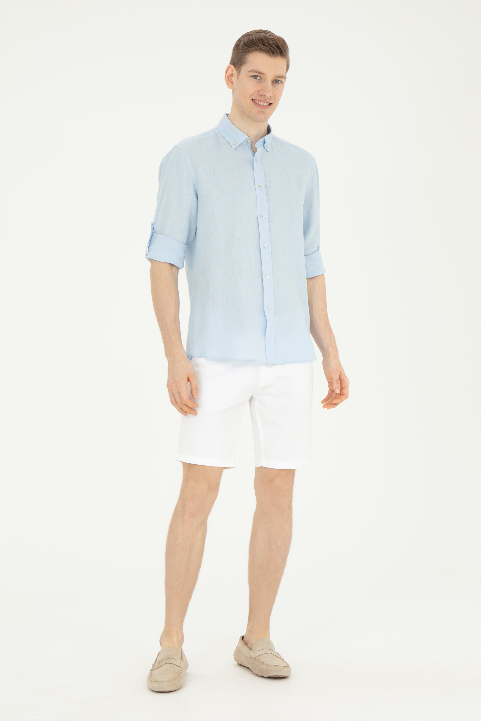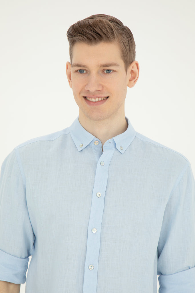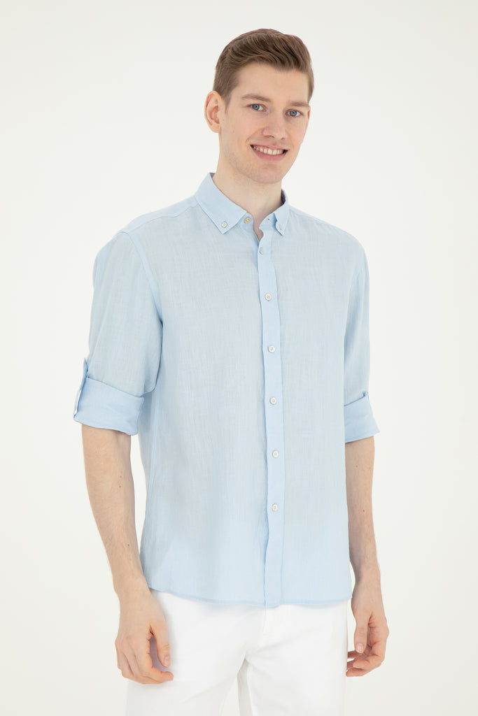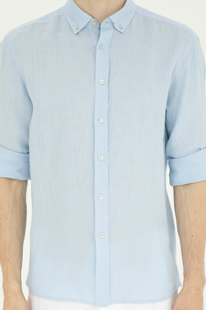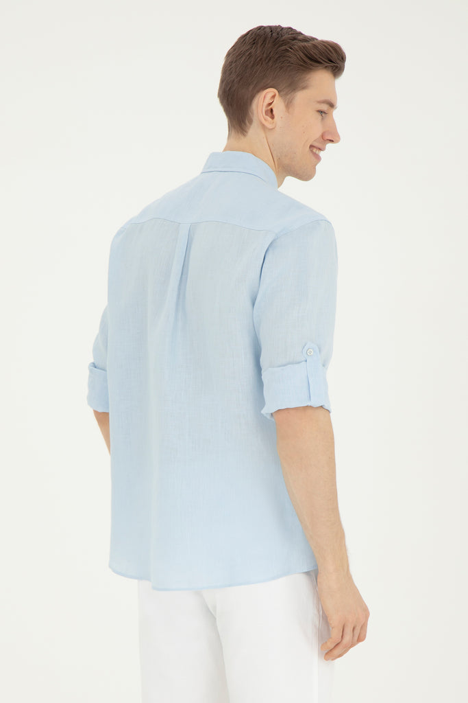 Elegantna košulja u svijetloj plavoj boji savršena je za svaku priliku, pružajući udobnost i stil. Osmišljena je od laganog materijala koji osigurava prozračnost tokom toplih dana. Karakterišu je klasični detalji poput dugmadi i manžetni koje se mogu podešavati, što omogućava prilagodljivost i savršeno pristajanje. Ova košulja je idealan izbor za poslovne sastanke ili opuštene izlaze, a lako se kombinuje s pantalonama, šortsevima ili trapericama, pružajući eleganciju i sofisticiranost svakom outfitu.