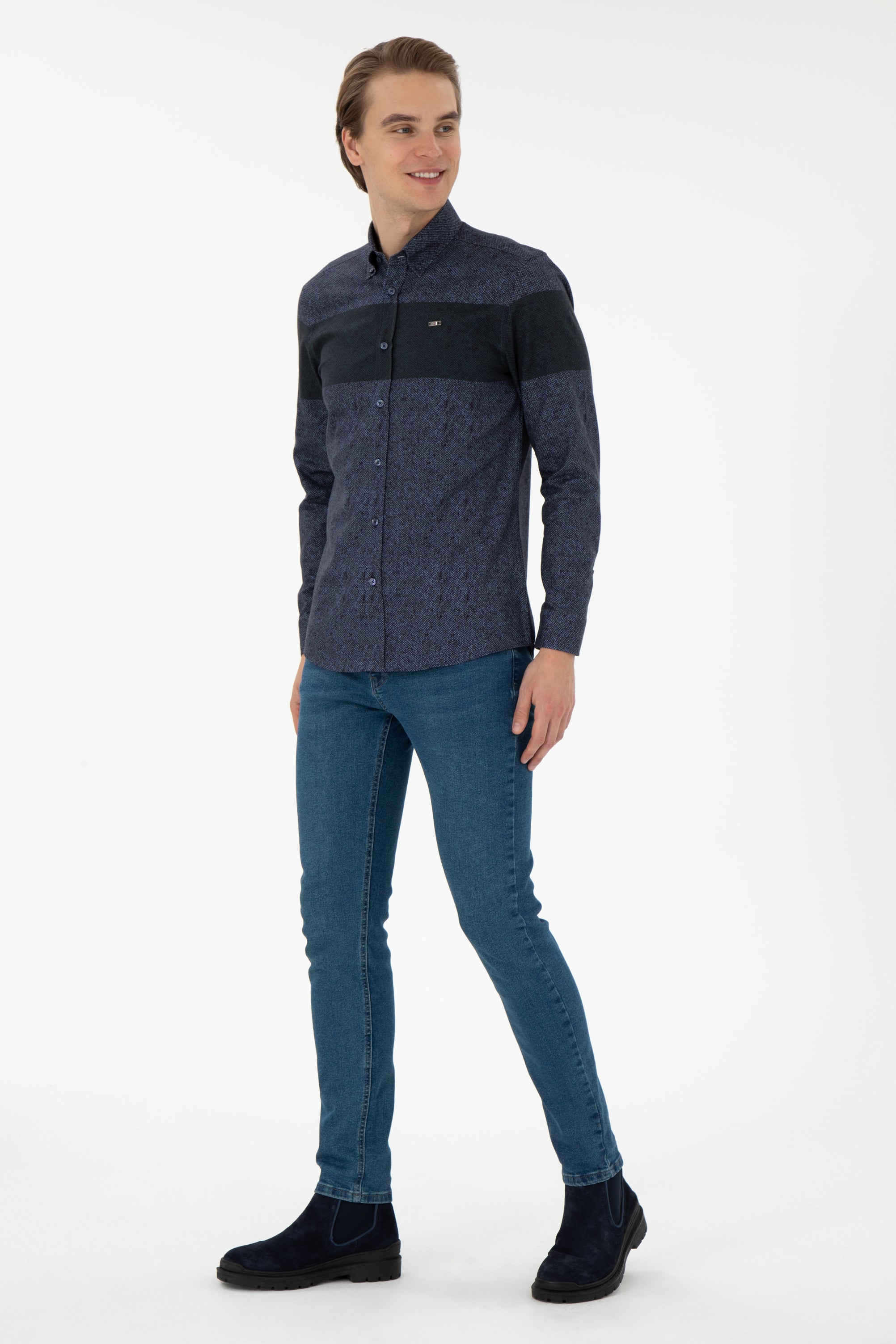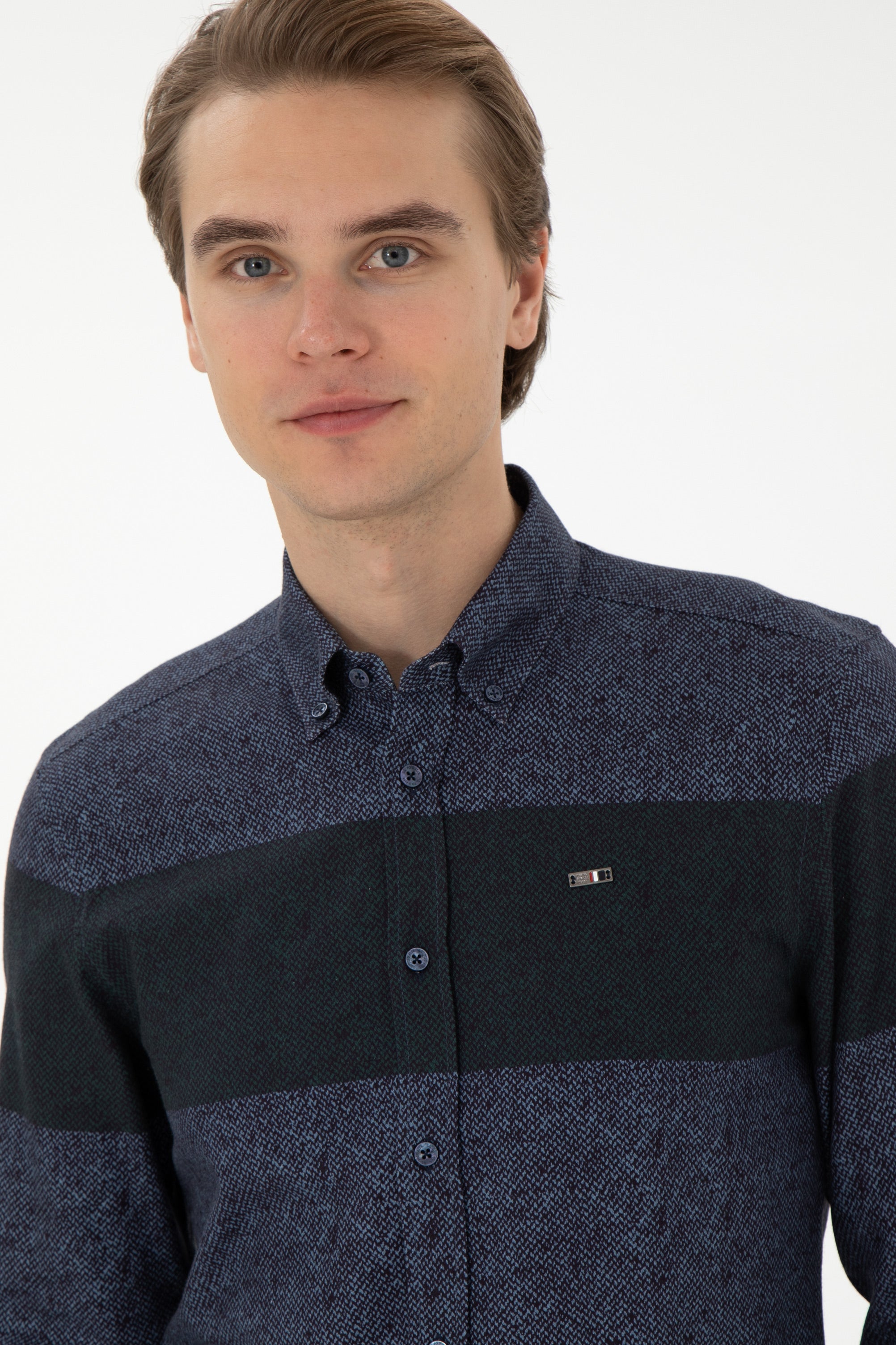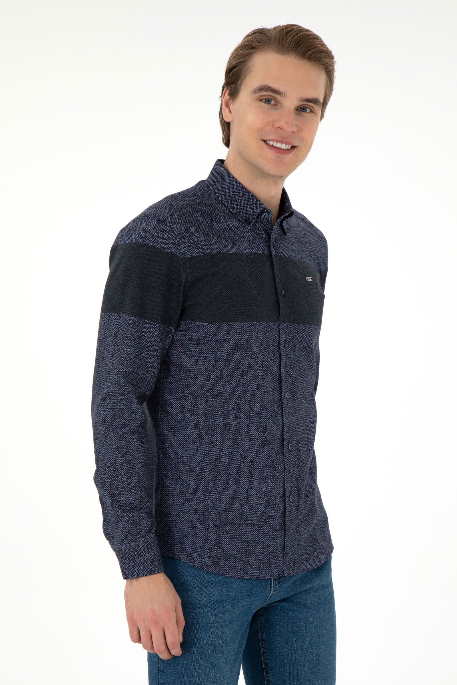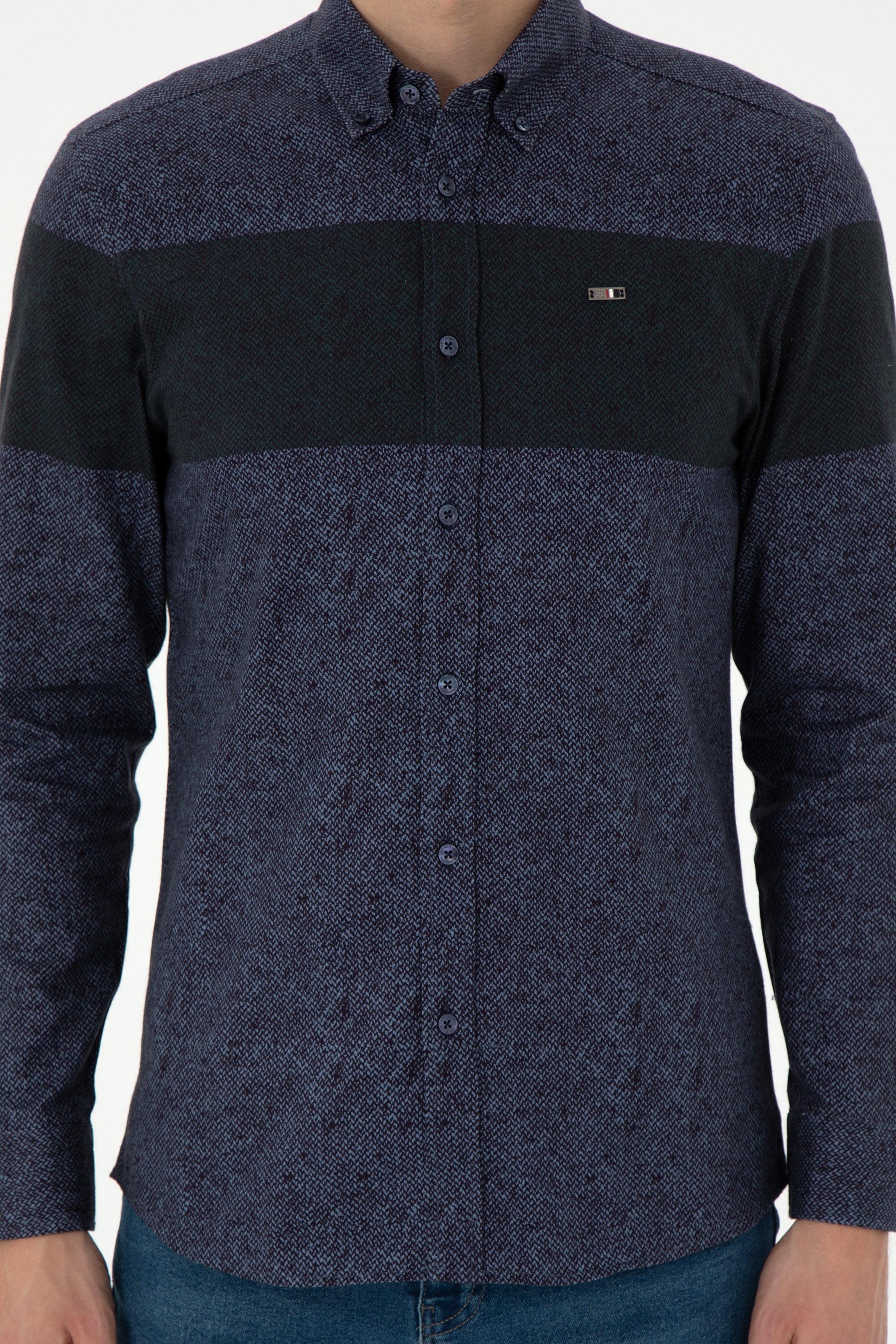 Šarmantna košulja u tamnoplavoj boji s uzorkom nudi savršen spoj udobnosti i stila. Karakteriše je kvalitetan materijal koji garantuje prijatno nošenje tokom cijelog dana. Na prednjem dijelu se nalazi klasično dugme koje dodaje dašak sofisticiranosti. Ova košulja je odličan izbor za razne prilike, bilo da se radi o poslovnom sastanku ili opuštenom izlasku s prijateljima, a lako se može kombinovati sa farmerkama, pantalonama ili čak ispod sakoa.