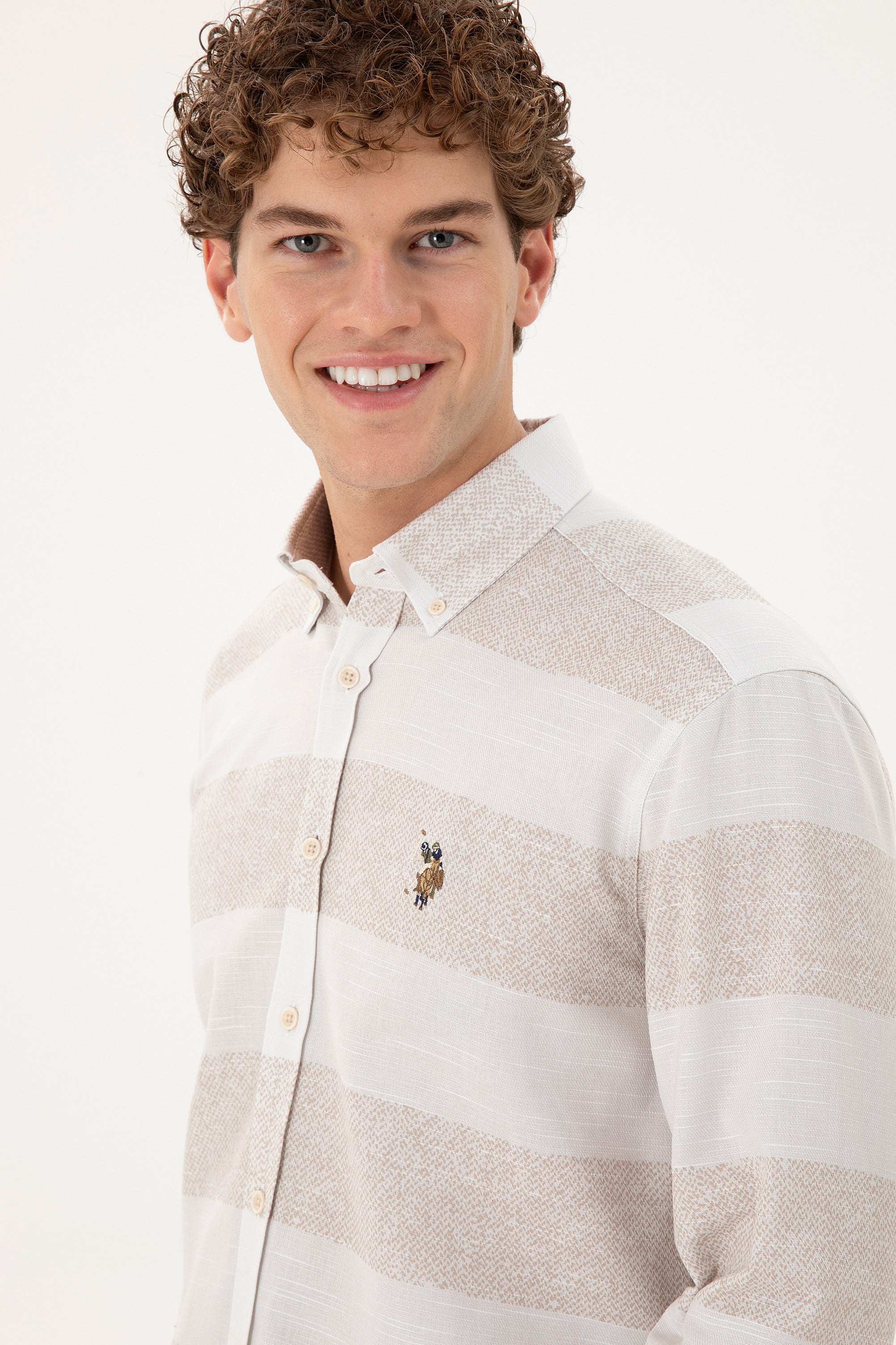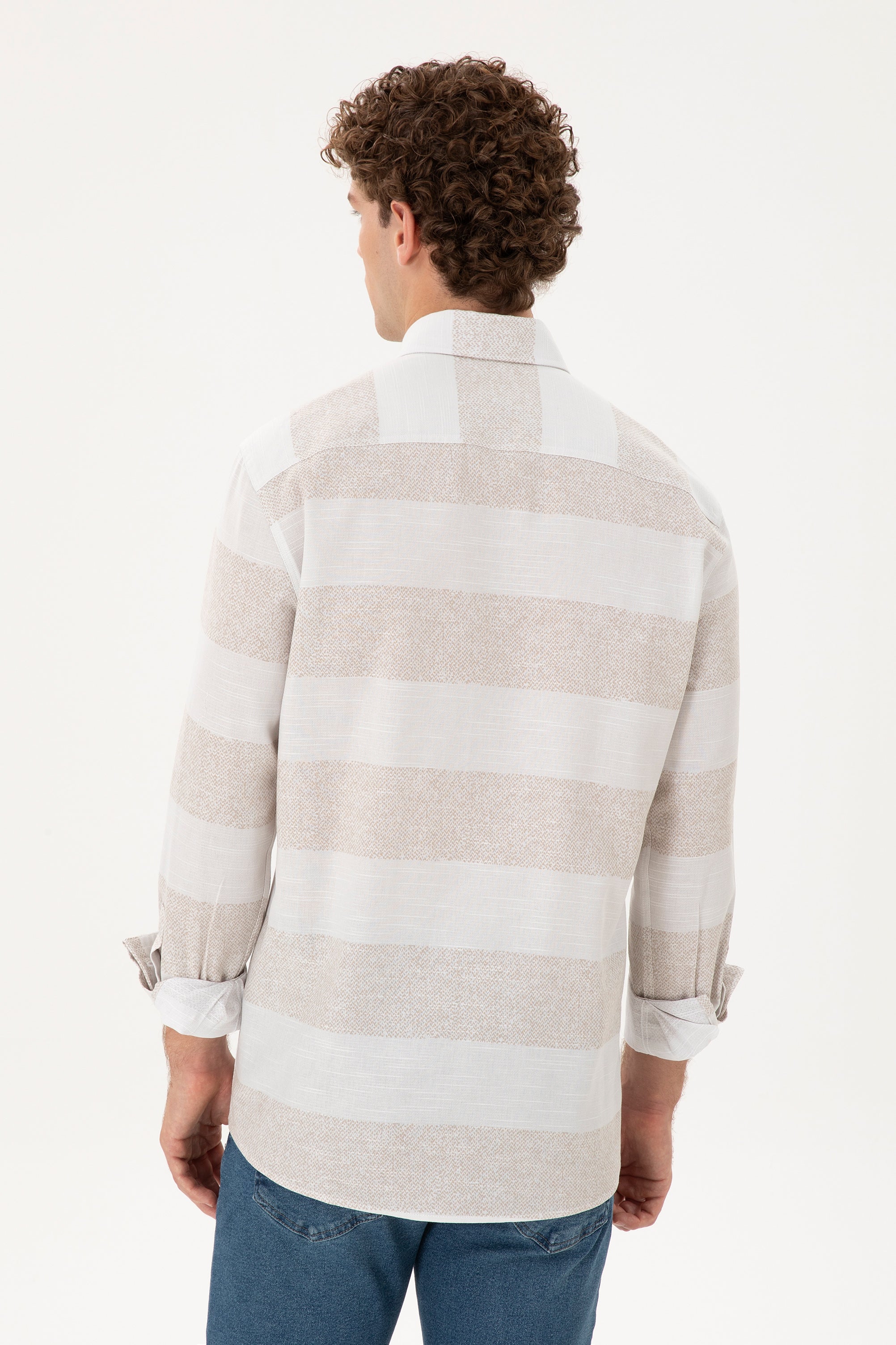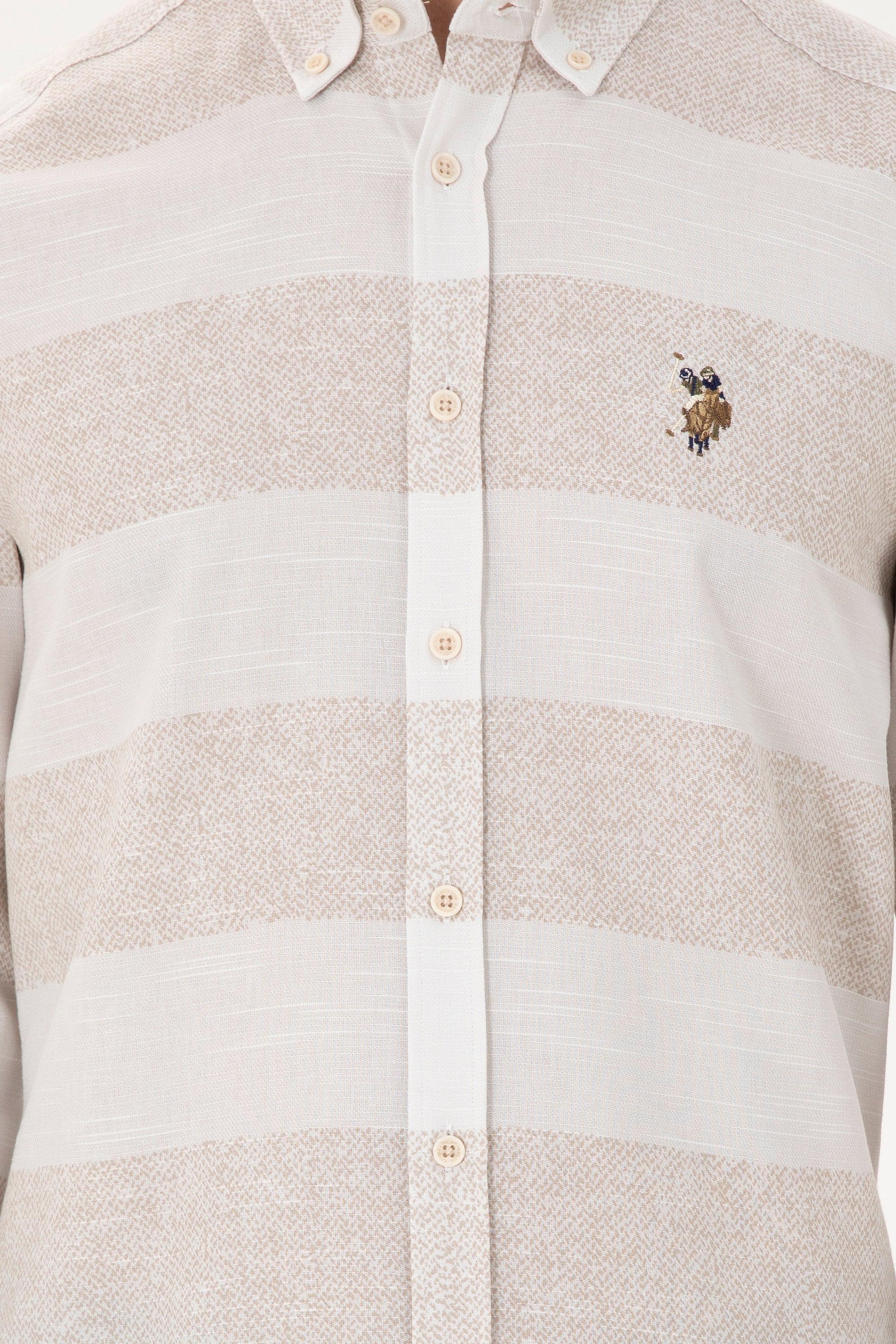Elegantna košulja sa suptilnim horizontalnim prugama u svijetlijim tonovima pruža svježinu i stil za svaku priliku. Karakteriše je lagani materijal koji osigurava udobnost tokom cijelog dana i savršeno pristajanje. Na prednjem dijelu košulje nalazi se diskretan detalj koji dodaje dašak sofisticiranosti. Ova košulja je idealan izbor za poslovne sastanke, večere ili opuštene izlaske, a može se kombinovati sa različitim komadima odjeće poput hlača, traperica ili pantalona.
