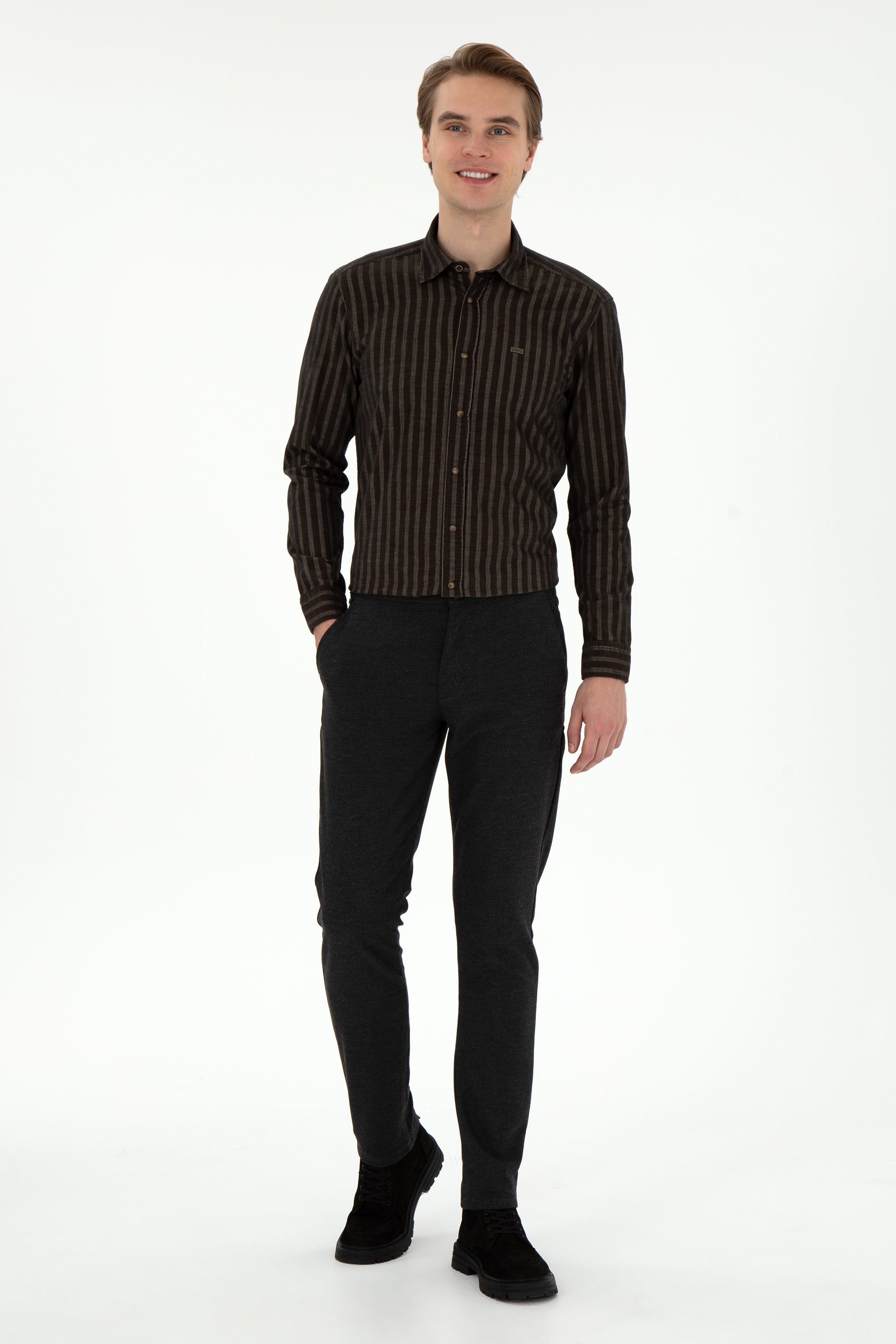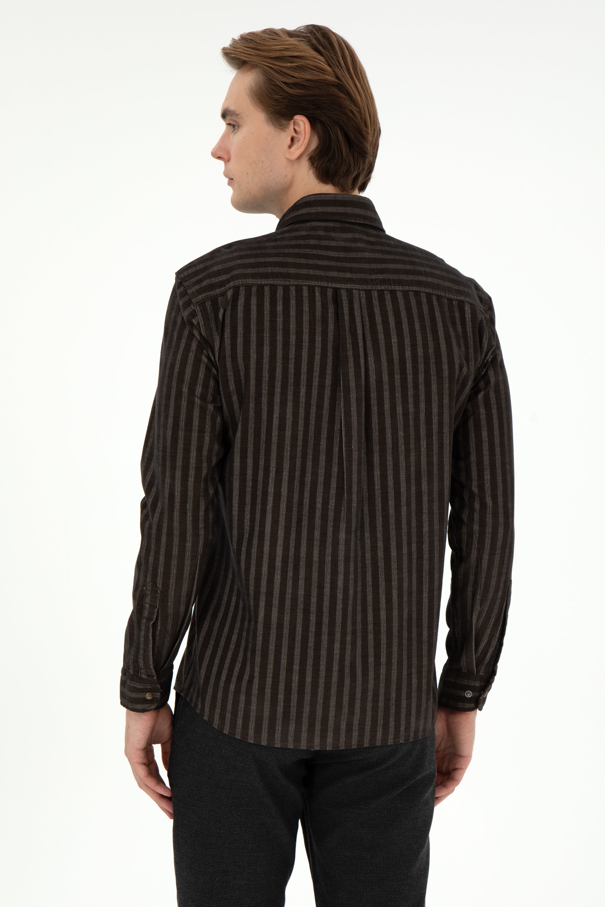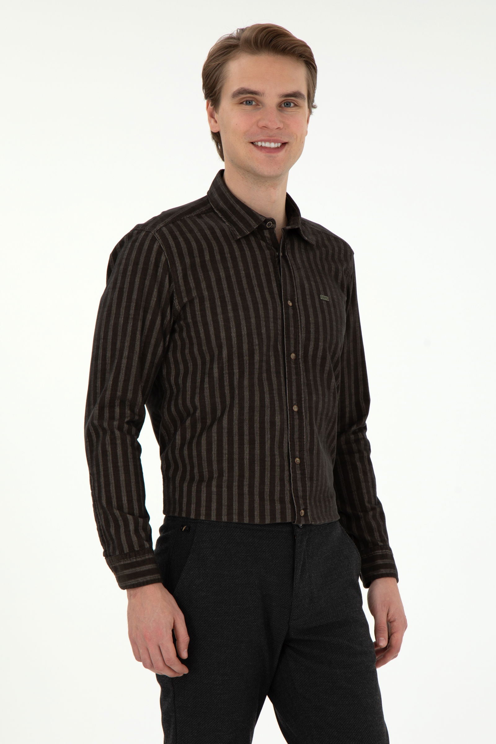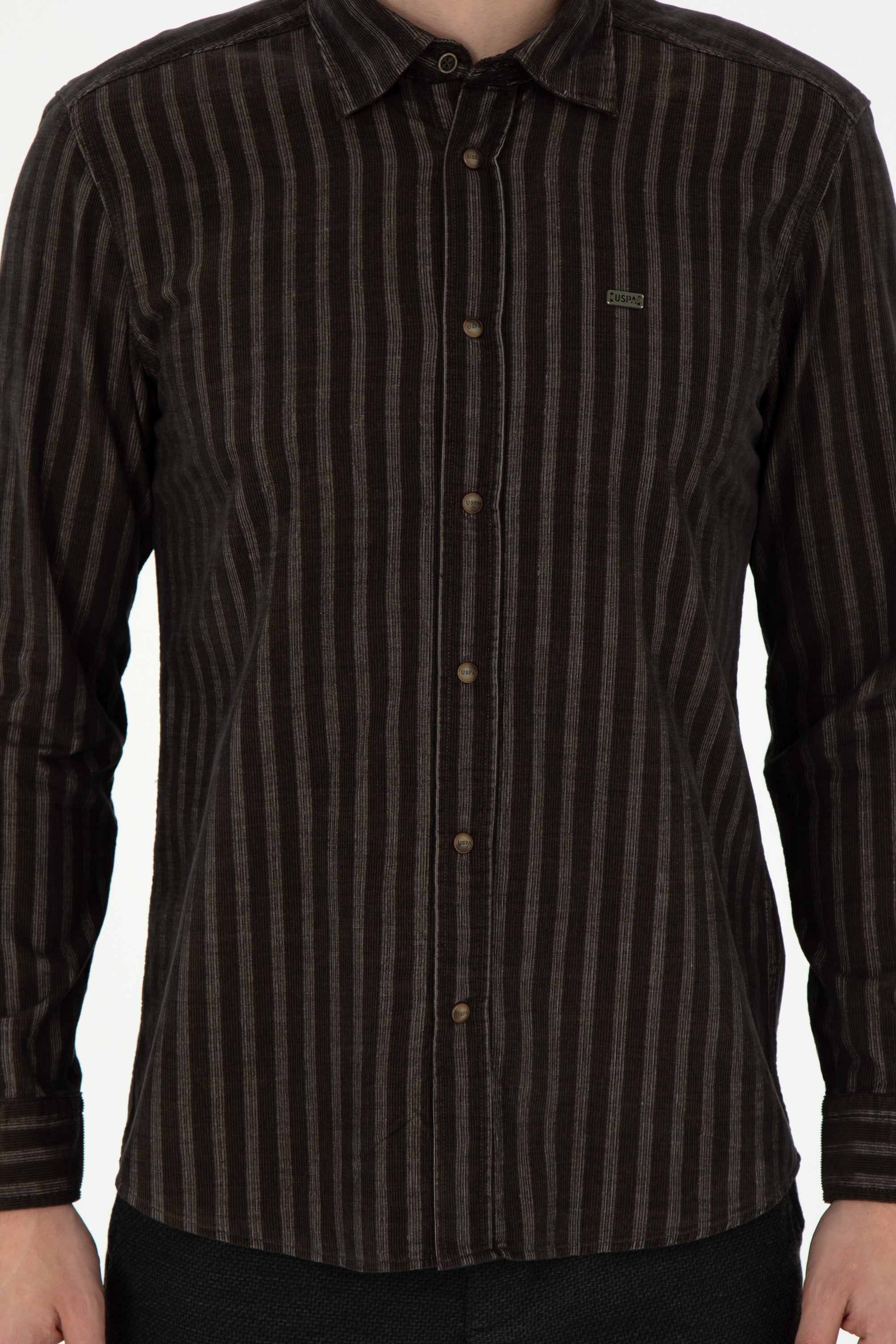 Elegantna košulja sa finim prugastim uzorkom u tamnozelenoj i smešanoj boji idealna je za različite prilike. Karakteriše je mekani pamuk koji pruža udobnost tokom cijelog dana i omogućava koži da diše. Dugmići na prednjem dijelu dodaju dozu sofisticiranosti, dok klasičan kroj osigurava moderno pristajanje. Ova košulja savršeno se uklapa u poslovne kombinacije, ali je i odličan izbor za ležerne izlaske, a lako se može kombinovati sa pantalonama ili farmerkama.