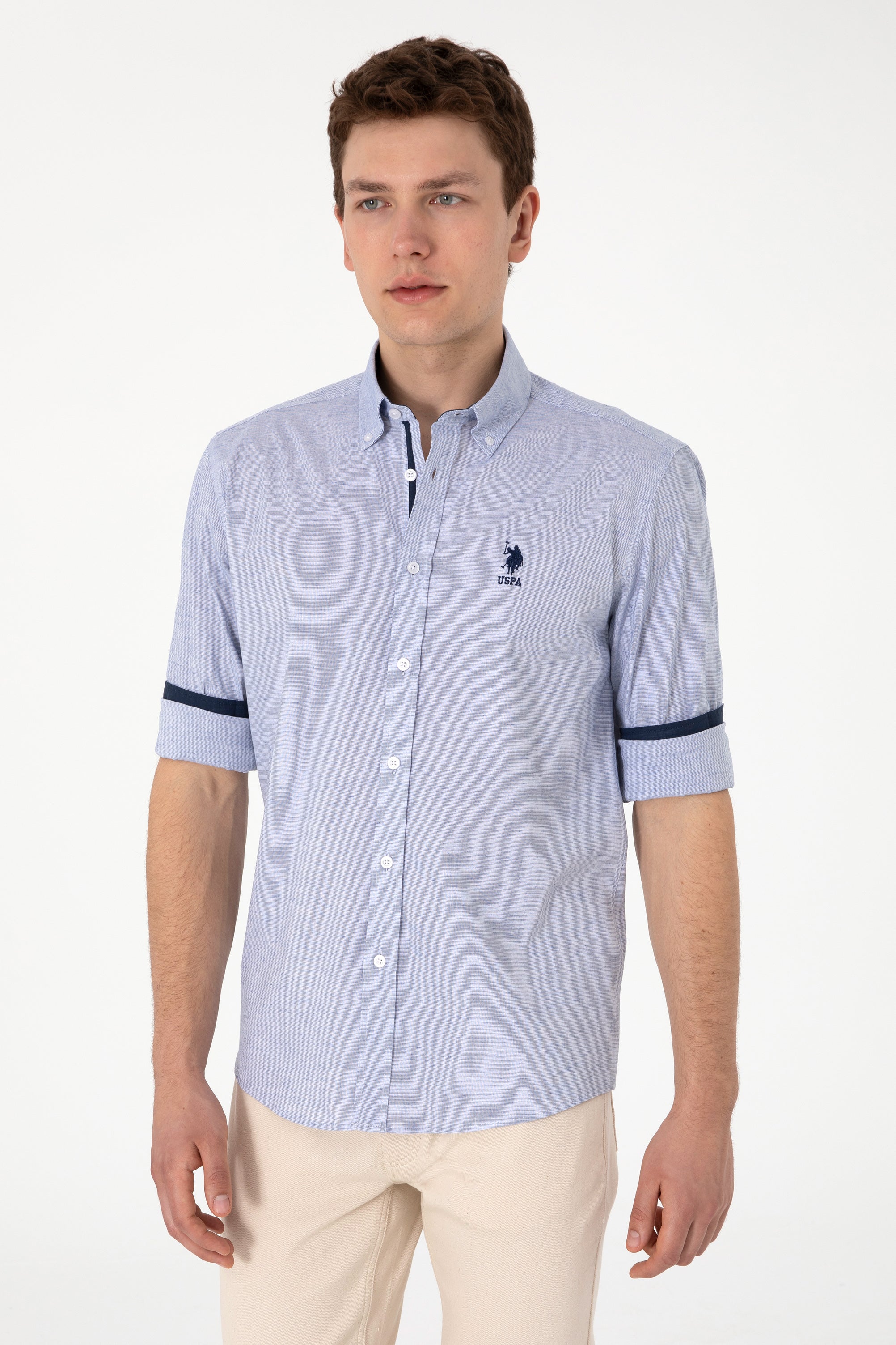 Muška Svijetlo Plava Košulja Dugih Rukava