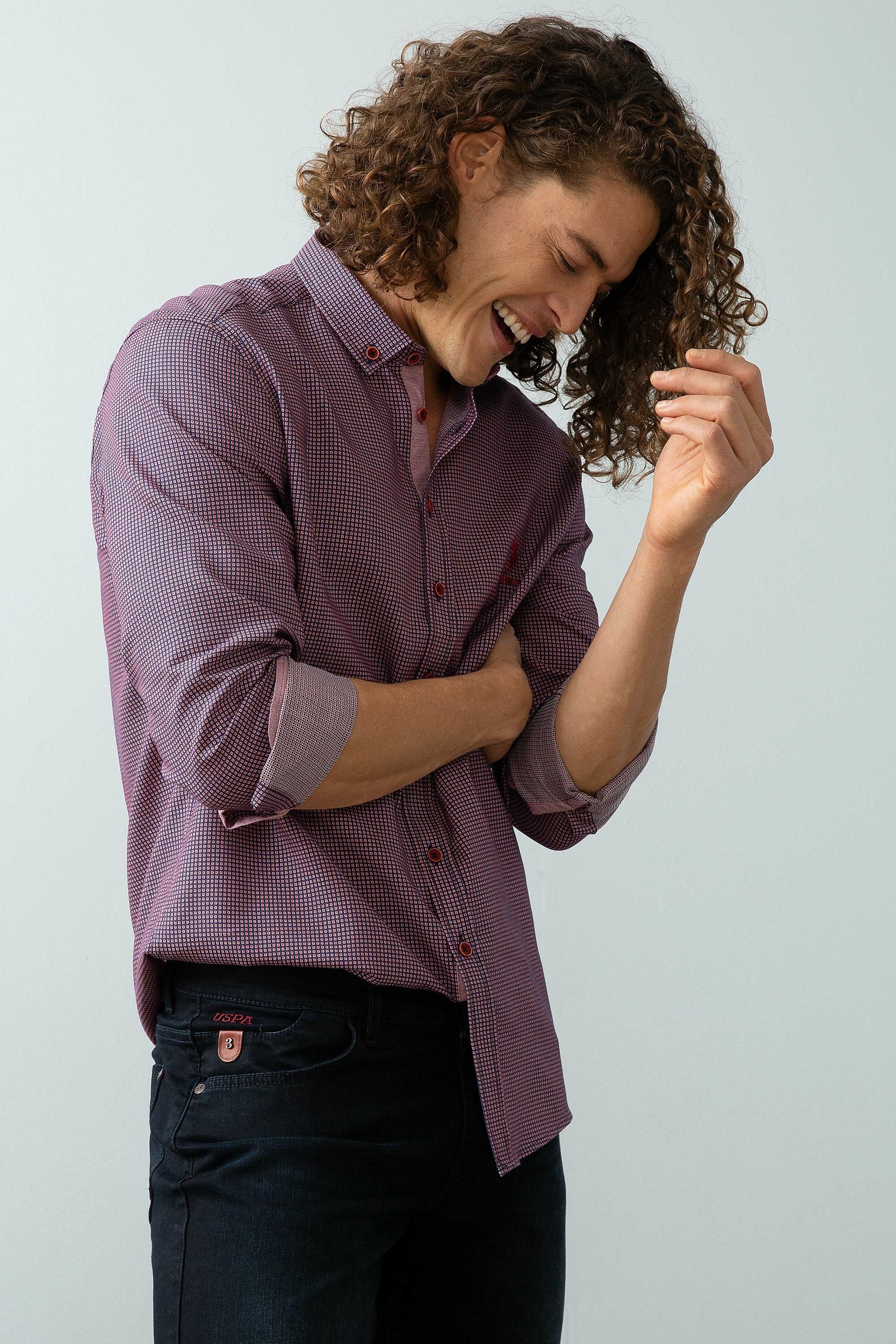 Elegantna košulja u tamno crvenoj boji s finim karo uzorkom pruža modernu i sofisticiranu notu svakodnevnom izgledu. Karakteriše je lagani i udobni pamuk koji omogućava prozračnost i udobnost tokom cijelog dana. Na prednjem dijelu košulje nalazi se klasični ovratnik i dugmad koja doprinose njenom stilskom izgledu, a manžetne su također prilagodljive za dodatnu udobnost. Ova košulja je savršena za različite prilike, od poslovnih sastanaka do neformalnih izlazaka, i lako se može kombinovati s farmerkama ili hlačama, stvarajući savršen look za modernog muškarca.