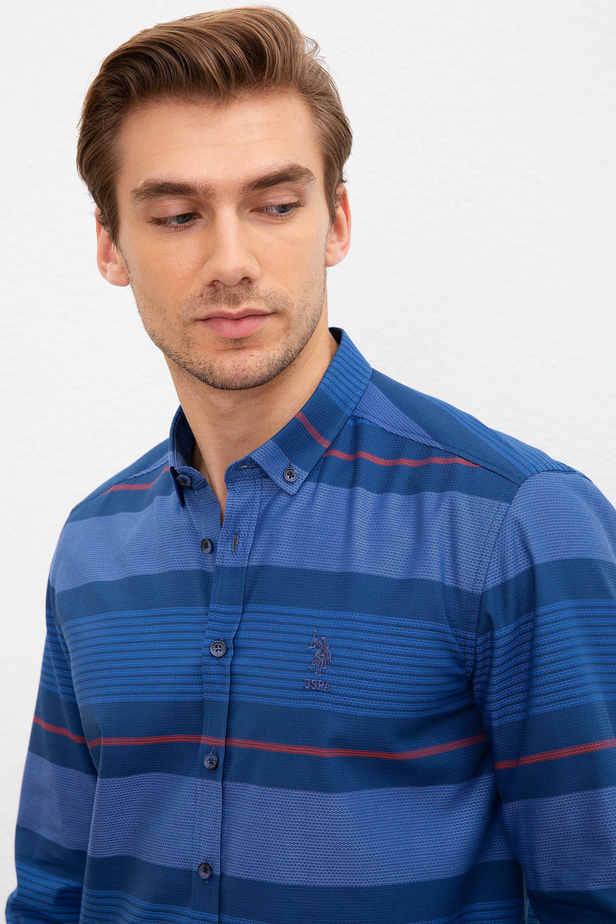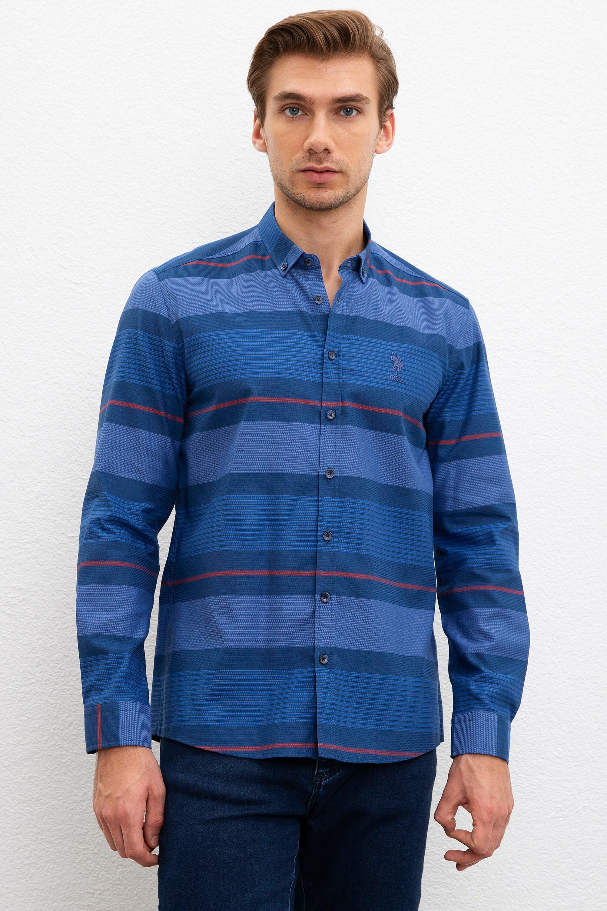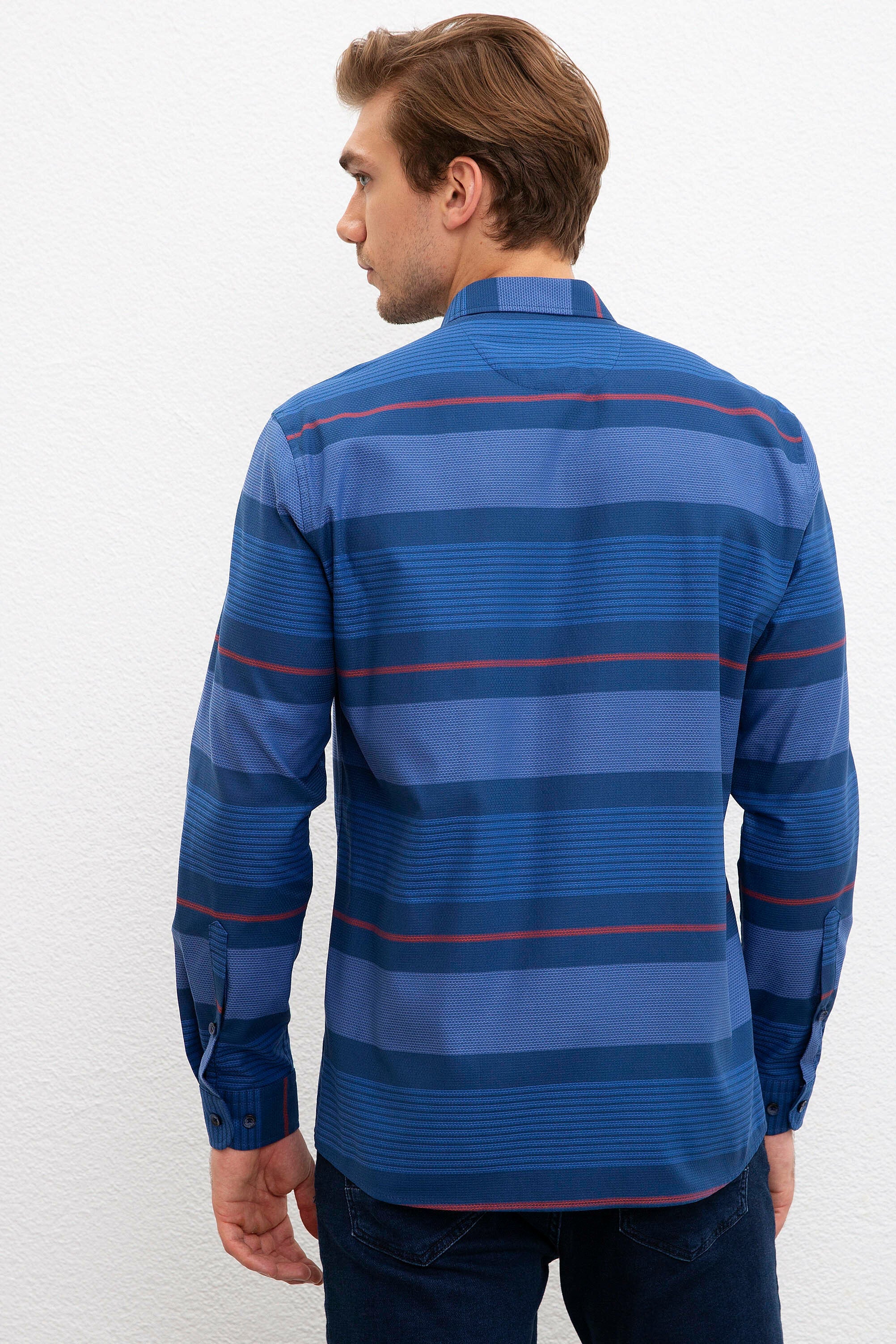 Ova košulja u elegantnoj plavoj nijansi sa uzorkom horizontalnih pruga daje moderan izgled, idealna je za svakodnevne i formalne prilike. Karakteriše je lagana i prozračna tkanina koja osigurava udobnost tokom cijelog dana. Klasičan ovratnik i dugmad na prednjem dijelu pružaju sofisticiranost dok se istovremeno može lako kombinovati sa različitim odjevnim predmetima. Savršena je za nošenje uz pantalone ili traperice, čineći je svestranom opcijom za razne stilove i prilike.