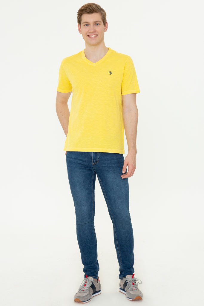 Ova moderna majica u svijetloj žutoj boji donosi dašak svježine i radosti u svaku garderobu. Karakteriše je udoban i lagan materijal koji omogućava prozračnost tokom toplih dana. Oštri V-izrez dodatno naglašava stil, dok diskretna vezena aplikacija na prednjem dijelu daje poseban pečat. Ova majica je savršen izbor za ležerne prilike, bilo da se radi o izlasku s prijateljima ili opuštanju kod kuće, a lako se kombinuje sa farmerkama, kratkim hlačama ili sportskim trenirkama.