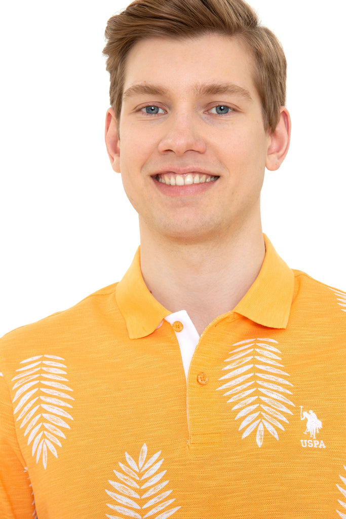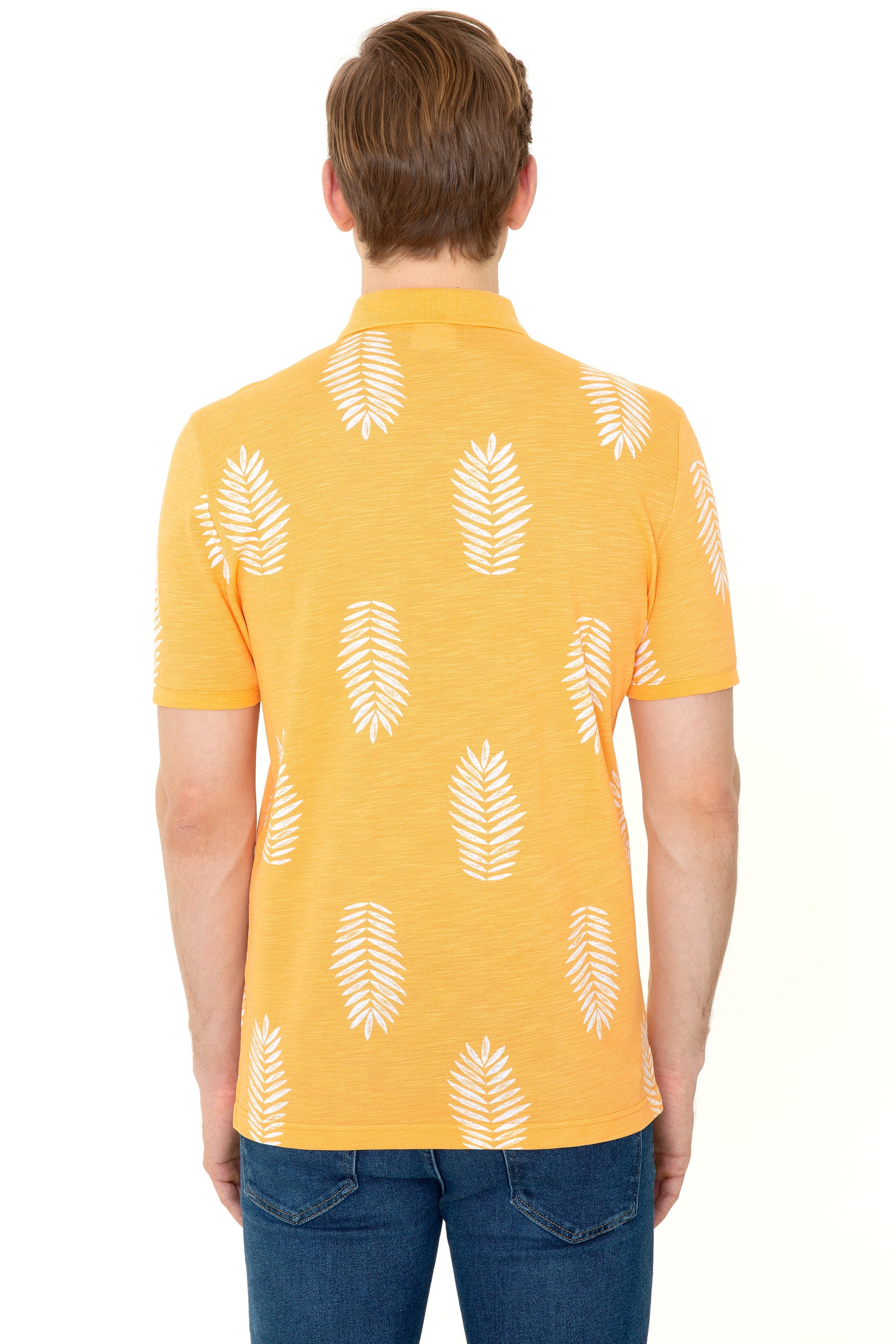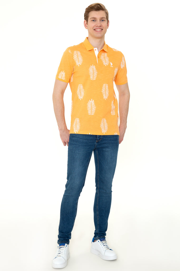 Šarmantna polo majica u vibrantnoj narandžastoj boji donosi energiju i vedrinu u vaš ormar. Karakteriše je lagana i prozračna tkanina koja omogućava udobnost tokom cijelog dana. Na njenoj površini nalaze se atraktivni uzorci listova koji dodaju modernu notu. Ova majica je savršen izbor za ljetne izlaske ili opuštene vikende, a lako se može kombinovati sa farmerkama, kratkim hlačama ili chinos hlačama, čime će svaki stajling dobiti svježinu i stil.