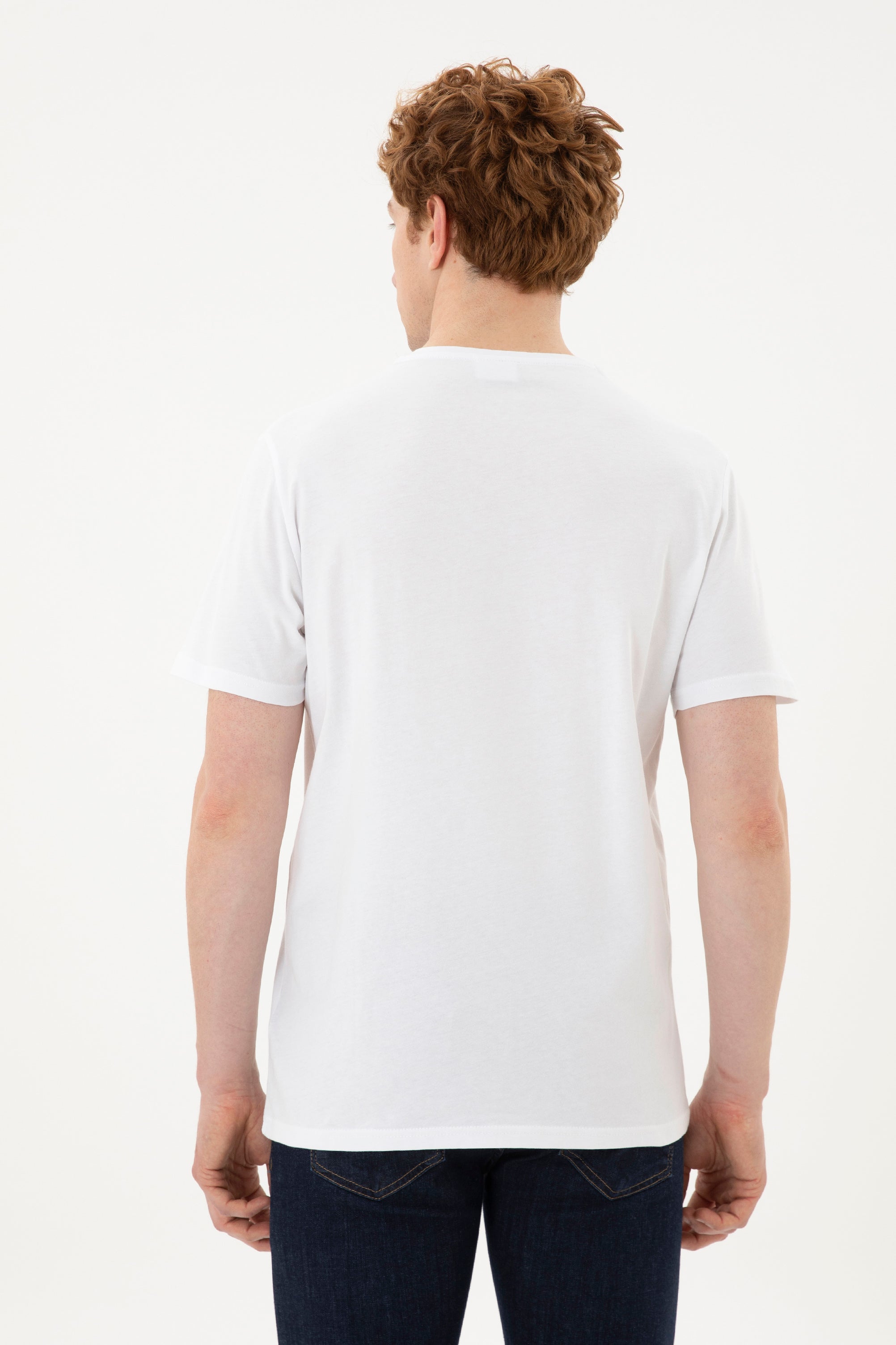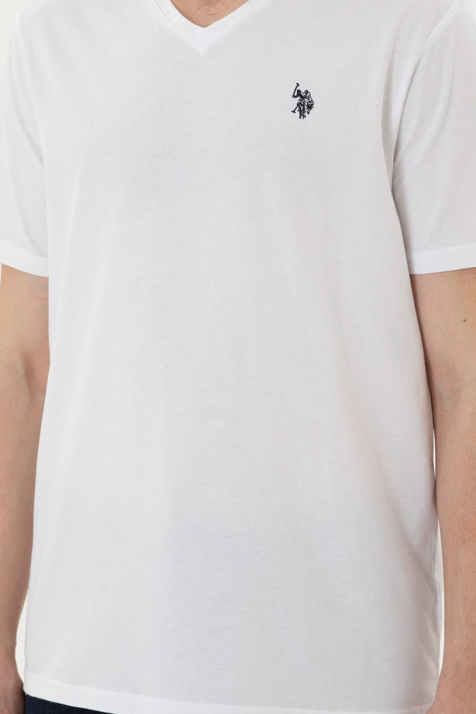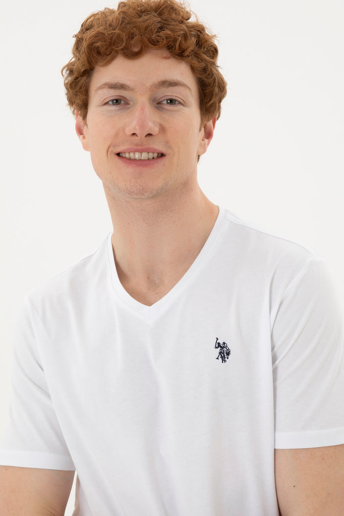 Elegantna majica u klasičnoj bijeloj boji pruža udobnost i svestranost za svakodnevno nošenje. Karakteriše je savršeno oblikovani V-izrez koji dodaje dašak modernog stila i omogućava prozračnost tokom toplih dana. Na prednjem dijelu majice nalazi se suptilan logotip koji doprinosi njenom sofisticiranom izgledu. Ova majica je idealan izbor za ležerne prilike, bilo da se radi o izlasku s prijateljima ili opuštenoj šetnji, a može se lako kombinovati sa farmerkama, šortsevima ili sportskim joggerima.