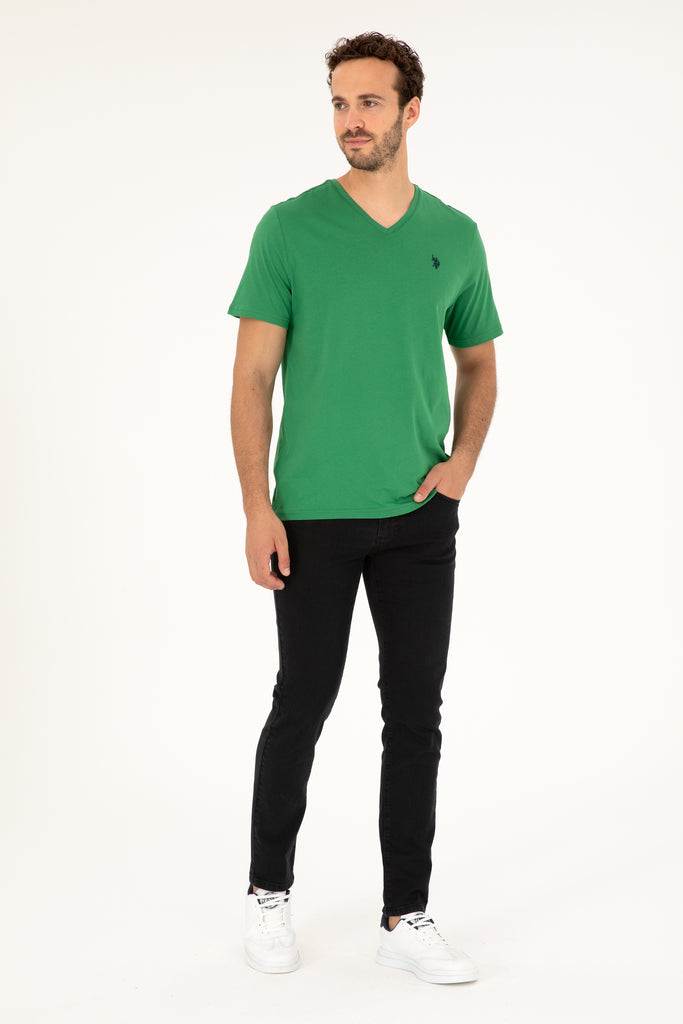 Ova stylish majica u svijetloj zelenoj boji osigurava udobnost i moderni izgled tijekom cijelog dana. Izrađena je od mekane i prozračne tkanine koja pruža savršenu prozračnost i lakoću nošenja. Klasični V-izrez dodaje notu sofisticiranosti, dok diskretni logo na prednjem dijelu ukazuje na kvalitetu brenda. Ova majica je idealna za svakodnevne kombinacije, bilo da uživate u ležernom izlasku s prijateljima ili opuštenoj šetnji, a lako se može kombinovati s trapericama, šortsevima ili čak ispod jakne za hladnije dane.
