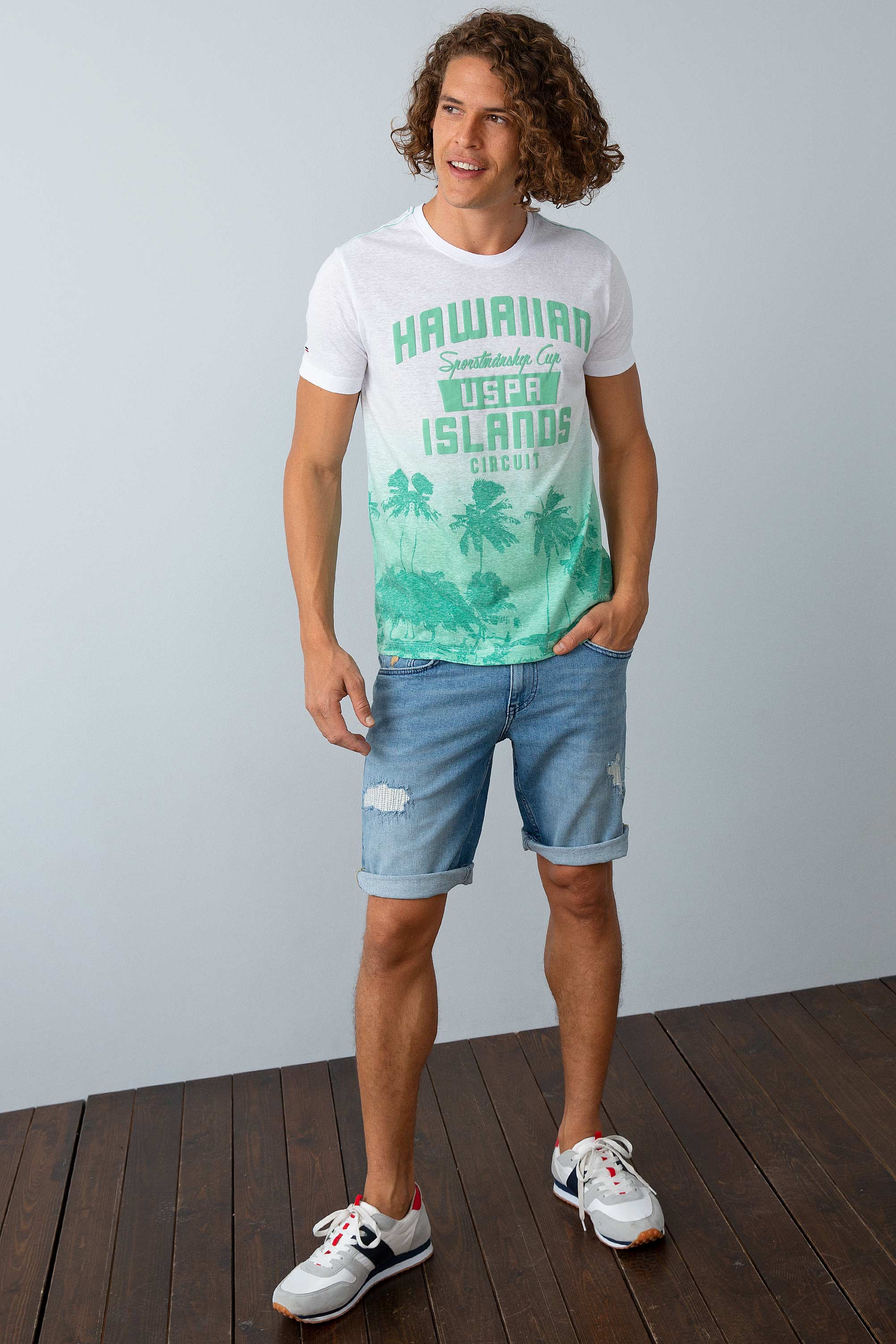 Ova majica u trendovskom bijelom i svijetlozelenom tonu donosi osvježavajući izgled tokom toplih dana. Karakteriše je lagani materijal koji osigurava udobnost i prozračnost, čineći je idealnom za ljetne aktivnosti. Na prednjem dijelu majice nalazi se upečatljiv natpis koji dodaje dozu karaktera i stila. Ova majica savršeno se uklapa uz vaše omiljene traperice ili kratke hlače, te je odličan izbor za neformalna okupljanja ili opuštene izlete.