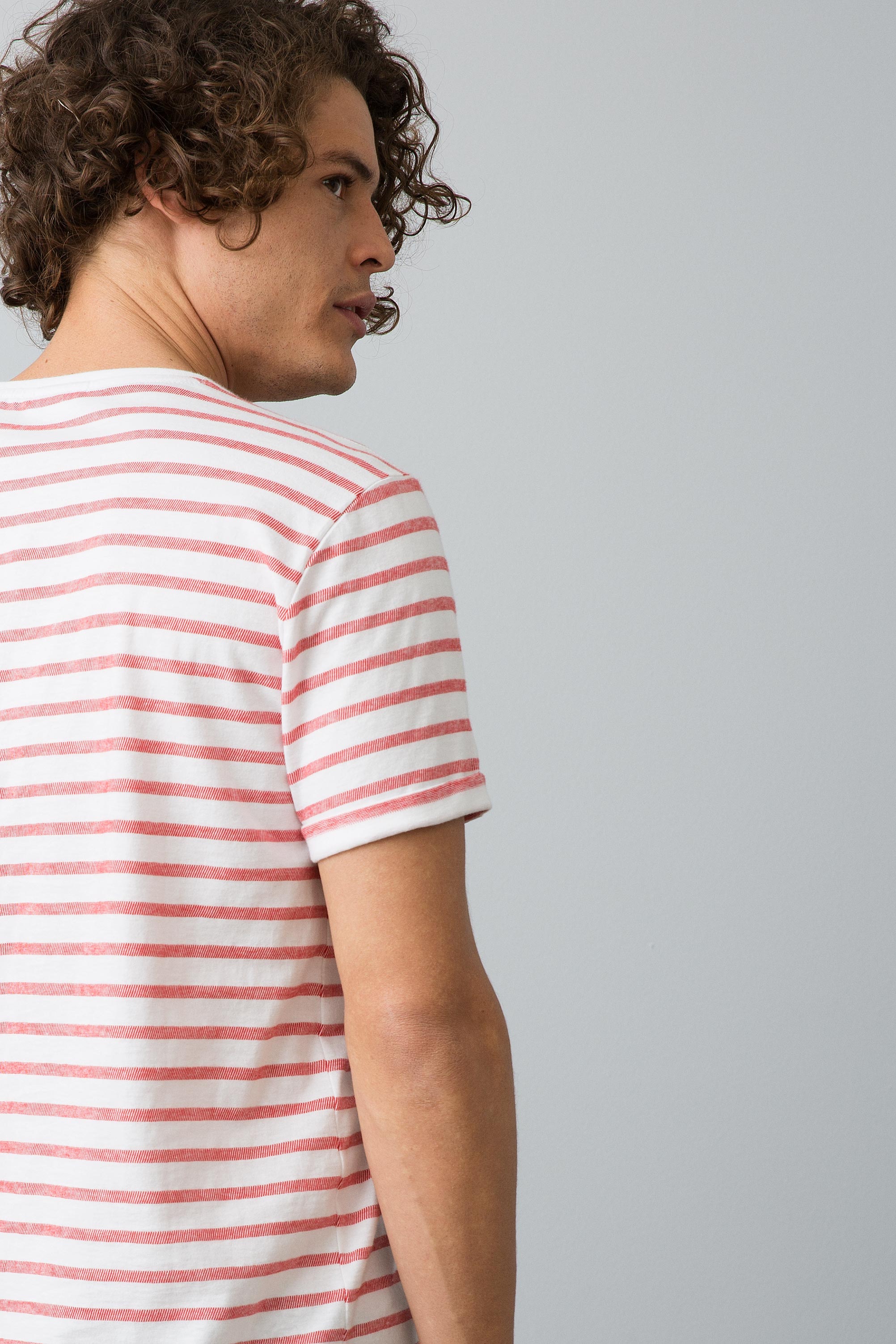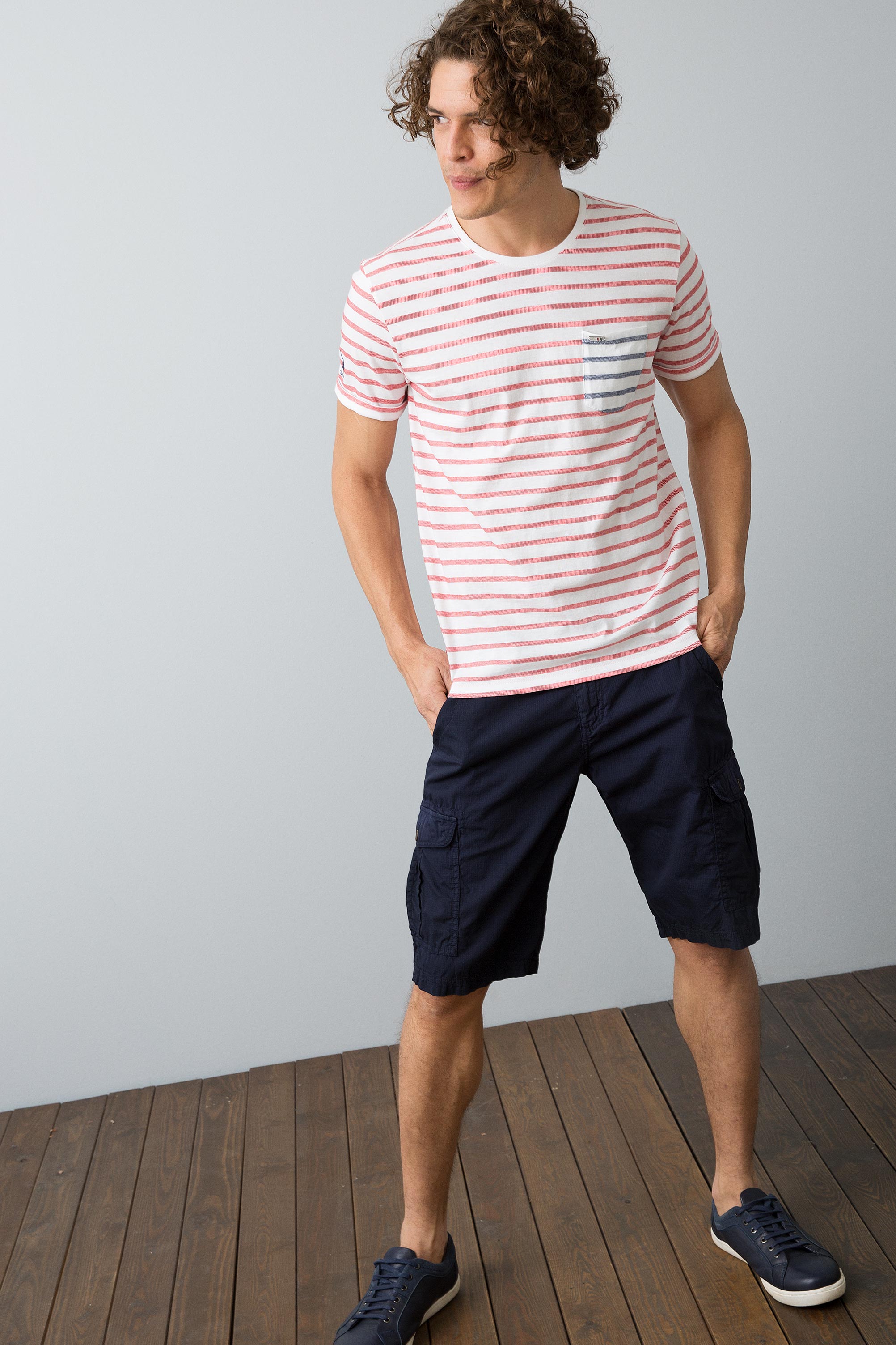 Majica sa klasičnim prugastim dezenom u nežnoj kombinaciji bijele i crvene boje donosi udobnost i stil za svakodnevne prilike. Karakteriše je lagani materijal koji omogućava prozračnost i ugodno nošenje tokom toplih dana. Na prednjem dijelu se nalazi mala džepna detalj koja dodaje praktičnost i modernu notu. Ova majica je idealan izbor za ležerne kombinacije, bilo da se radi o izlasku s prijateljima ili opuštenom vikendu, a lako se može kombinovati sa šortsevima, farmerkama ili sportskim hlačama.