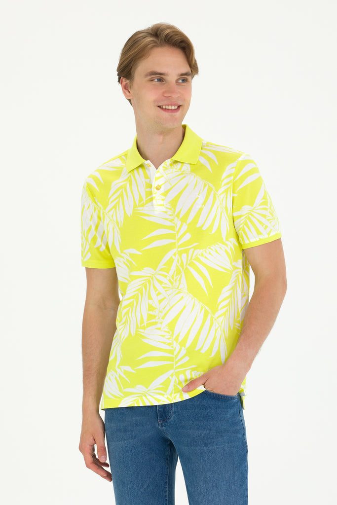 Ova moderna polo majica u vibrantnoj žutoj boji s upečatljivim uzorkom biljaka donosi dašak svježine i razigranosti svakodnevnim kombinacijama. Karakteriše je kvalitetan pamuk koji pruža izvanrednu udobnost i prozračnost tokom toplih dana. Klasičan ravi ovratnik i dugmad sprijeda dodaju sofisticiran izgled, dok kratki rukavi omogućavaju slobodu pokreta. Ova polo majica je idealan izbor za ležerne izlaske ili sportske aktivnosti, a lako se može kombinovati sa farmerkama, šortsevima ili čak laganim bermudama, čineći je savršenim dijelom svakodnevnog garderobera.