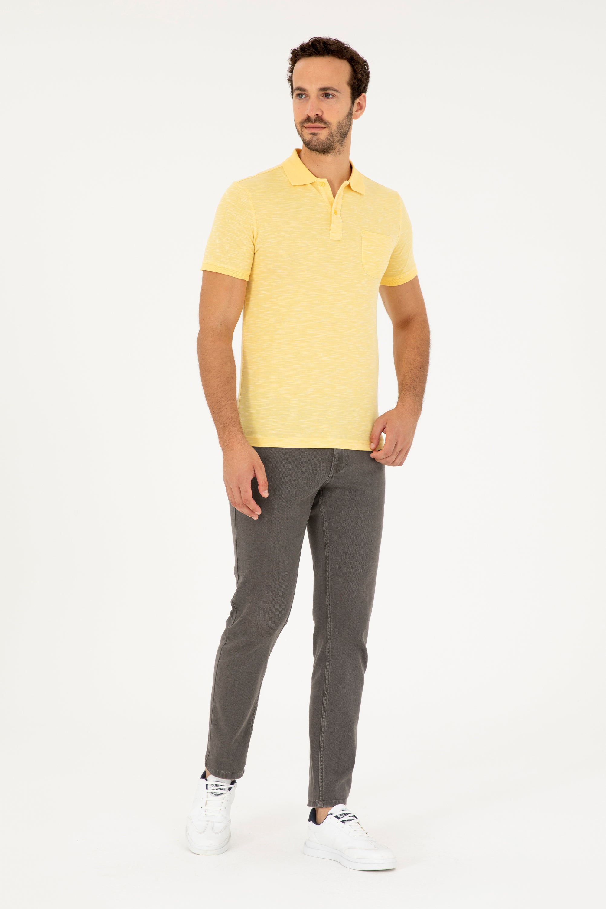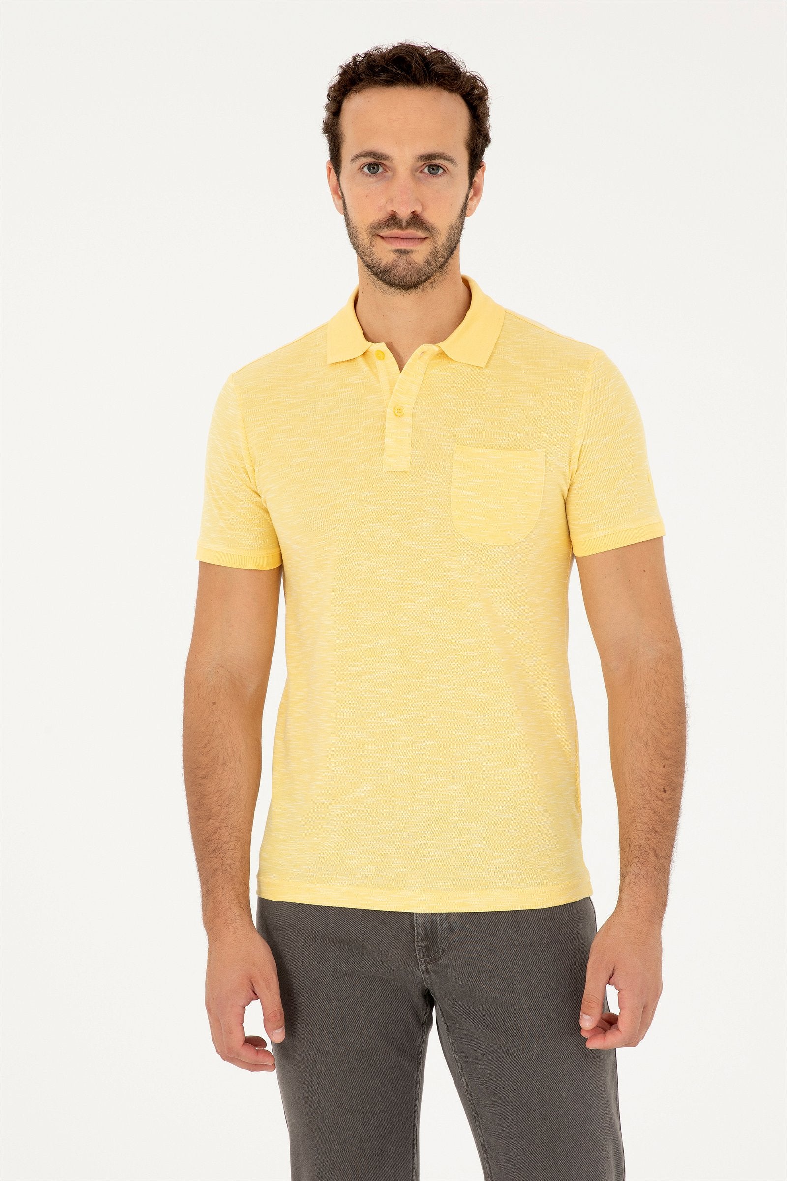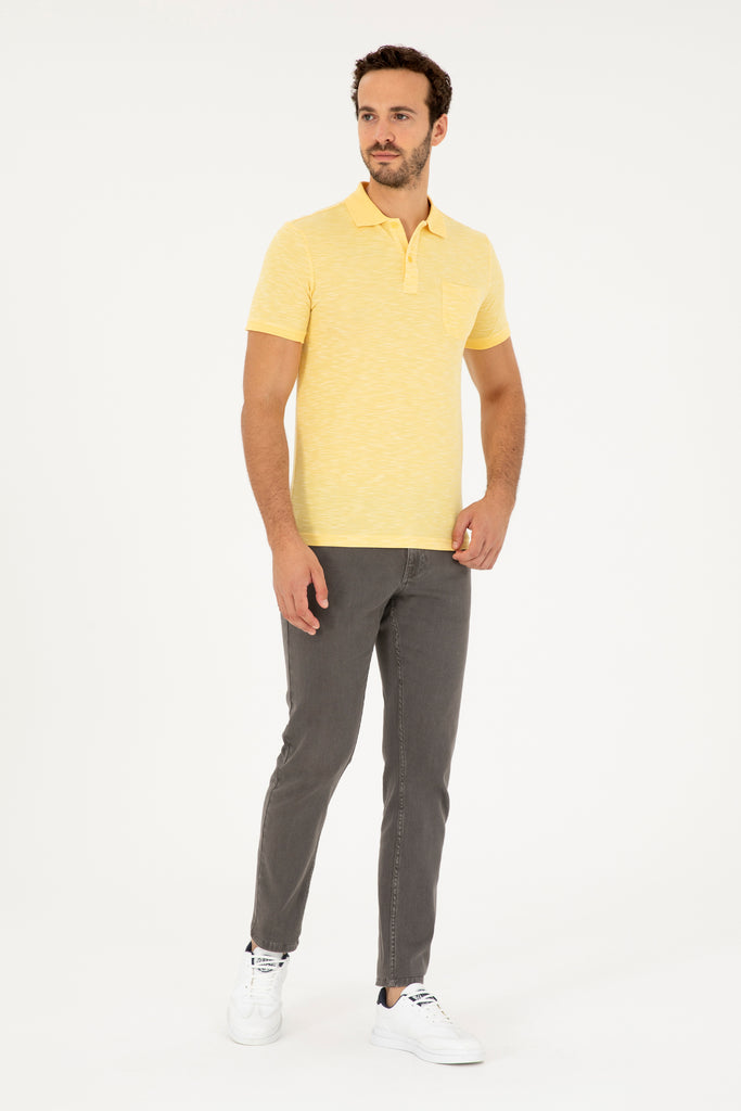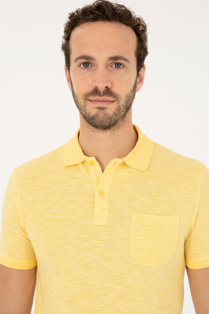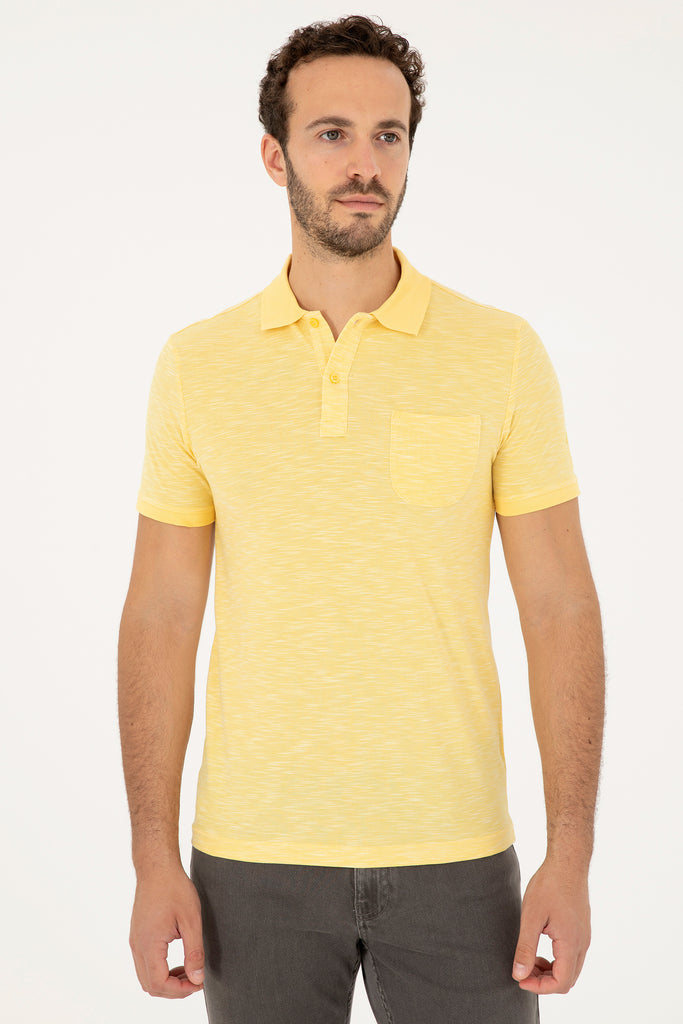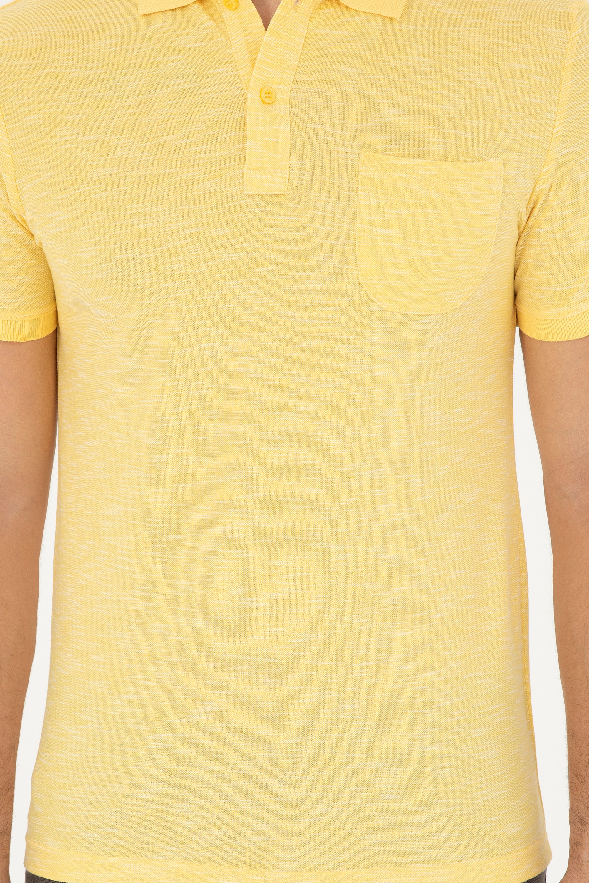 Elegantna polo majica u osvježavajućoj žutoj boji idealna je za toplije dane, donoseći udobnost i stil. Karakteriše je visokokvalitetni pamuk koji omogućava prijatno nošenje i prozračnost. Na prednjem dijelu majice nalazi se praktična džepna detalj, koja dodaje funkcionalnost i zanimljivost dizajnu. Ova polo majica savršeno se uklapa u ležerne dnevne kombinacije, bilo da se radi o izletu s prijateljima ili opuštenom vikend izlasku, a lako se može kombinovati s farmerkama, šortsem ili laganim hlačama.