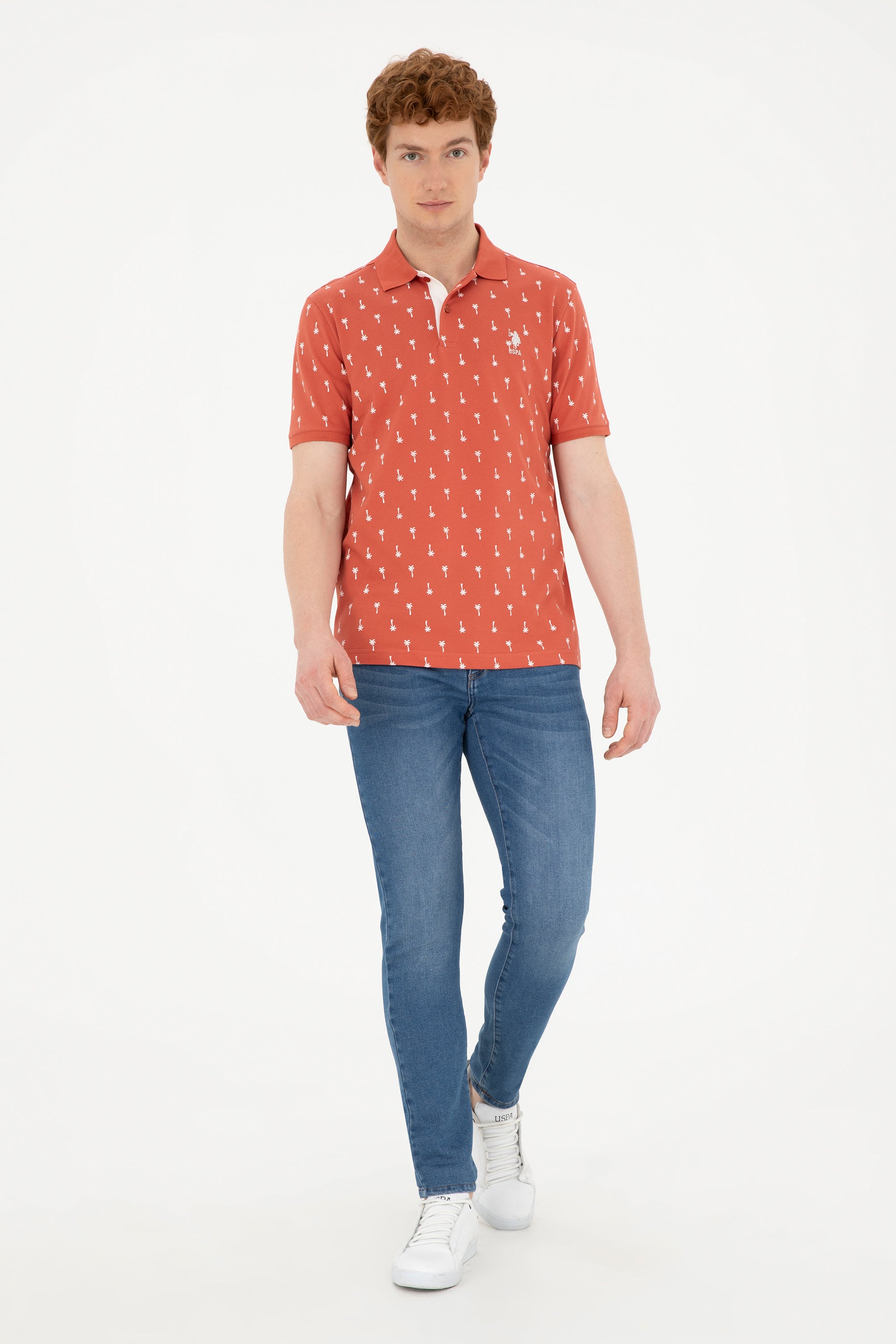 Šarmantna polo majica u atraktivnoj narandžastoj boji donosi veselu i modernu notu svakodnevnim kombinacijama. Karakteriše je lagana i prozračna pamučna tkanina koja obezbjeđuje udobnost tokom cijelog dana, dok klasičan ovratnik s dugmetom dodaje sofisticiran izgled. Na prednjem dijelu majice nalazi se diskretan uzorak koji privlači pažnju i daje poseban pečat. Ova polo majica je savršen izbor za ležerne izlaske ili opuštene casual prilike, a lako se kombinira s trapericama, kratkim hlačama ili chinos hlačama, čime stvara raznovrsne stilizacije za svaki dan.