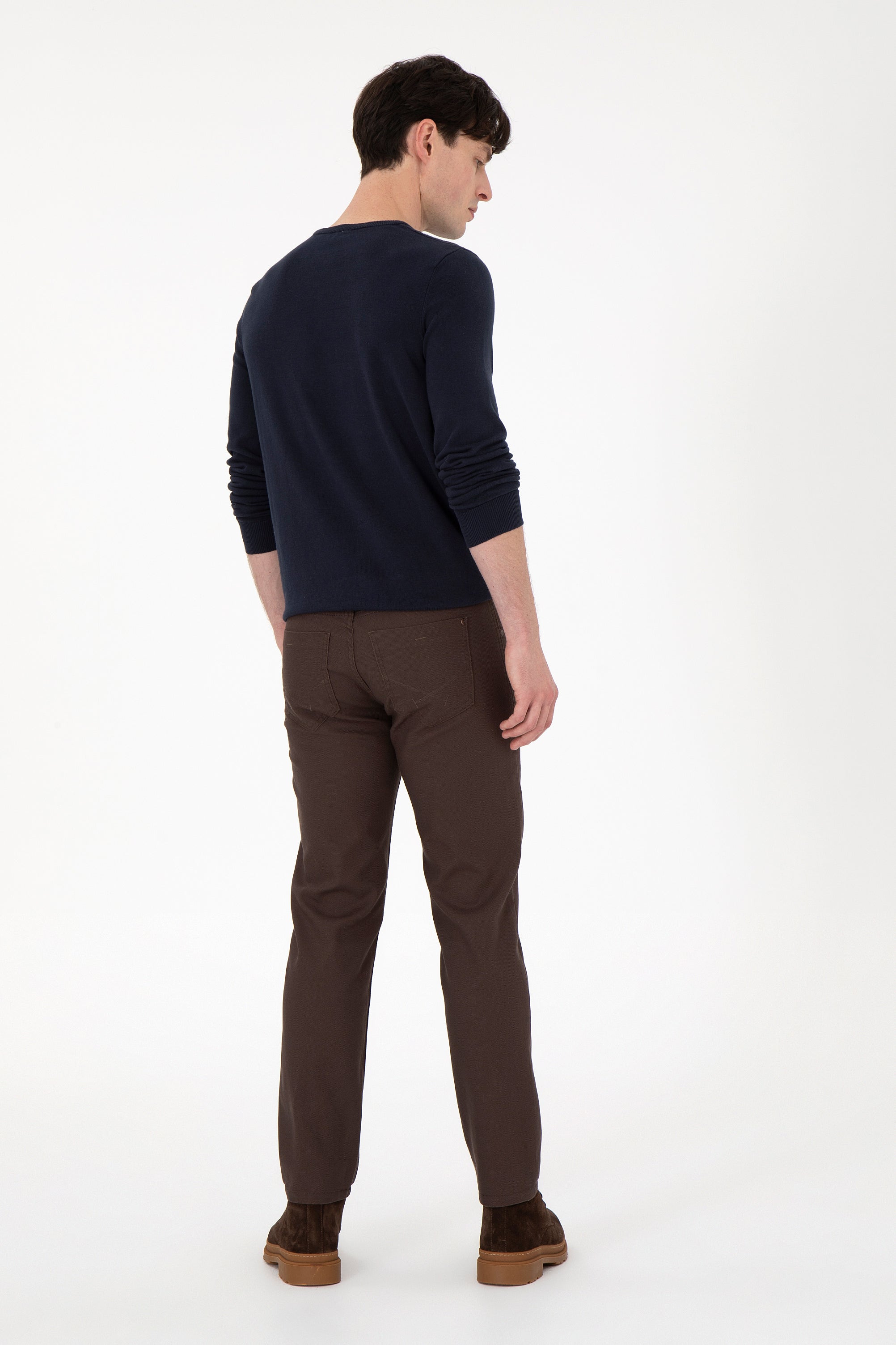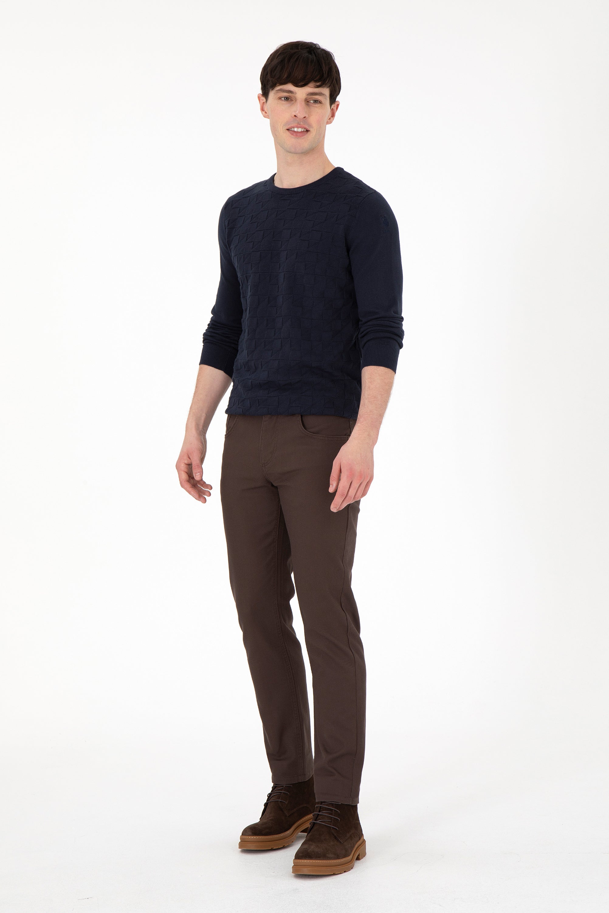 Moderne pantalone u tamnosmeđoj boji nude savršenu kombinaciju stila i udobnosti za svaki dan. Njihov kroj je prilagođen savremenim trendovima, omogućavajući lako kretanje i dobar pristajanje. Napravljene su od kvalitetnog materijala koji osigurava trajnost, a mekana tekstura čini ih prijatnim za nošenje tokom cijelog dana. Pantalone se lako mogu kombinovati sa različitim odjevnim predmetima, bilo da se radi o ležernim majicama, elegantnim sakoa ili sportskim jaknama, što ih čini idealnim izborom za različite prilike, od poslovnih sastanka do opuštenih vikenda.