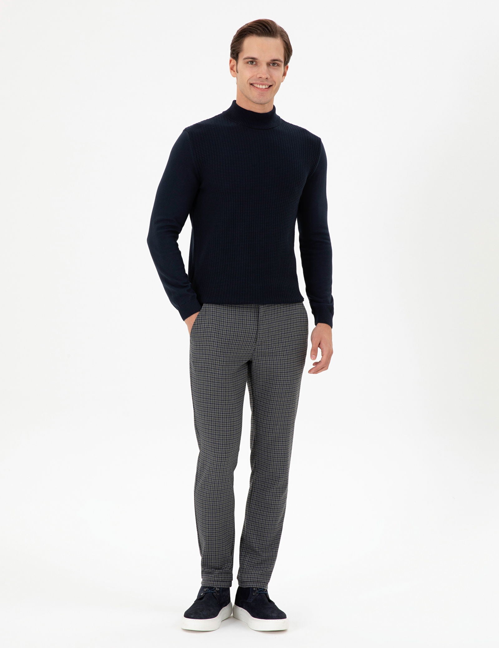 Savršene pantalone u klasičnoj kombinaciji crne i sive boje donose šik izgled za svaku priliku. Karakterišu ih udoban kroj i zahvalna tkanina koja omogućava potpunu slobodu kretanja. Ove pantalone imaju moderan karirani dezen koji dodaje dozu sofisticiranosti i modernog šarma. Idealne su za poslovne sastanke, večernje izlaske ili ležerne okupljanja s prijateljima, a mogu se lako kombinovati s košuljama, puloverima ili sakoima, pružajući bezbroj stilskih opcija za svaki ukus.