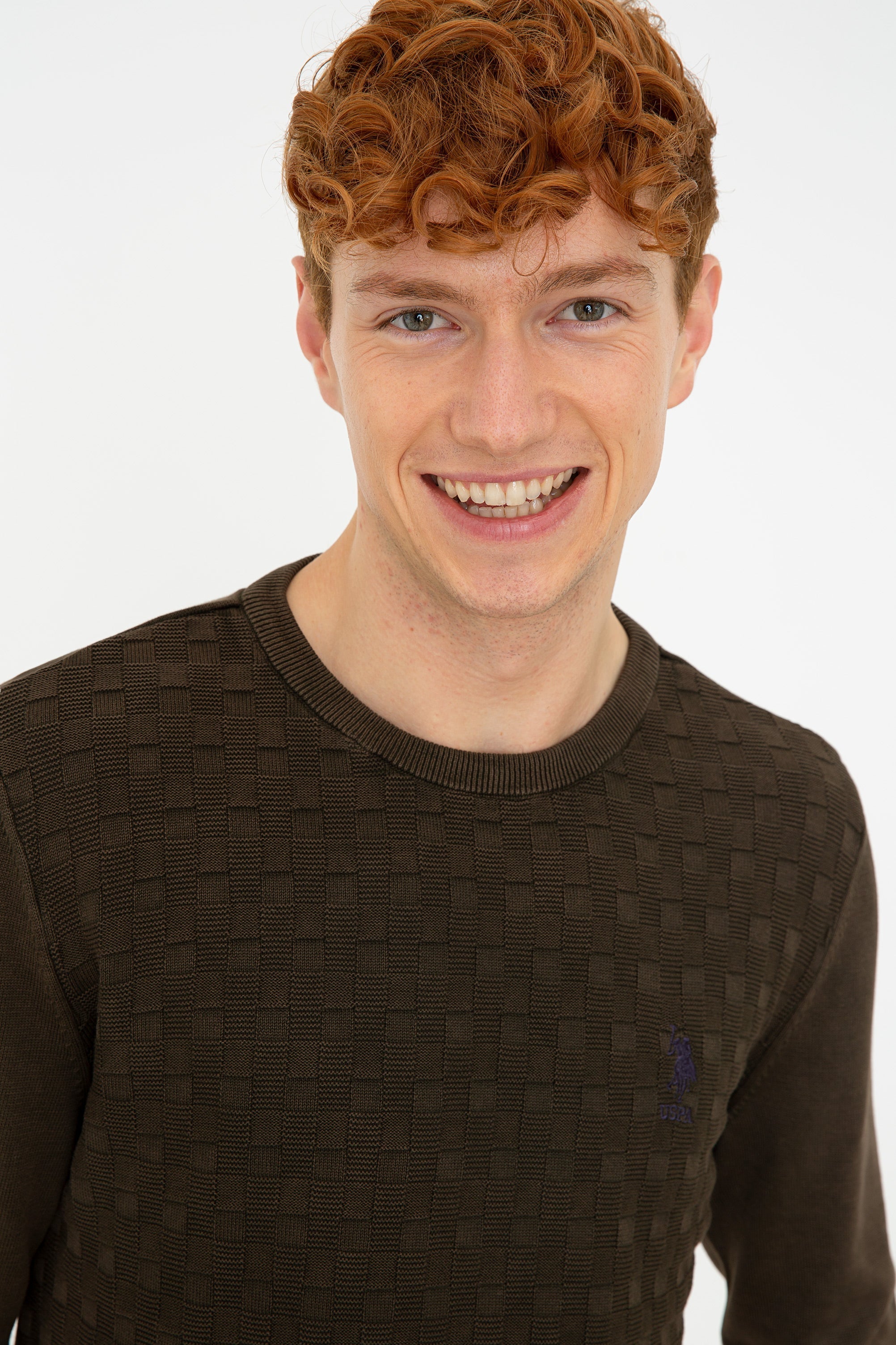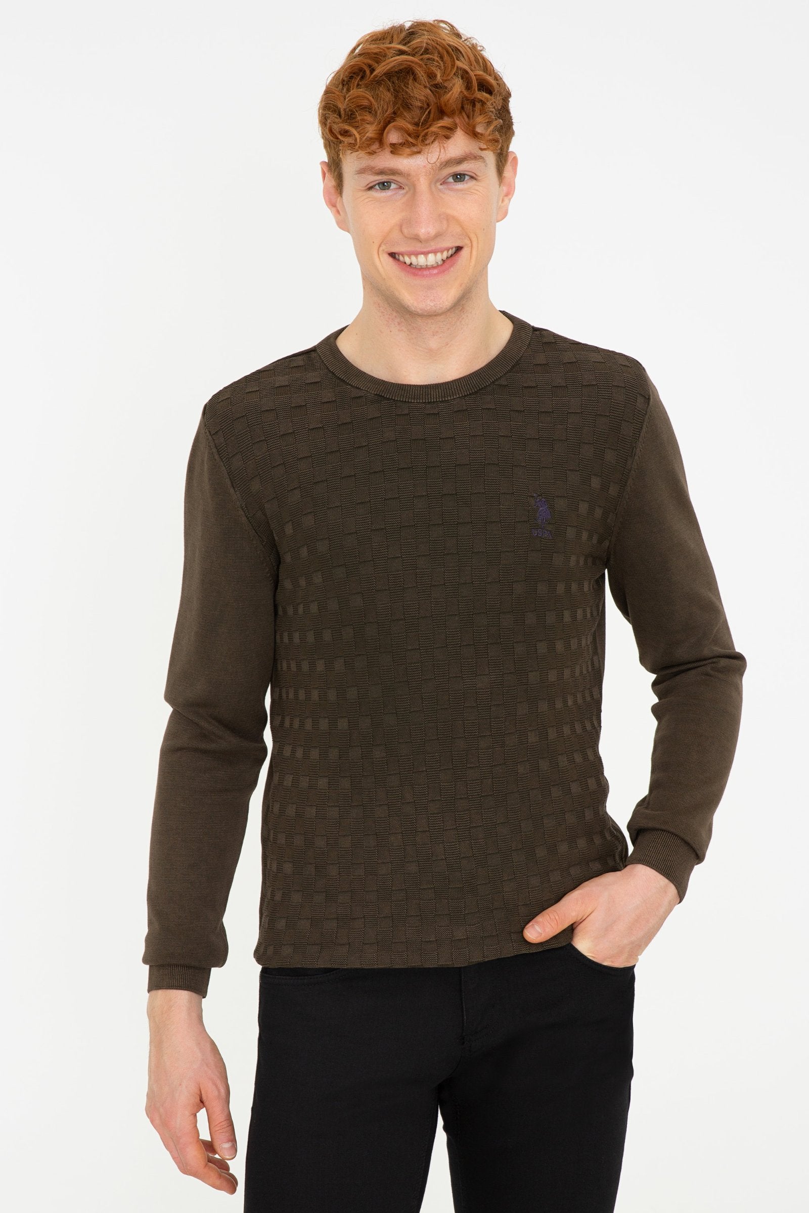 Šarmantan džemper u tamnoj maslinastoj boji pruža savršen spoj udobnosti i stila tokom hladnih dana. Njegov zanimljiv dezen sa teksturom u obliku kockica osigurava jedinstven izgled, dok meki materijal garantuje toplinu i pohodnost. Džemper ima klasični ovalni izrez i dug sleeveve koji dodatno doprinose njegovoj svestranosti. Ovaj komad odjeće je idealan izbor za svakodnevne kombinacije, bilo da ga nosite uz farmerke ili elegantne hlače, te se lako uklapa u različite stilove, od casual do poslovnog.