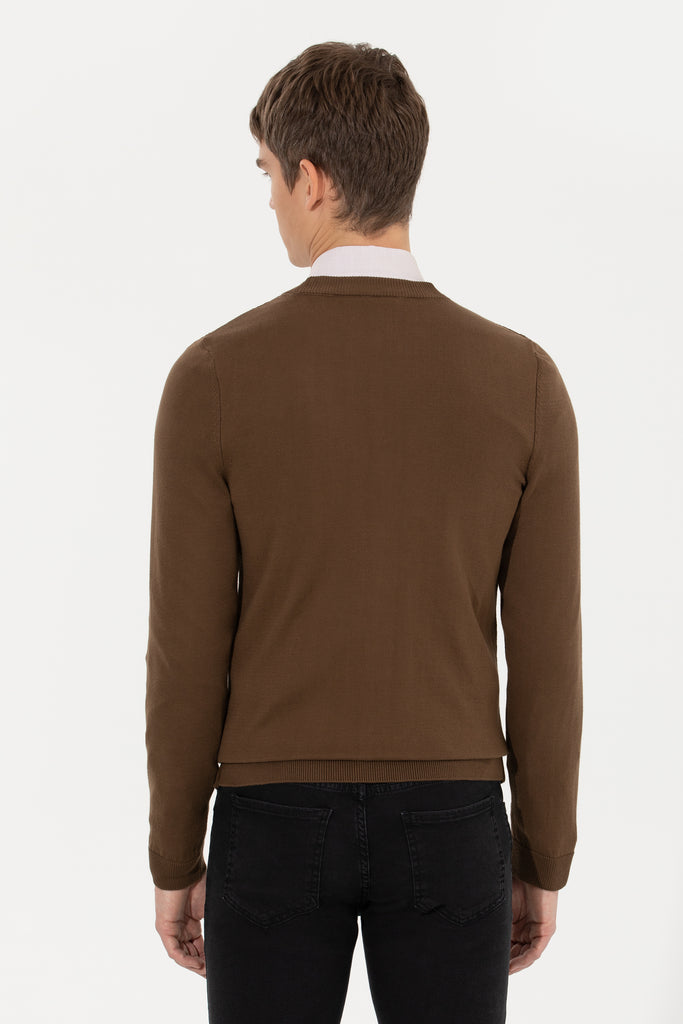 Elegantni pleteni džemper u bogatoj smešanoj boji donosi toplinu i udobnost tokom hladnih dana. Karakteriše ga meka rebrasta tekstura koja obezbjeđuje savršeno prianjanje i lako nošenje. Na prednjem dijelu džempera nalazi se diskretan detalj koji mu daje moderni izgled. Ovaj džemper je savršen izbor za svakodnevne kombinacije, bilo da se radi o opuštenim izlascima ili poslovnim prilikama, a lako ga je kombinovati sa različitim komadima odjeće poput košulja, traperica ili jakni.