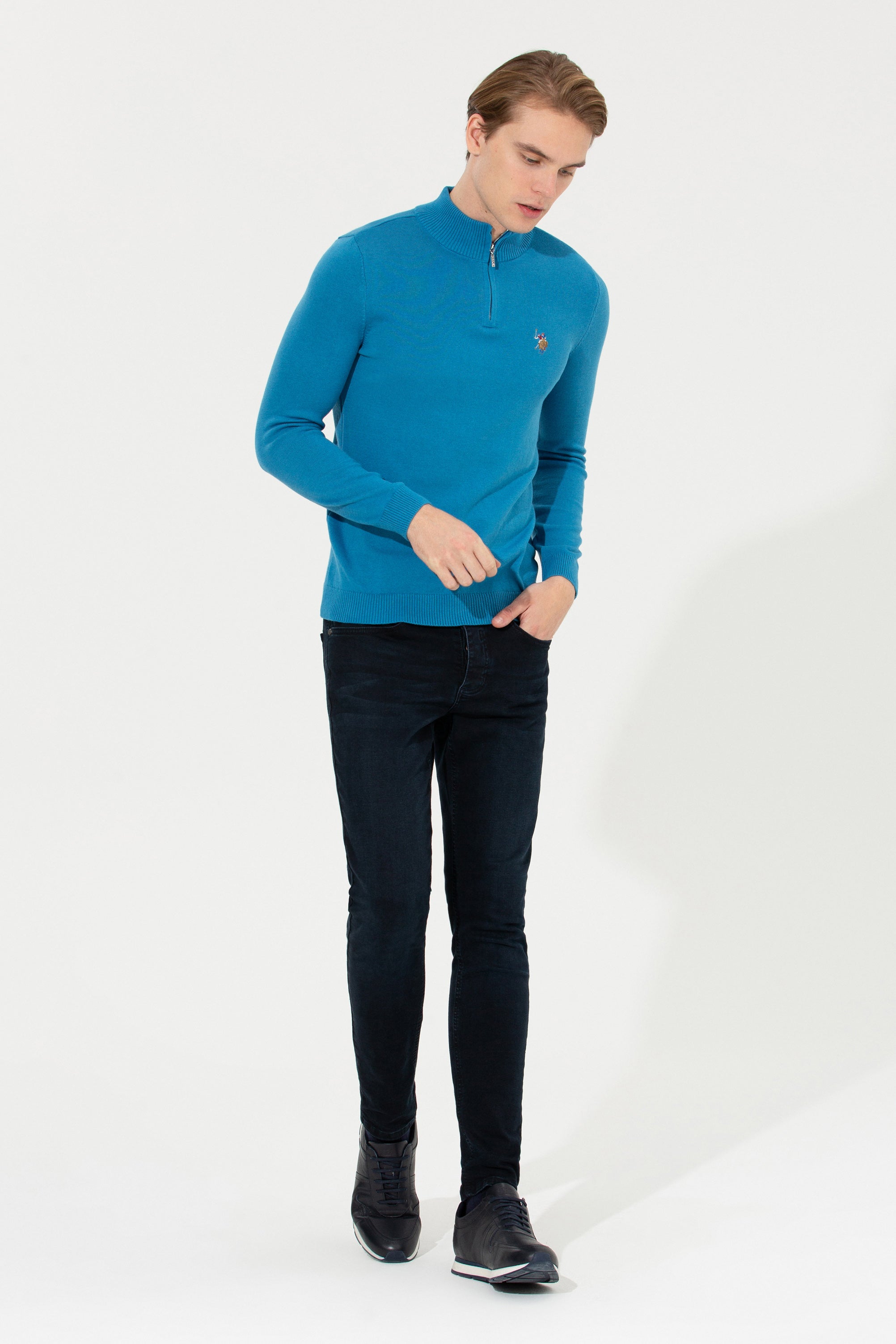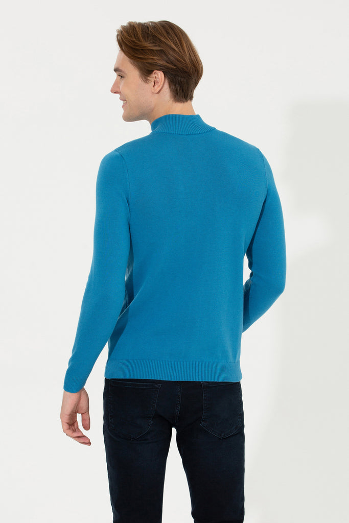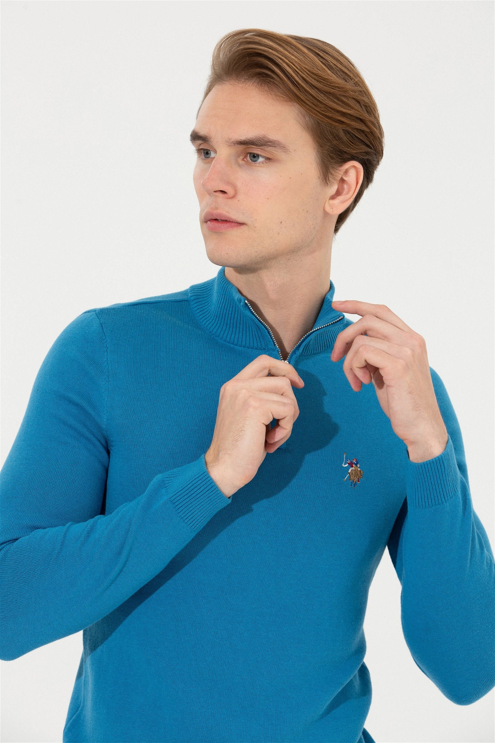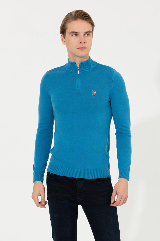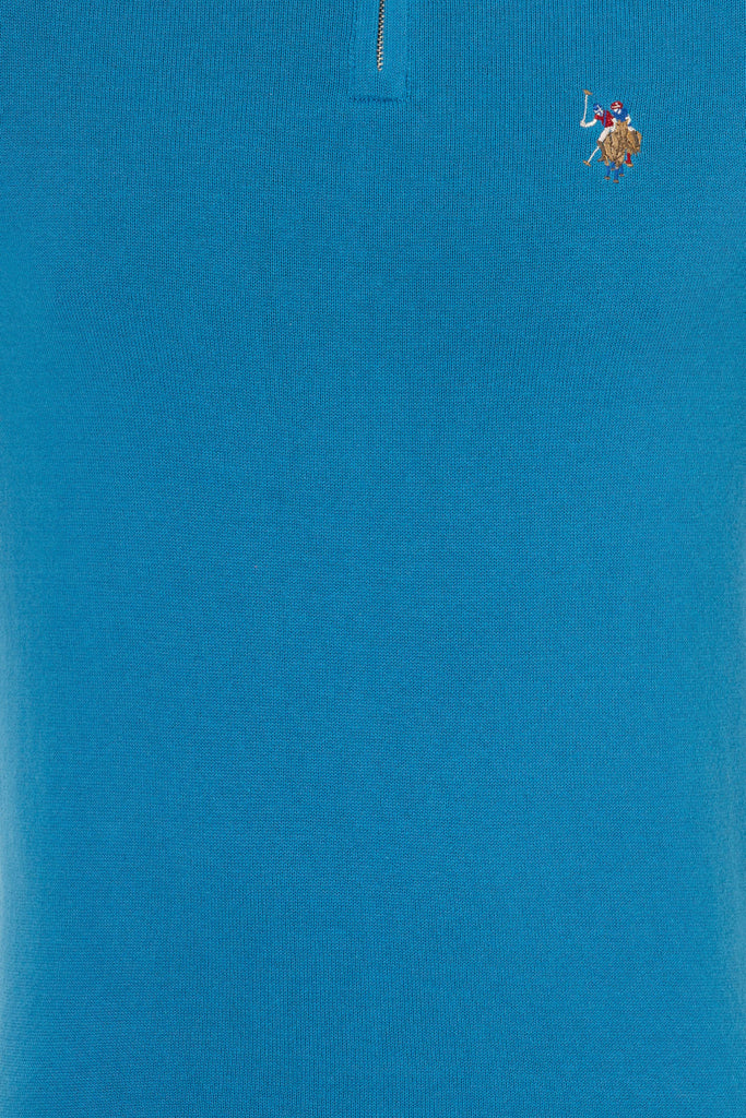 Ovaj elegantni džemper u živahnoj plavoj boji idealan je za svakodnevne prilike i večernje izlaske. Karakterizuje ga meka i udobna tkanina koja pruža toplinu, a ujedno je i prozračan, što ga čini savršenim za različite temperature. Džemper ima moderan ovratnik sa zatvaračem koji dodatno naglašava njegovu sofisticiranost. Diskretni logo na prednjem dijelu dodaje malo prepoznatljivosti i stila. Ovaj džemper se lako kombinira s omiljenim farmerkama ili chinos hlačama, čineći ga svestranim komadom za svaku modnu kombinaciju.