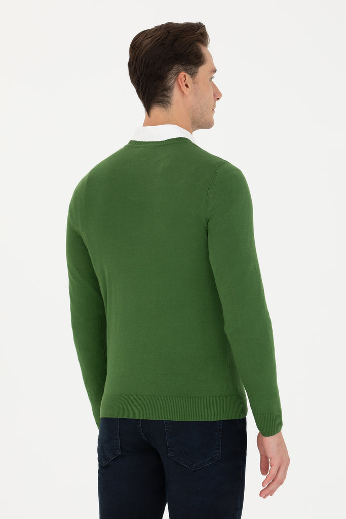Ovaj šarmantni džemper u vibrantnoj zelenoj boji pruža savršen spoj udobnosti i stila. Karakteriše ga meka, rebrasta tekstura koja osigurava prijatno nošenje i savršeno pristajanje. Na prednjem dijelu džempera nalazi se suptilan logotip koji dodaje dašak sofisticiranosti. Ovaj džemper je idealan izbor za proljetne i jesenje kombinacije, bilo da se radi o ležernim izlascima ili opuštenim šetnjama, a lako se može kombinovati sa košuljama, jaknama ili drugim odjevnim predmetima za različite prilike.