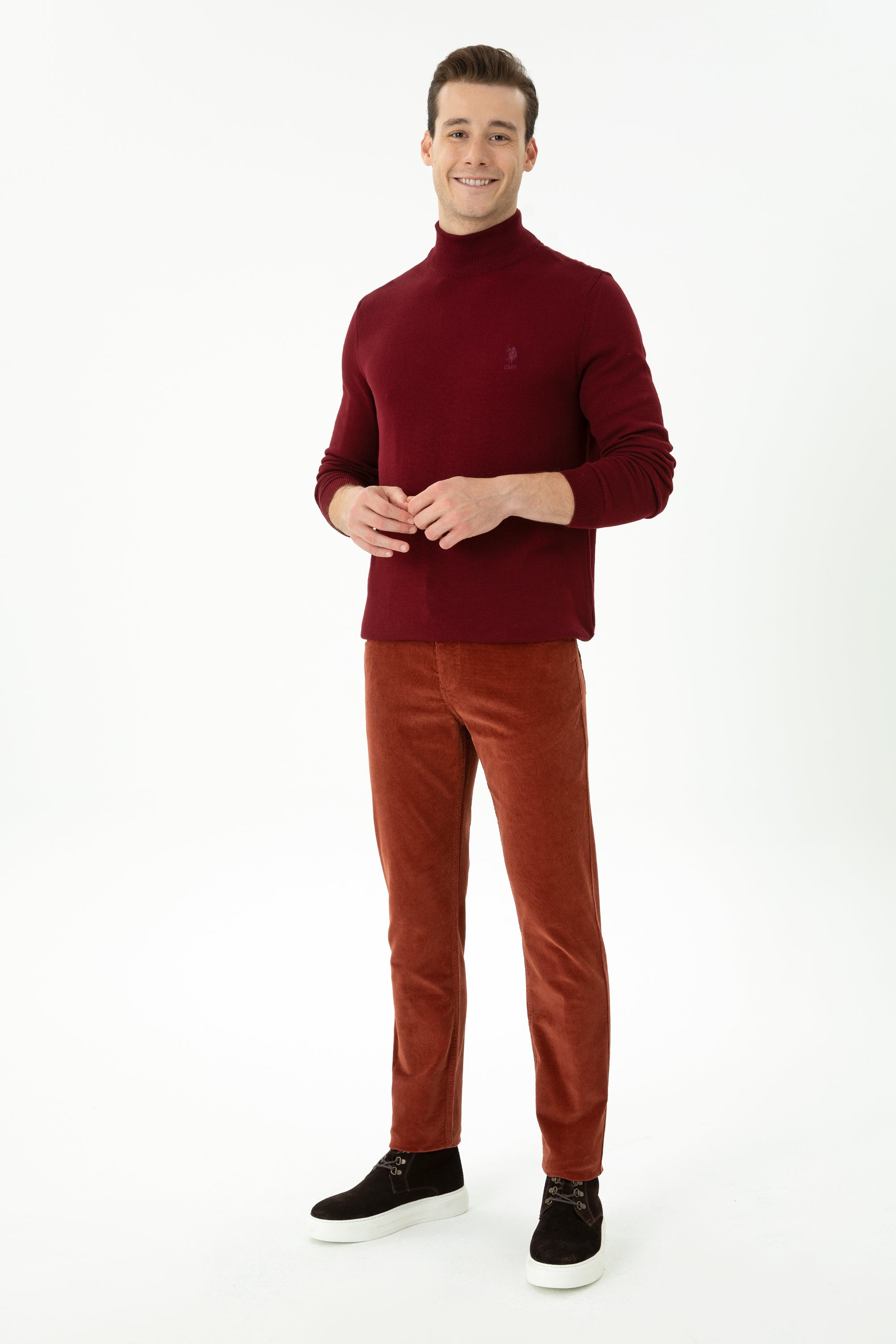 Elegantan pleteni džemper u bogatoj vinskoj boji donosi toplinu i udobnost tokom hladnih mjeseci. Njegova fina tekstura osigurava prijatan osjećaj na koži i lako se uklapa u svaki stil. Džemper je dizajniran sa visokim ovratnikom koji dodatno štiti od hladnoće, dok diskretan logo na prednjem dijelu dodaje poseban pečat. Ovaj komad odjeće savršen je za svakodnevne kombinacije, bilo da ga nosite uz traperice za ležeran izlazak ili uz klasične hlače za svečanije prilike. Savršen je dodatak svakom zimskom garderoberu.