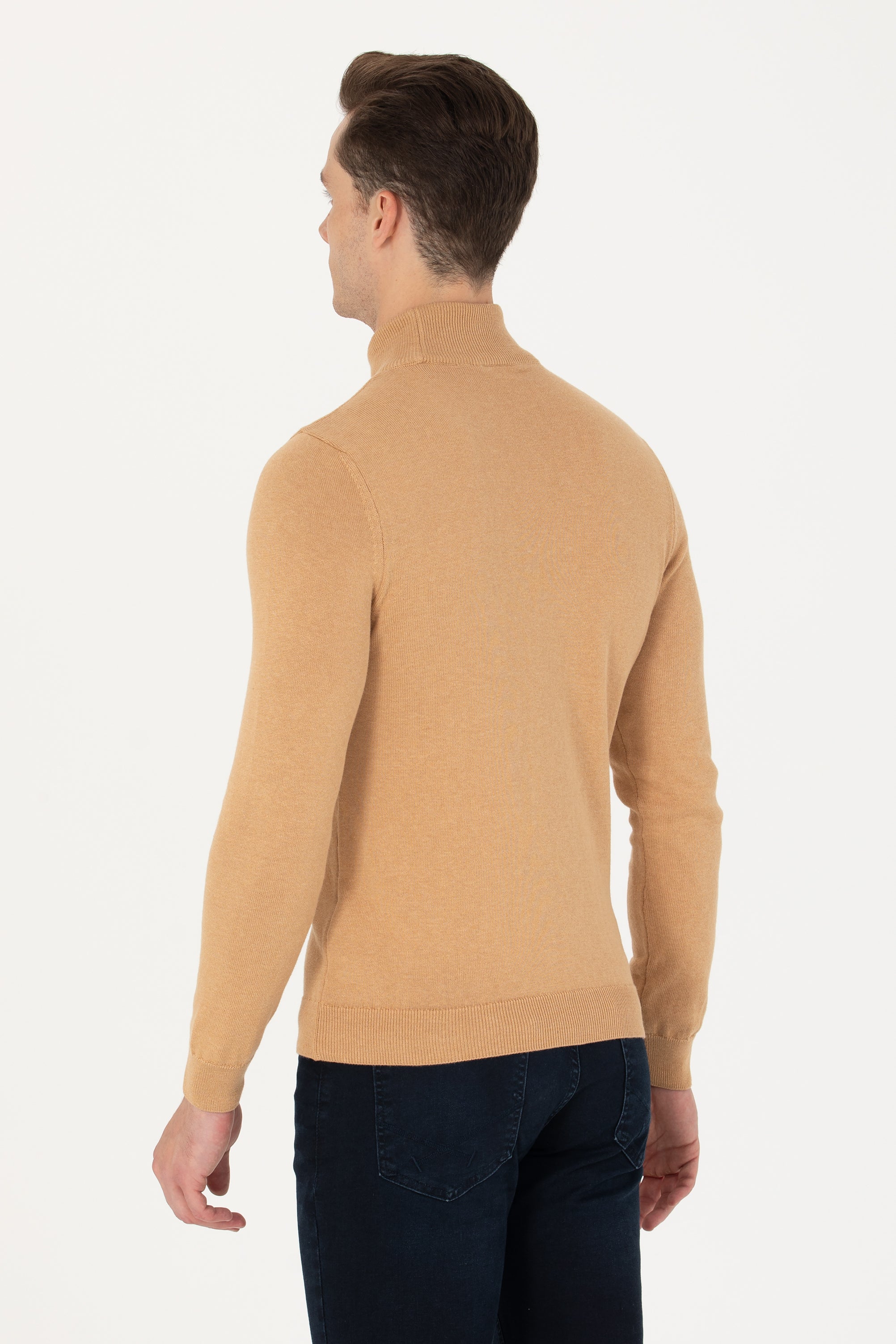 Ovaj elegantni džemper u toploj boji breskve pruža savršenu kombinaciju udobnosti i stila tokom hladnih dana. Karakteriše ga glatka tkanina koja osigurava prijatan osjećaj na koži. Džemper ima visoki ovratnik koji ne samo da dodaje sofisticiran izgled već i dodatnu toplinu. Na prednjem dijelu nalazi se diskretna monogram oznaka koja doprinosi njegovom šarmu. Ovaj komad odjeće je idealan za svakodnevne prilike, bilo da se radi o poslovnom okruženju ili opuštenom vikendu, te se odlično uklapa s klasičnim trapericama ili elegantnim hlačama.