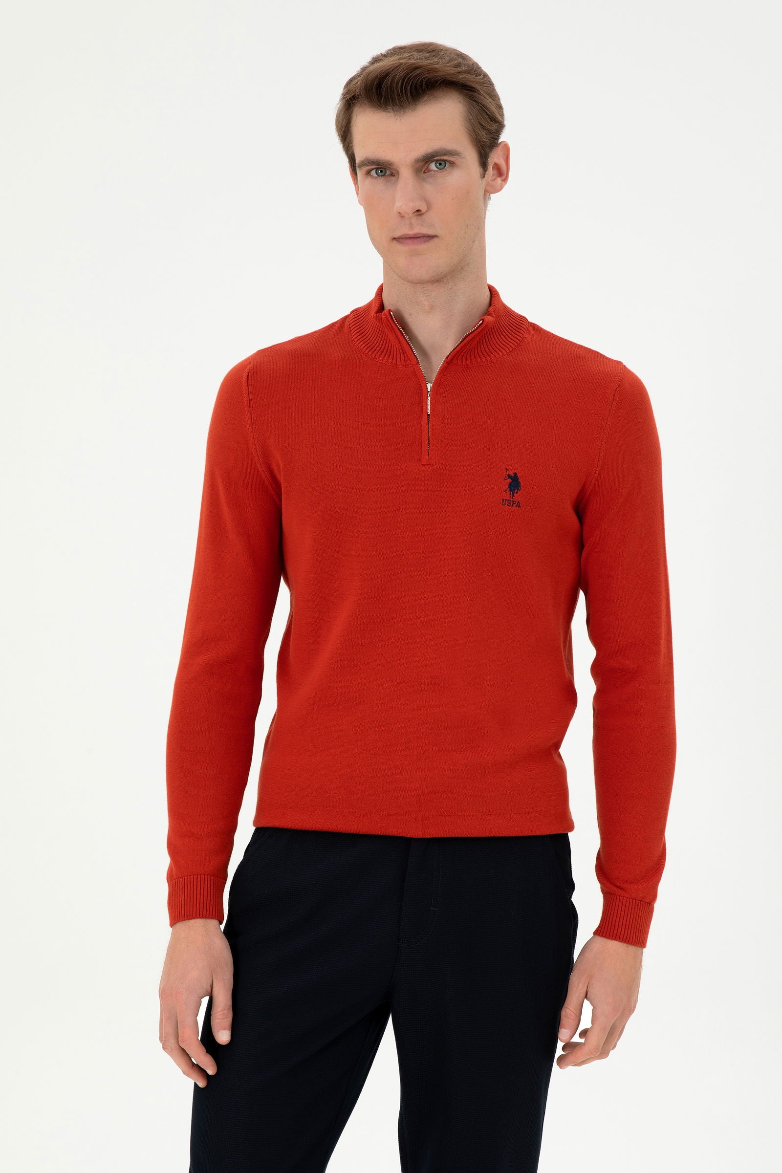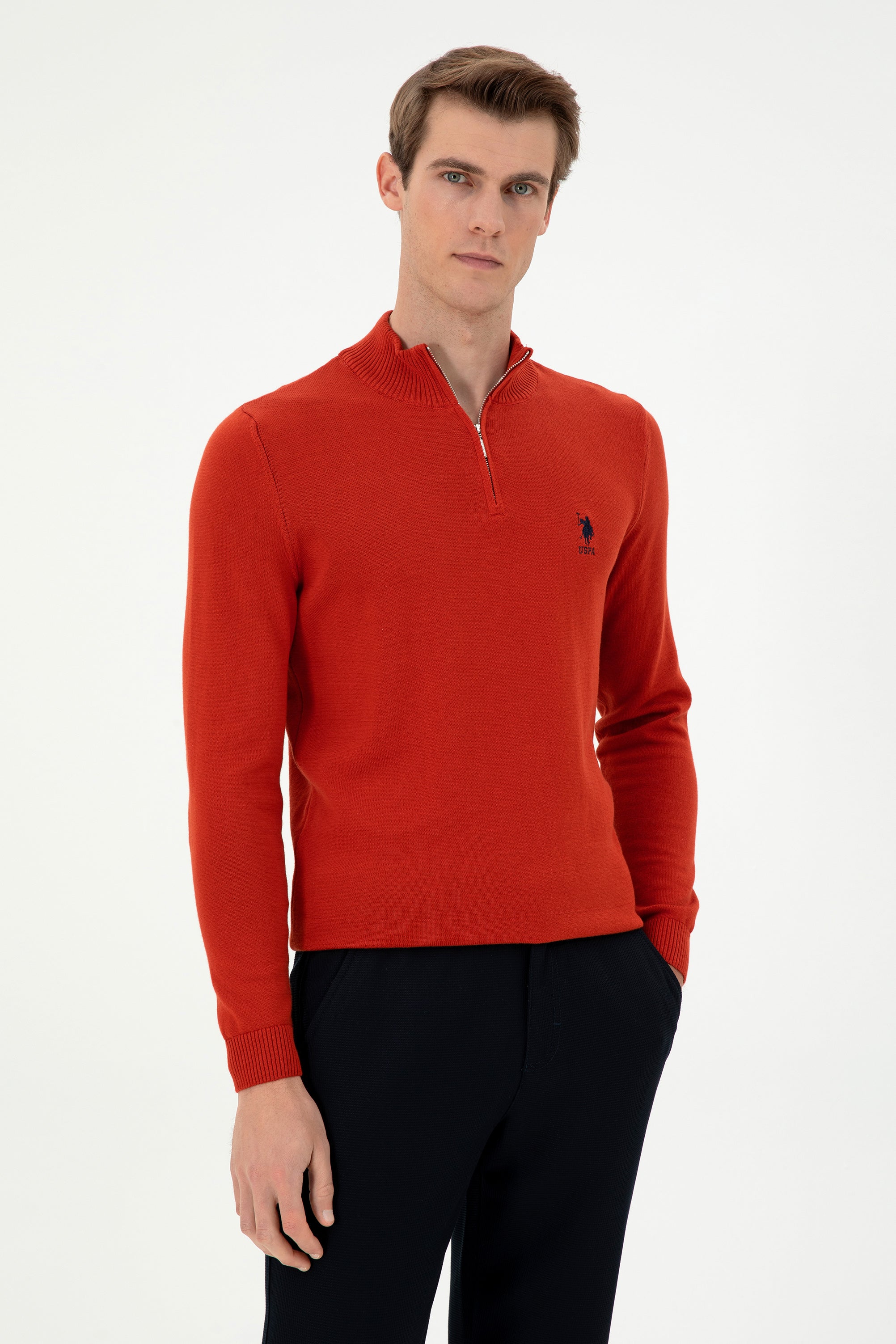 Elegantni džemper u vibrantnoj crvenoj boji unosi dašak živosti u svaku zimsku kombinaciju. Napravljen je od kvalitetnog materijala koji pruža izvanrednu toplinu i udobnost tokom hladnih dana. Džemper se odlikuje modernim krojem sa praktičnim zatvaračem, što ga čini savršenim izborom za ležerne, ali i sofisticirane prilike. Na prednjem dijelu se nalazi diskretni logo, koji dodaje akcent stila. Ovaj džemper se lako kombinuje sa raznim odjevnim predmetima, od klasičnih hlača do traperica, stvarajući savršenu sinergiju između udobnosti i elegancije.