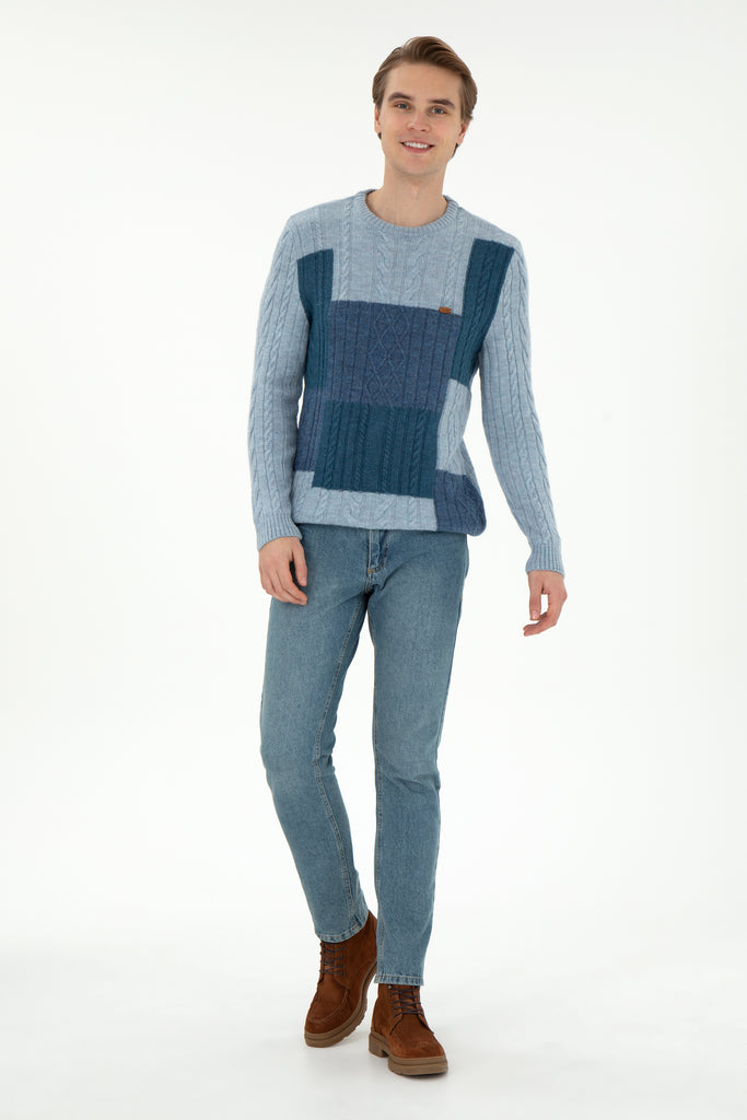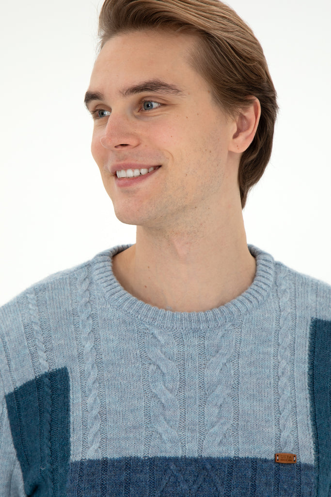 Ovaj šarmantni džemper u kombinaciji pastelnih plavih tonova donosi udobnost i stil tokom hladnih dana. Karakteriziraju ga nježni pleteni uzorci koji osiguravaju prijatno nošenje i savršeno pristajanje. Na prednjem dijelu džempera nalazi se diskretan detalj koji dodaje prefinjenost i jedinstvenost. Ovaj džemper je savršen izbor za svakodnevne kombinacije, bilo da se radi o opuštenim izlascima ili formalnijim prilikama, a lako se može uklopiti uz različite odjevne predmete poput traperica, jakni ili čak košulja.